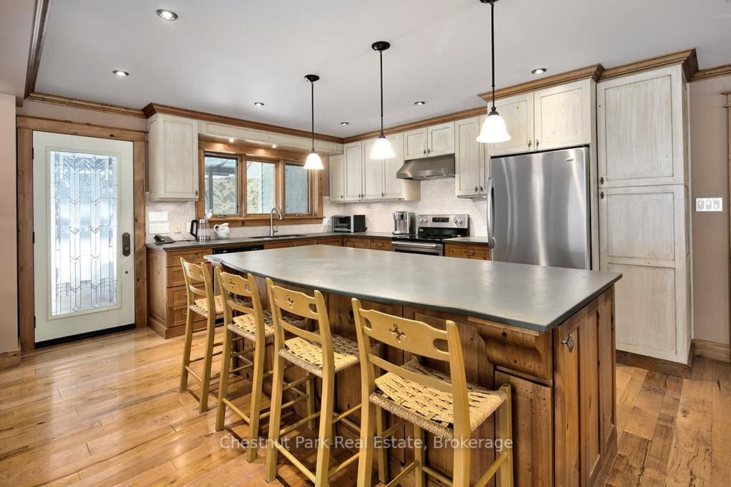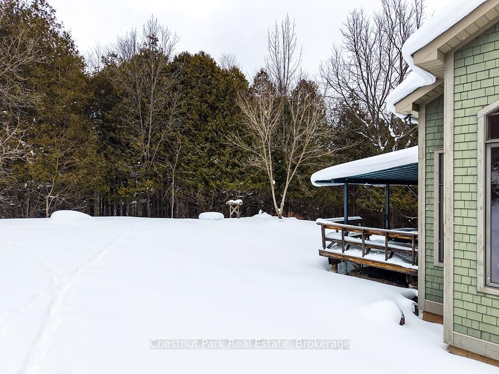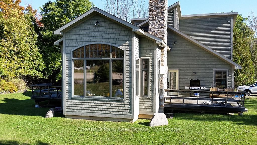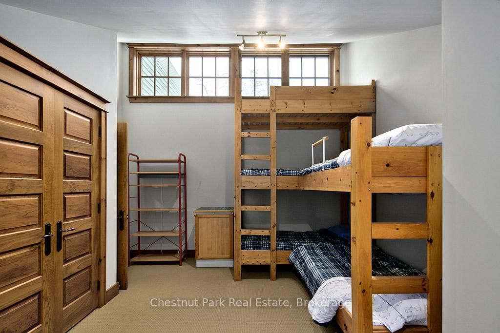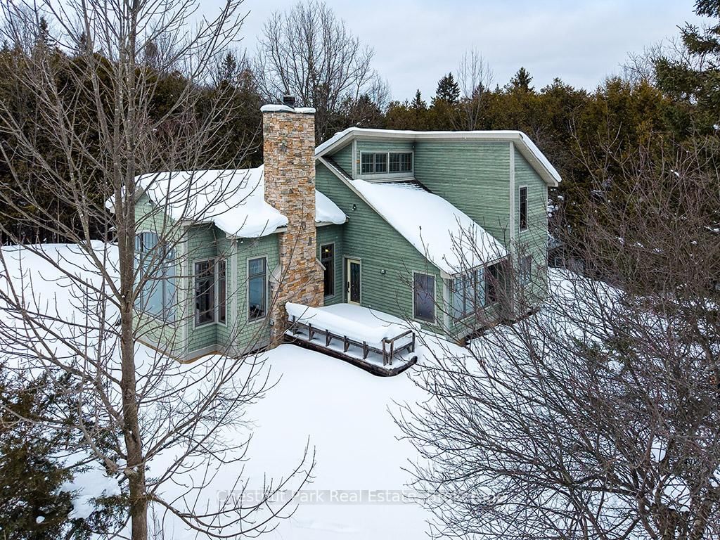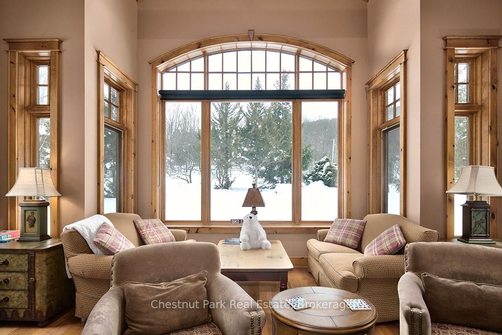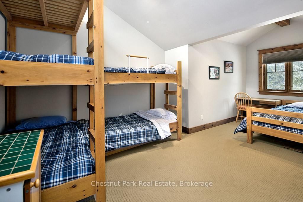 Rare opportunity to own a true ski-in, ski-out chalet at the prestigious Beaver Valley Ski Club, ideally located in Beaver South. The 2-Storey on 170 Mary B's Lane has 4 bedrooms, 3 bathrooms, and is located on a 104.84 x 509.4 ft loton .50-1.99 acres in the community of Grey Highlands . Privately set at the end of a quiet dead-end road, this custom-built chalet offers the perfect blend of luxury, warmth, and functionality. A spacious stone-floored foyer welcomes you into the stunning open-concept great room, featuring soaring vaulted tongue-and-groove pine ceilings, dramatic timber beams with metal hardware, oversized windows, and views of skiers on Southern Comfort. The floor-to-ceiling wood-burning fireplace with hand-laid stone serves as a striking centerpiece. The custom kitchen is designed for entertaining, with modern appliances, double sinks, and a large island that naturally becomes a gathering place for family and friends. A light-filled formal dining room with vaulted ceilings and solid wood floors opens to a sunny south-facing deck and a separate covered porch with hot tub provides the perfect après-ski retreat. The main floor includes a bedroom with access to a three-piece bath, ideal for guests or senior family members. Life is easy with a generous boot room with dedicated ski entry. Upstairs, the primary suite features vaulted ceilings, custom furnishings, and beautiful hardwood trim. Additional bedrooms include a spectacular bunk room with custom triple-stacked bunks, plus a spacious guest bedroom and shared three-piece bath. The lower level offers a large games and family room with a custom pool table convertible to ping pong, an additional flex room, and a third bathroom. Solidly built and thoughtfully detailed throughout, it comfortably sleeps 12 and comes furnished. A rare offering in one of Grey Highlands' most exclusive private ski communities.