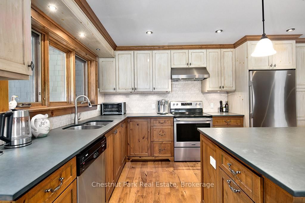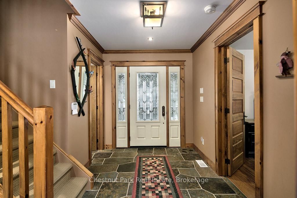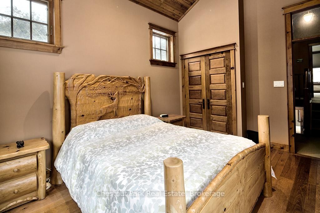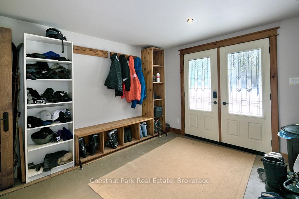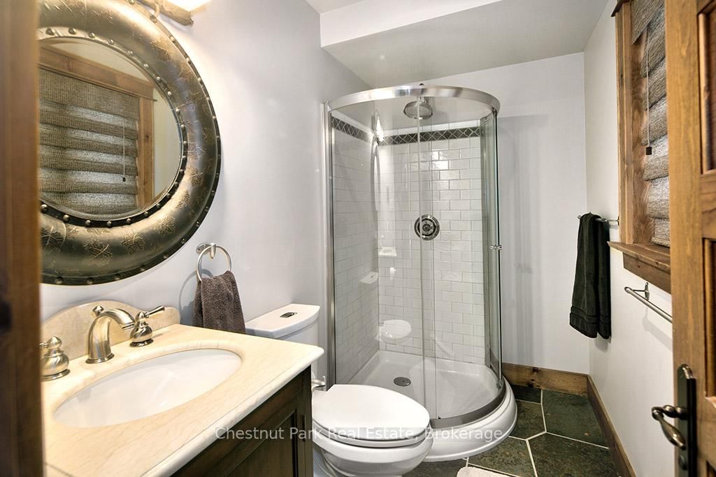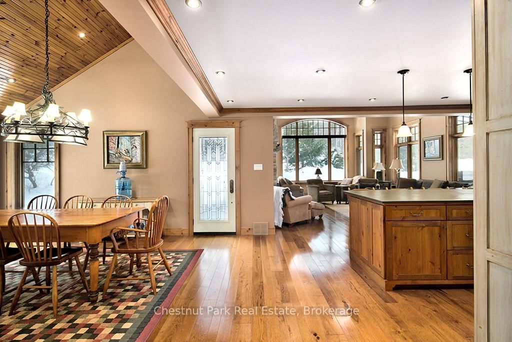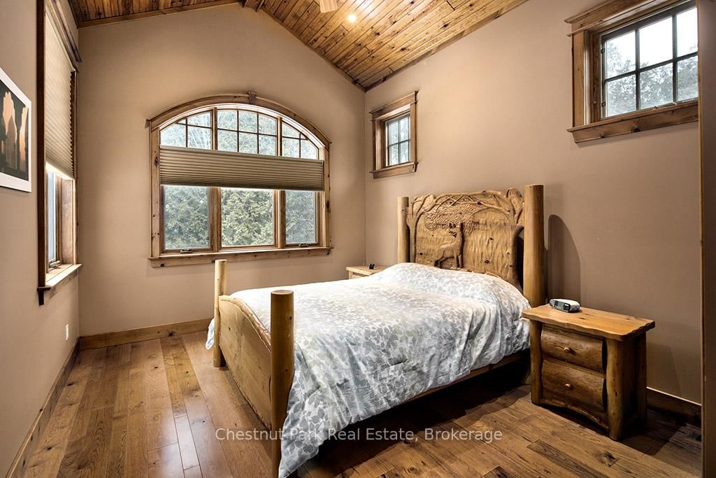 Rare opportunity to own a true ski-in, ski-out chalet at the prestigious Beaver Valley Ski Club, ideally located in Beaver South. The 2-Storey on 170 Mary B's Lane has 4 bedrooms, 3 bathrooms, and is located on a 104.84 x 509.4 ft loton .50-1.99 acres in the community of Grey Highlands . Privately set at the end of a quiet dead-end road, this custom-built chalet offers the perfect blend of luxury, warmth, and functionality. A spacious stone-floored foyer welcomes you into the stunning open-concept great room, featuring soaring vaulted tongue-and-groove pine ceilings, dramatic timber beams with metal hardware, oversized windows, and views of skiers on Southern Comfort. The floor-to-ceiling wood-burning fireplace with hand-laid stone serves as a striking centerpiece. The custom kitchen is designed for entertaining, with modern appliances, double sinks, and a large island that naturally becomes a gathering place for family and friends. A light-filled formal dining room with vaulted ceilings and solid wood floors opens to a sunny south-facing deck and a separate covered porch with hot tub provides the perfect après-ski retreat. The main floor includes a bedroom with access to a three-piece bath, ideal for guests or senior family members. Life is easy with a generous boot room with dedicated ski entry. Upstairs, the primary suite features vaulted ceilings, custom furnishings, and beautiful hardwood trim. Additional bedrooms include a spectacular bunk room with custom triple-stacked bunks, plus a spacious guest bedroom and shared three-piece bath. The lower level offers a large games and family room with a custom pool table convertible to ping pong, an additional flex room, and a third bathroom. Solidly built and thoughtfully detailed throughout, it comfortably sleeps 12 and comes furnished. A rare offering in one of Grey Highlands' most exclusive private ski communities.