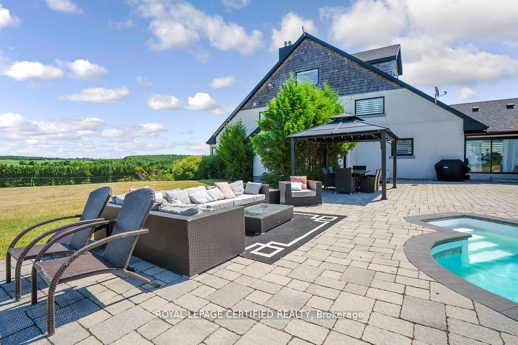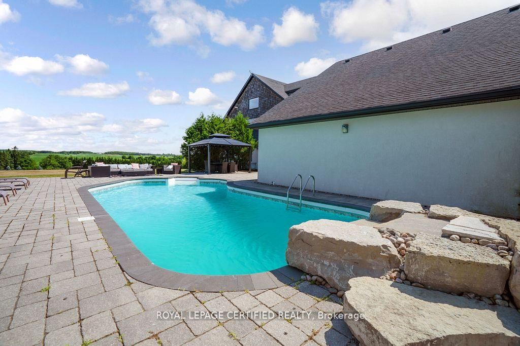 Poised atop a majestic 1. The 2-Storey on 9170 Sideroad 27 null has 4 bedrooms, 4 bathrooms, and is located on a 326.48 x 233.77 ft lot in the community of Rural Erin .75-acre hilltop estate, this custom-built 2 1/4 storey masterpiece redefines luxury living with sweeping panoramicviews and uncompromising design! This 4-bedroom, 4-bathroom masterpiece is a perfect blend of modern elegance and country charm. Thegourmet kitchen is a culinary showpiece, appointed with two statement islands, premium Sub-Zero and Wolf appliances, and bespoke cabinetrytailored for both daily living and entertaining. Adjacent, sunken family room accented by coffered ceilings and a separate formal dining roomwith vaulted ceiling sets the stage for memorable gatherings. Retreat to the luxurious primary suite with its own vaulted ceiling, dual-sidedfireplace, and spa-like 5-piece ensuite. The fully finished walkout basement expands the living space and opens to a private outdoor retreat.Outside, resort-style living awaits an inground saltwater pool with a tranquil waterfall is set among professionally landscaped grounds, offeringultimate serenity and seclusion. An oversized 4-car garage adds practicality to this one-of-a-kind property. This is more than a home its a private,architectural statement for the most discerning buyer.