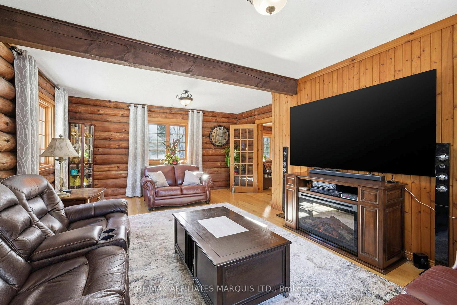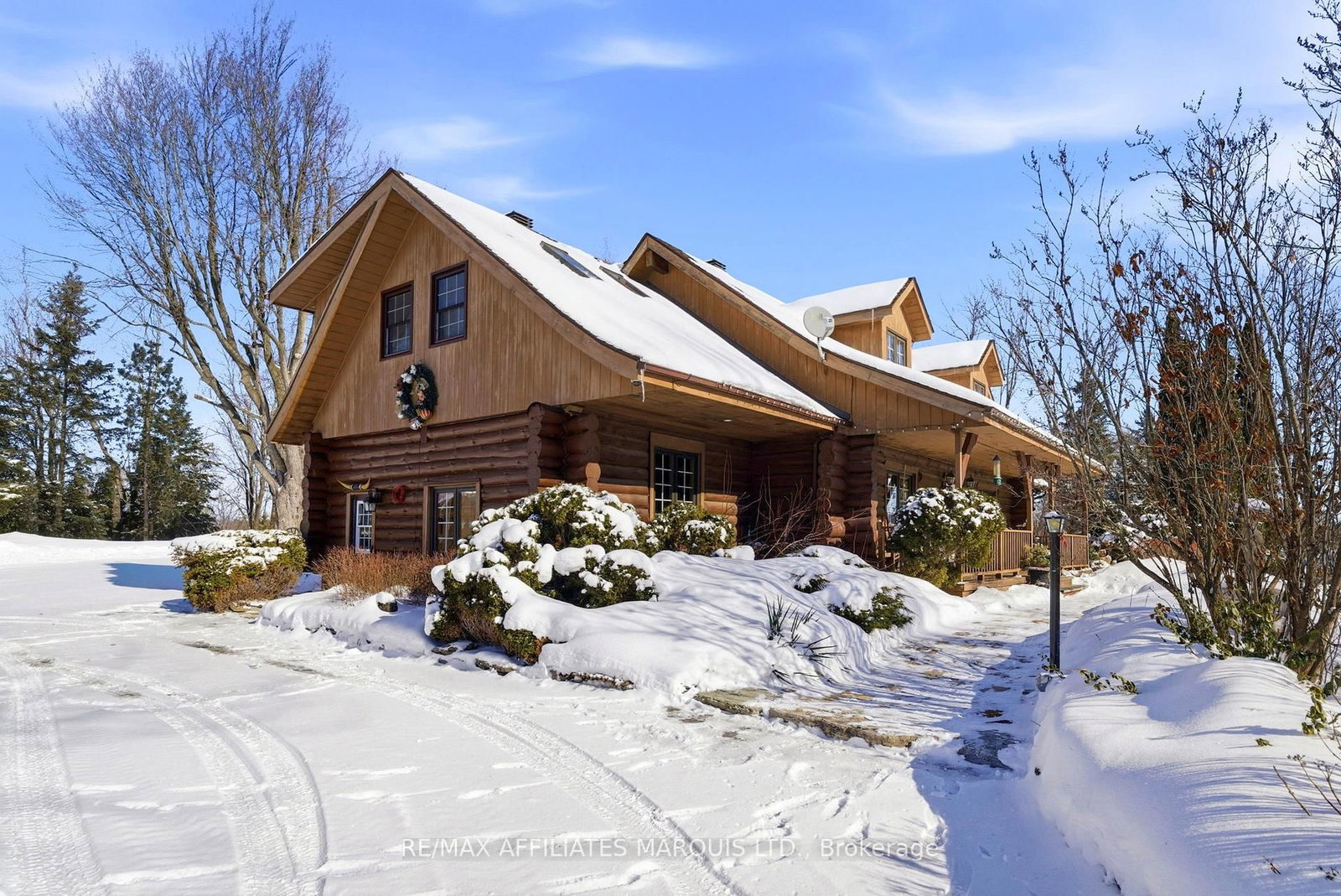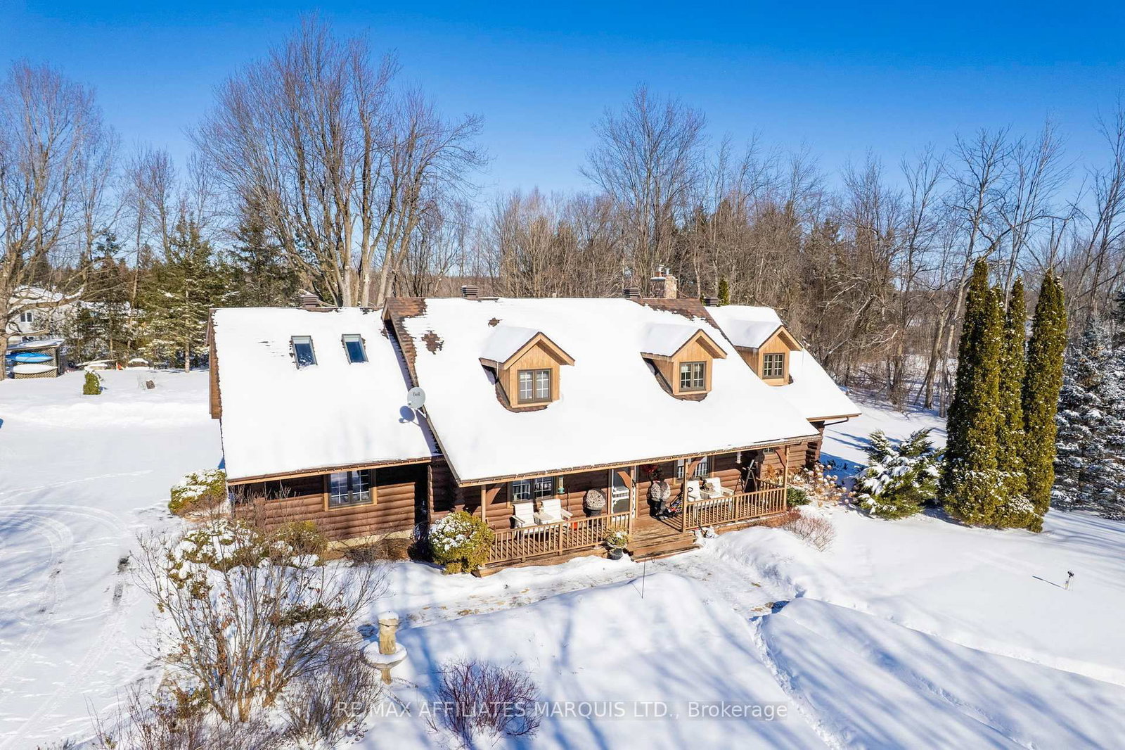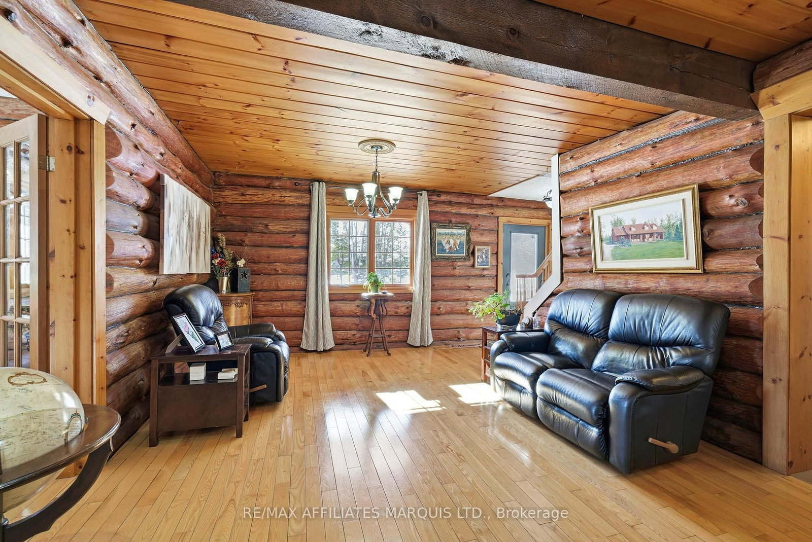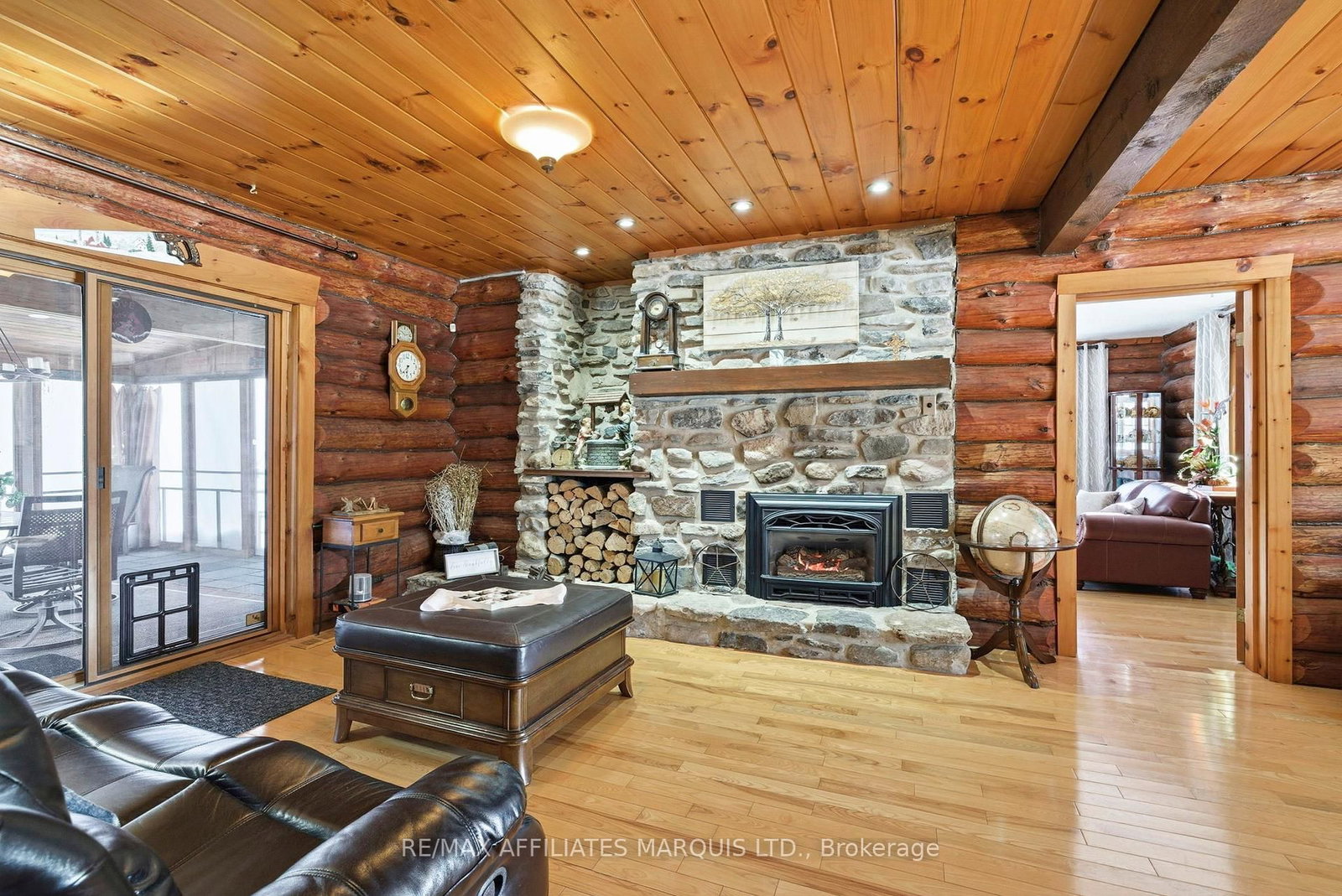 Welcome to this stunning 3,000 sq. The 2-Storey on 16985 Headline Road has 4 bedrooms, 3 bathrooms, and is located on a 436 x 229 ft lot in the community of South Stormont (Cornwall) Twp . ft. log home set on over 2 beautifully maintained acres just outside the city limits. Offering the perfect blend of peaceful rural living and convenient proximity to Cornwall, this property is ideal for families seeking space, character, and comfort. From the moment you arrive, the charm is undeniable. A spacious front porch invites you to relax and enjoy the quiet surroundings. Inside, exposed wood throughout the main floor creates a warm, timeless atmosphere. The updated eat-in kitchen features custom cabinetry, granite countertops, and a large island perfect for gathering. The inviting living room is highlighted by a striking stone fireplace with a gas insert and patio doors leading to the expansive screened-in patio, ideal for evening relaxation. A separate main-floor family room offers additional living space, and a convenient 2-piece bath combined with laundry adds everyday practicality. Upstairs you'll find four generously sized bedrooms. The primary suite includes a private 3-piece ensuite and a bonus room that could serve as a fifth bedroom, office, nursery, or exercise space. A full bathroom and an additional second-floor family room provide flexibility for growing families. The basement is currently used for storage but offers excellent potential for future development, with a walk-out from the attached single-car garage. Outside, the immaculate yard showcases mature landscaping, stone walkways, multiple patio areas, and a fire pit, perfect for entertaining or peaceful evenings under the stars. With ample parking and space for campers, boats, or recreational vehicles, this property blends lifestyle and practicality. Located minutes to Cornwall, approximately one hour to Ottawa and just over an hour to Montreal, this home offers space, warmth, and character you won't want to miss.