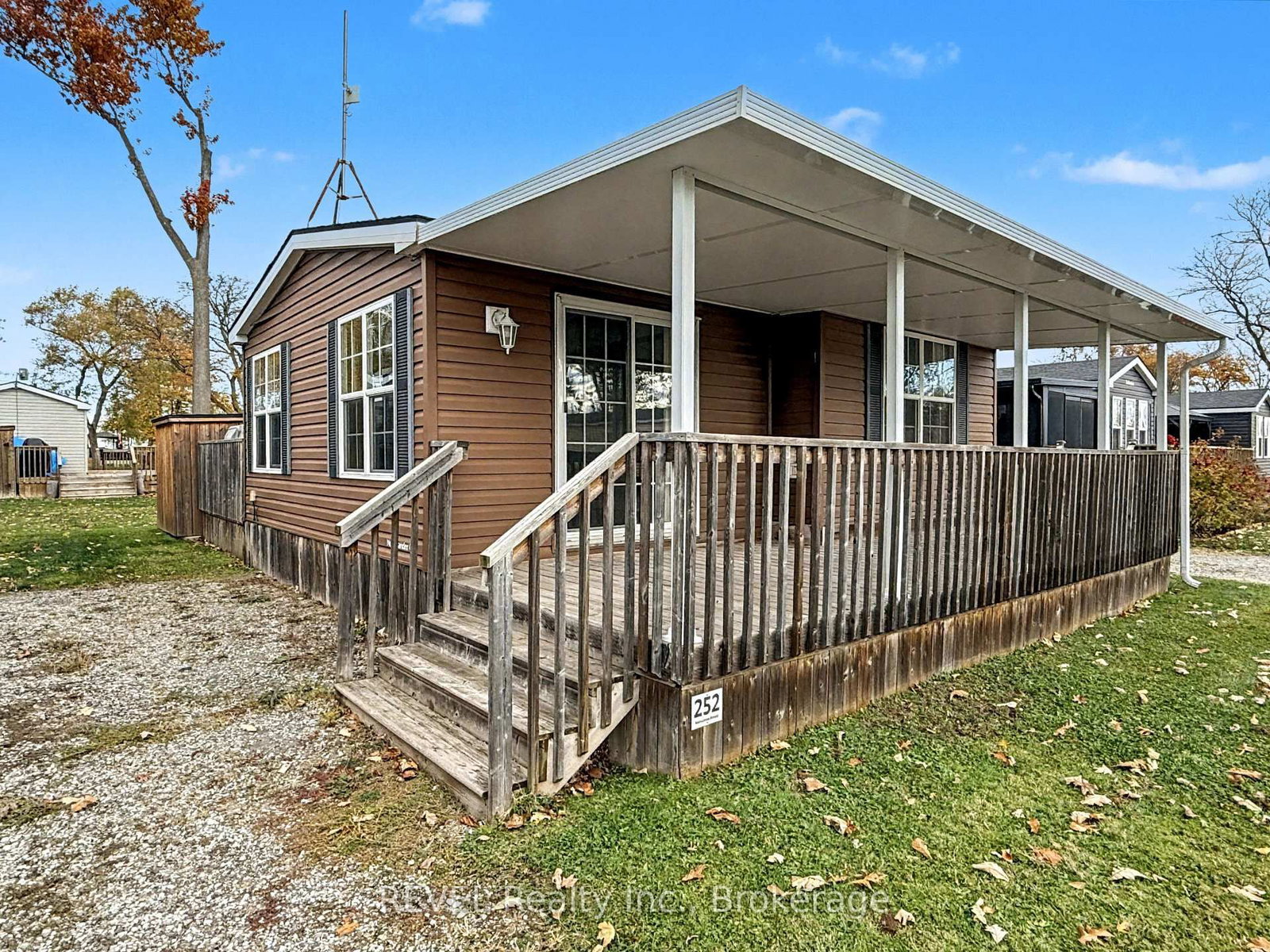 Unit 252 - Monument | Vine Ridge Resort. The Bungalow on 252-1501 Line 8 Road has 2 bedrooms, 1 bathrooms, and is located on < .50 acres in the community of Queenston . Peaceful and private, this 2014 Northlander Chestnut double-wide offers 660 sq. ft. of bright, comfortable cottage living just steps from the neighbouring vineyard. Tucked into a quiet pocket of the resort, this is one of the best-value double-wides offered at Vine Ridge.Enjoy exceptional indoor-outdoor living with a huge extended front wrap-around deck and an impressive 24-ft enclosed hardtop room - perfect for dining, relaxing, and entertaining. A storage shed adds extra convenience and functionality.Ideal as a family summer retreat in one of Ontario's most sought-after resort communities.Financing available from $19,900 down and $229/week. Seasonal resort-open May 1-October 31. 2026 annual fees $8690 (hydro, water, septic, landscaping and grass cutting, use of the resort amenities for friends and family, full entertainment program and Airbnb options).