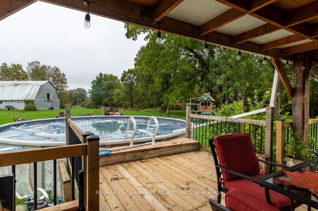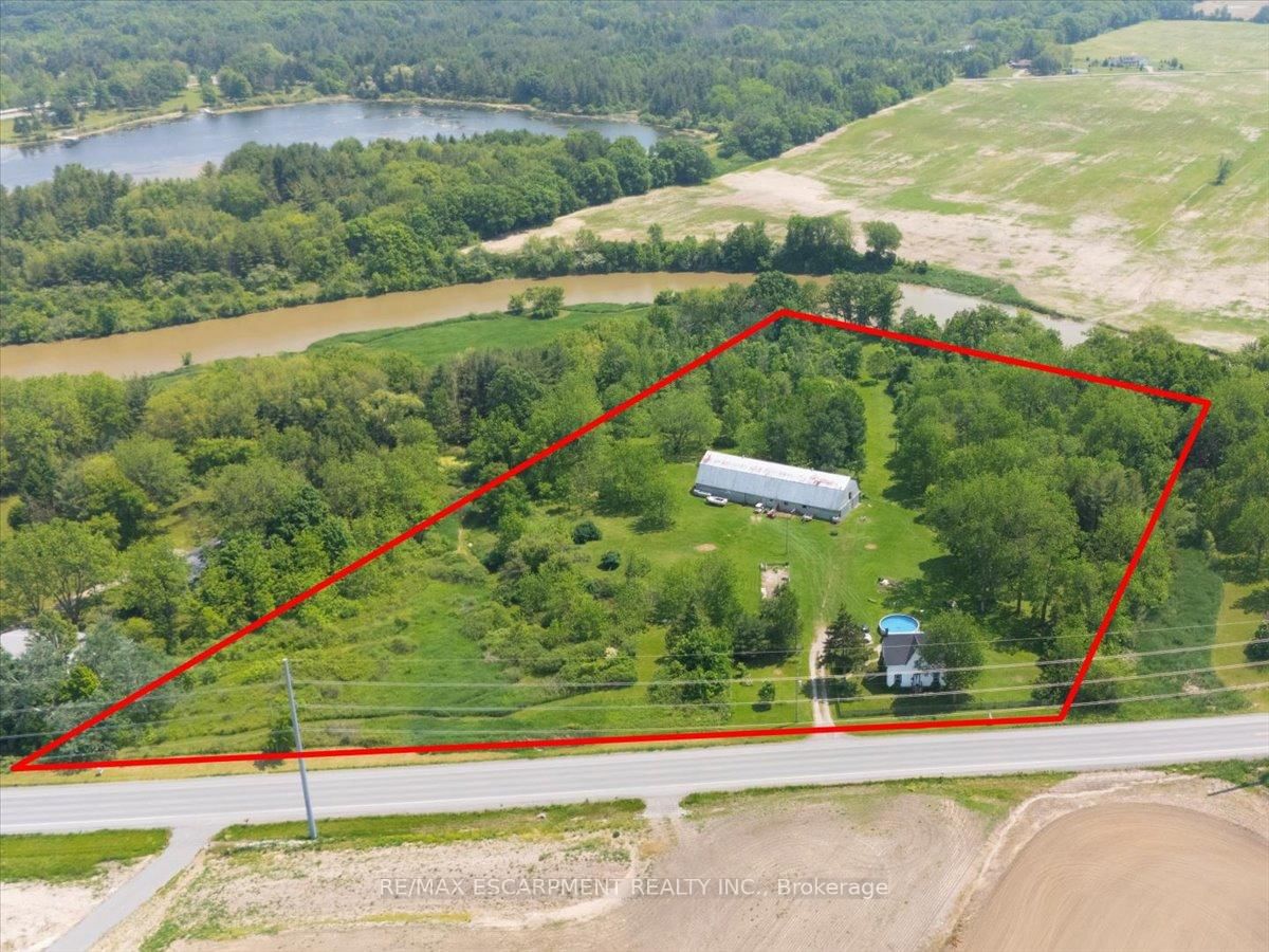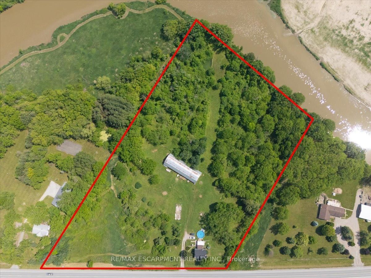 Welcome to 5914 Canborough Road, a serene rural retreat just outside Wellandport. The 1 1/2 Storey on 5914 Canborough Road W has 4 bedrooms, 2 bathrooms, and is located on a 530 x 588 ft loton 5-9.99 acres in the community of Bismark/Wellandport . This nearly 8.5-acre property offers just under 500 feet of Welland River frontage, perfect for riverside activities or simply enjoying the views. The land is beautifully maintained with a mix of trees and open spaces, providing privacy with enough cleared areas for trails or a hobby farm. The charming century home, built before 1900, features 4 spacious bedrooms, an updated 4-piece bathroom (2023), a 3-piece bathroom (2020), a country kitchen, and a cozy family room. Step out to the covered back deck with access to an above-ground pool and peaceful surroundings. The property includes a large two-storey 120 x 40 barn (1975), ideal for farming, hobbies, or storage. Located just 15 minutes from Dunnville and Smithville, it offers the perfect balance of rural tranquility and convenience. Don't miss out on this unique property.