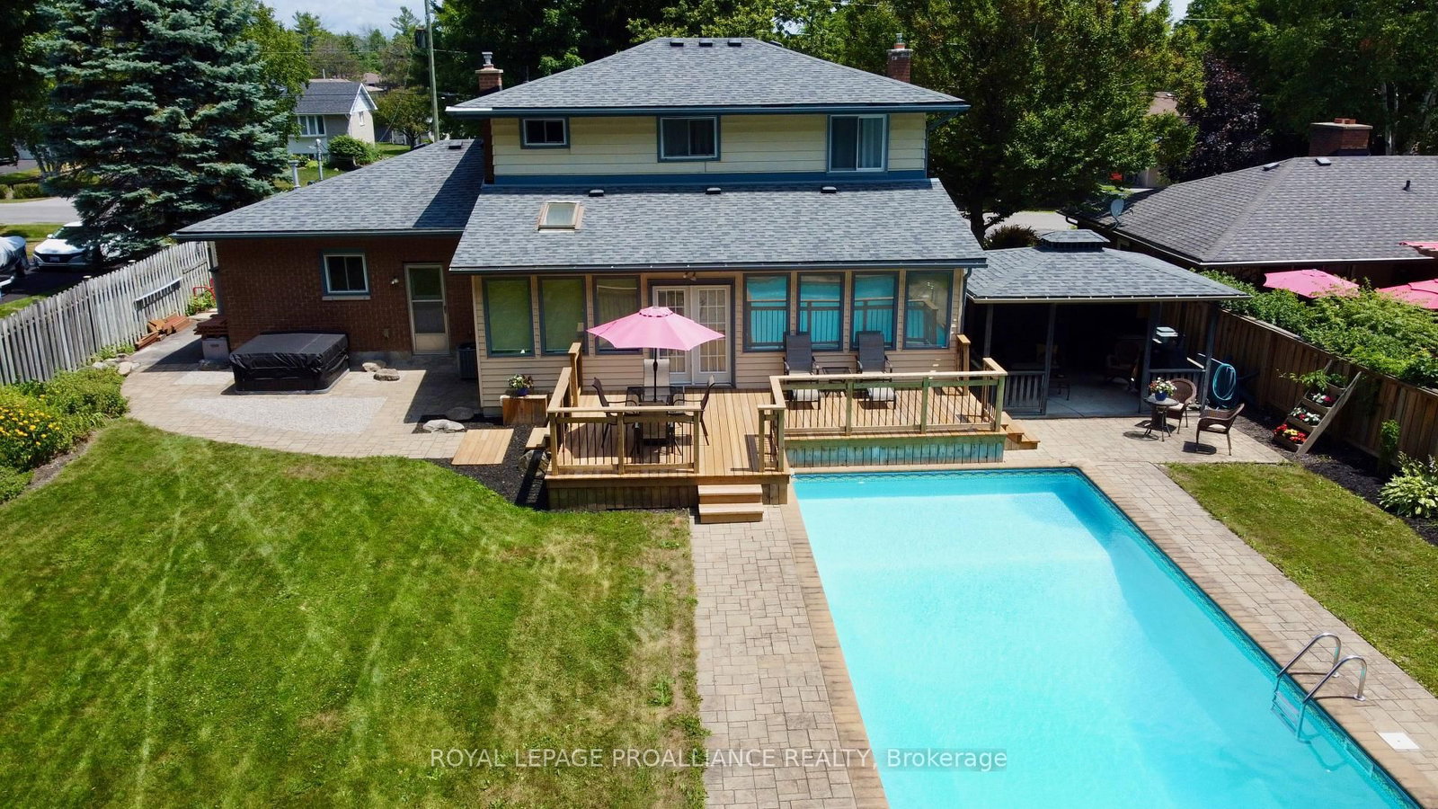 Welcome to this beautifully maintained two-story home, conveniently & privately situated; perfect for family living. The 2-Storey on 553 Whites Road has 3 bedrooms, 2 bathrooms, and is located on a 192 x 60 ft loton < .50 acres in the community of Sidney Ward . Featuring three bedrooms + office, a finished basement, and a heated double car garage, there's plenty of space for everyone. The large functional kitchen offers ample cabinetry and workspace, while overlooking the fenced in, oversized, and private backyard with in-ground swimming pool. The ample west facing sunroom, with gas fireplace, is flooded with natural light and makes for a great dining room, family room, office, or even a gym. It's big enough it can have two uses. The front facing living room features a large window and hardwood flooring. Upstairs is the large primary bedroom, two more bedrooms, and main washroom. Downstairs is the cozy rec room with another gas fireplace, office, large utility room and cold storage. Located between Trenton and Belleville with excellent 401 access and walking distance to the nearest park. Video walkthrough available.