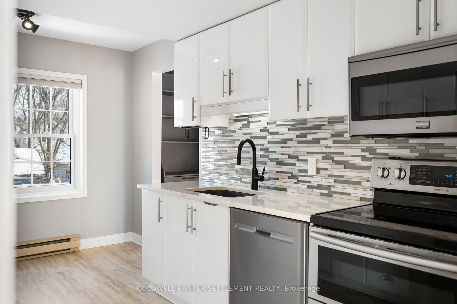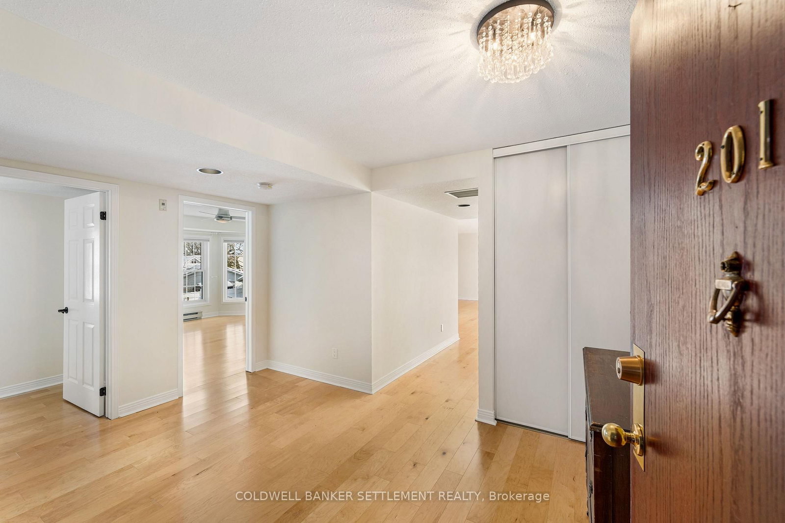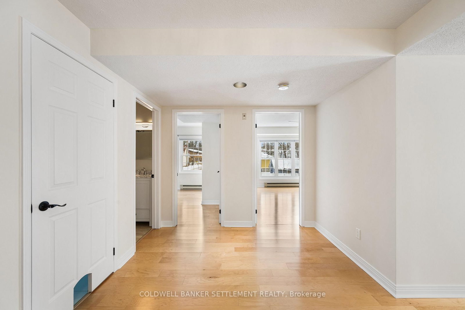 Tay Terraces, bright and open feel in this well maintained 1,258 sq. The 1 Storey/Apt on 201-19 John Street has 2 bedrooms, 2 bathrooms, and is located in the community of Perth . ft. condo, one of the larger units in the building, offering a practical two-bedroom, two-bathroom layout with a generous foyer and plenty of natural light throughout. Large windows fill the space with sunlight, creating a clean, refreshing atmosphere that feels welcoming the moment you step inside. The neutral palette, maple floors, and thoughtful updates give the condo a crisp, move-in ready appeal while still feeling warm and comfortable. Professionally painted and finished with custom window blinds, the space feels polished and well cared for. The living room faces west with a pleasant view toward the Tay River and evening sunsets, adding a calm backdrop to everyday living. The kitchen features quartz counters, glass backsplash, stainless steel appliances including a double-oven stove, and a bright breakfast nook by the window. In-suite laundry and additional storage provide everyday convenience without compromising living space. The primary bedroom is a generous size and includes a 3-piece ensuite with walk-in shower, while the second bedroom is well suited for guests or a home office and located next to the full second bathroom. New built-ins in both bedrooms and the dining area offer excellent storage and enhance the clean, organized feel of the condo. The condo includes a designated parking space with power close to the main entrance, plus additional guest parking. This well-managed, well maintained building offers landscaped grounds and river access with a dock and canoe/kayak launch, all within walking distance to downtown shops, restaurants, cafés, parks, and everyday amenities.