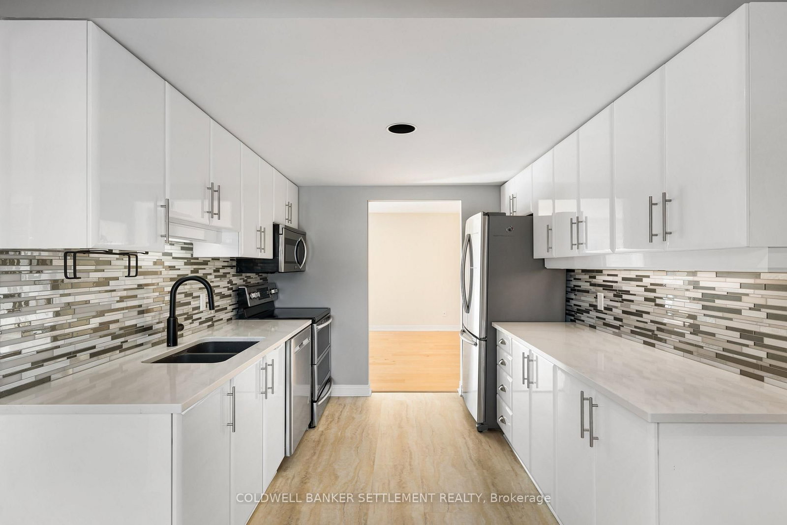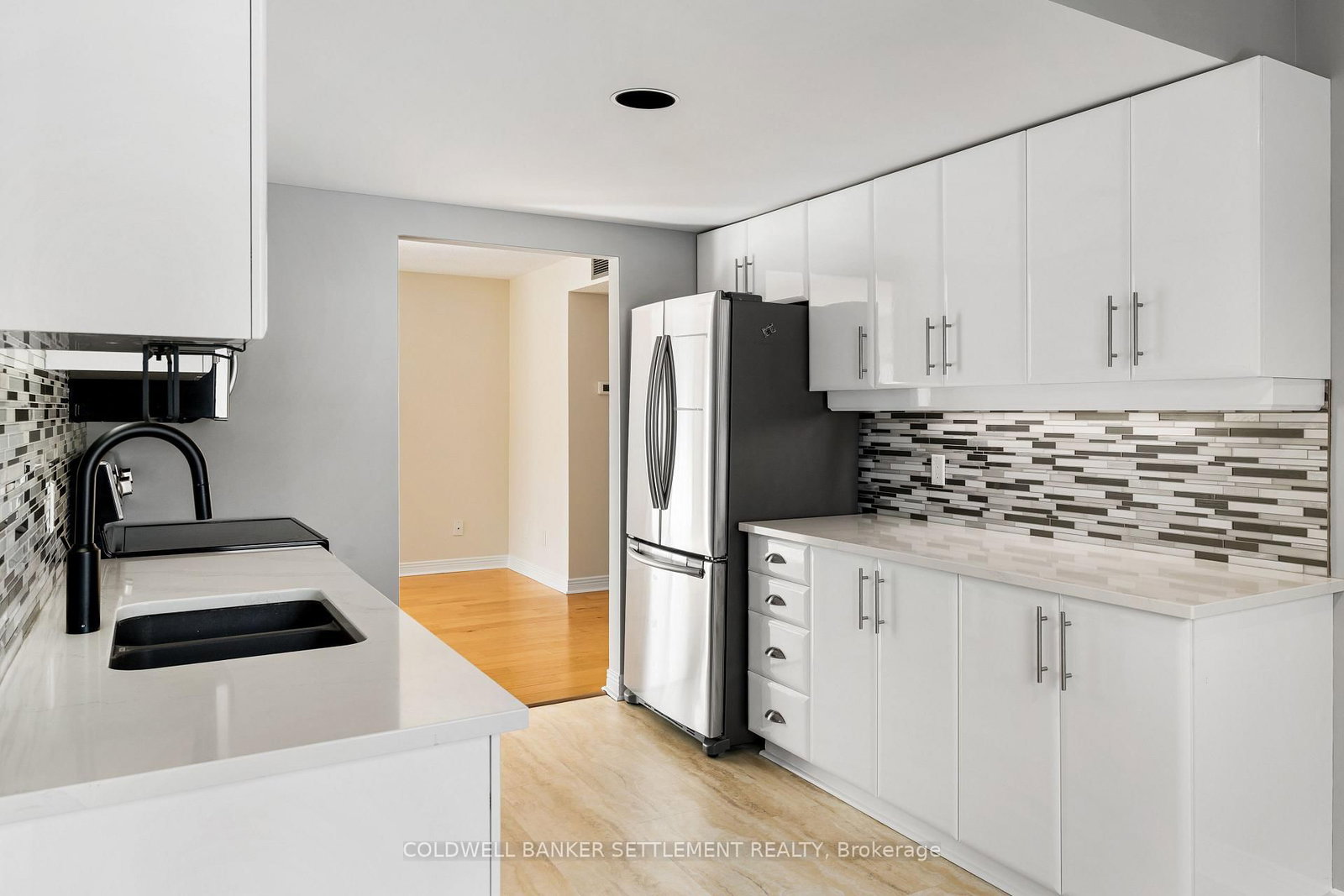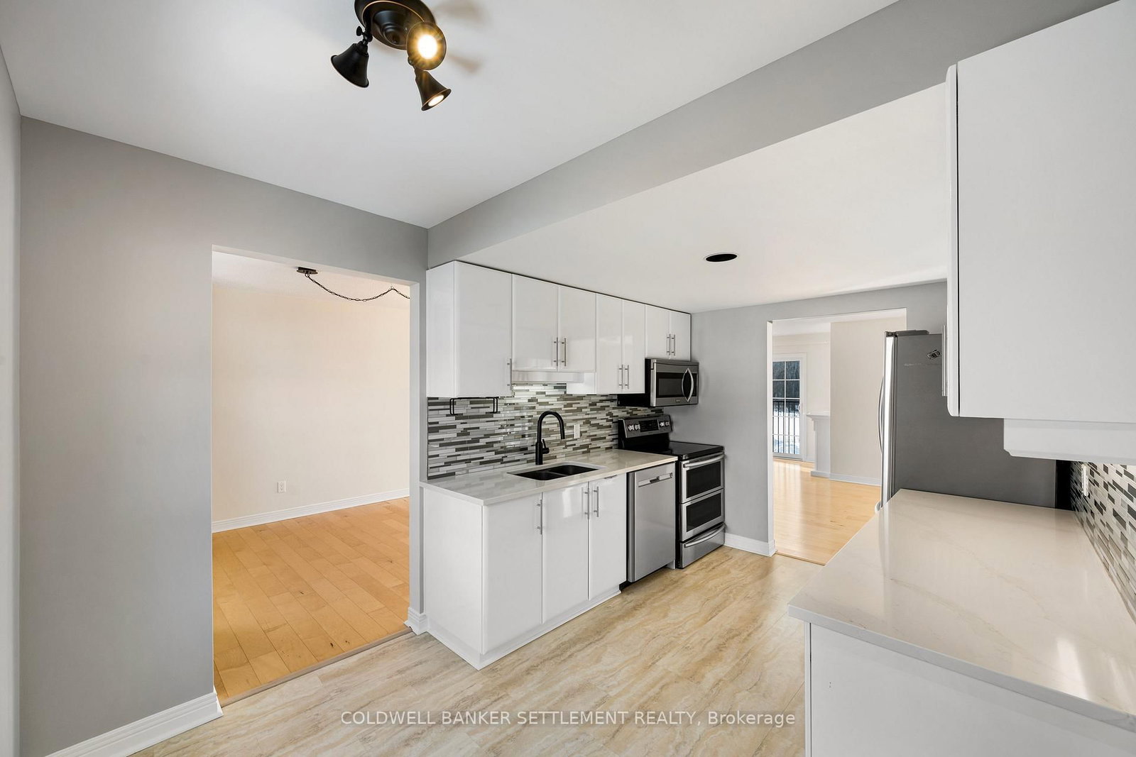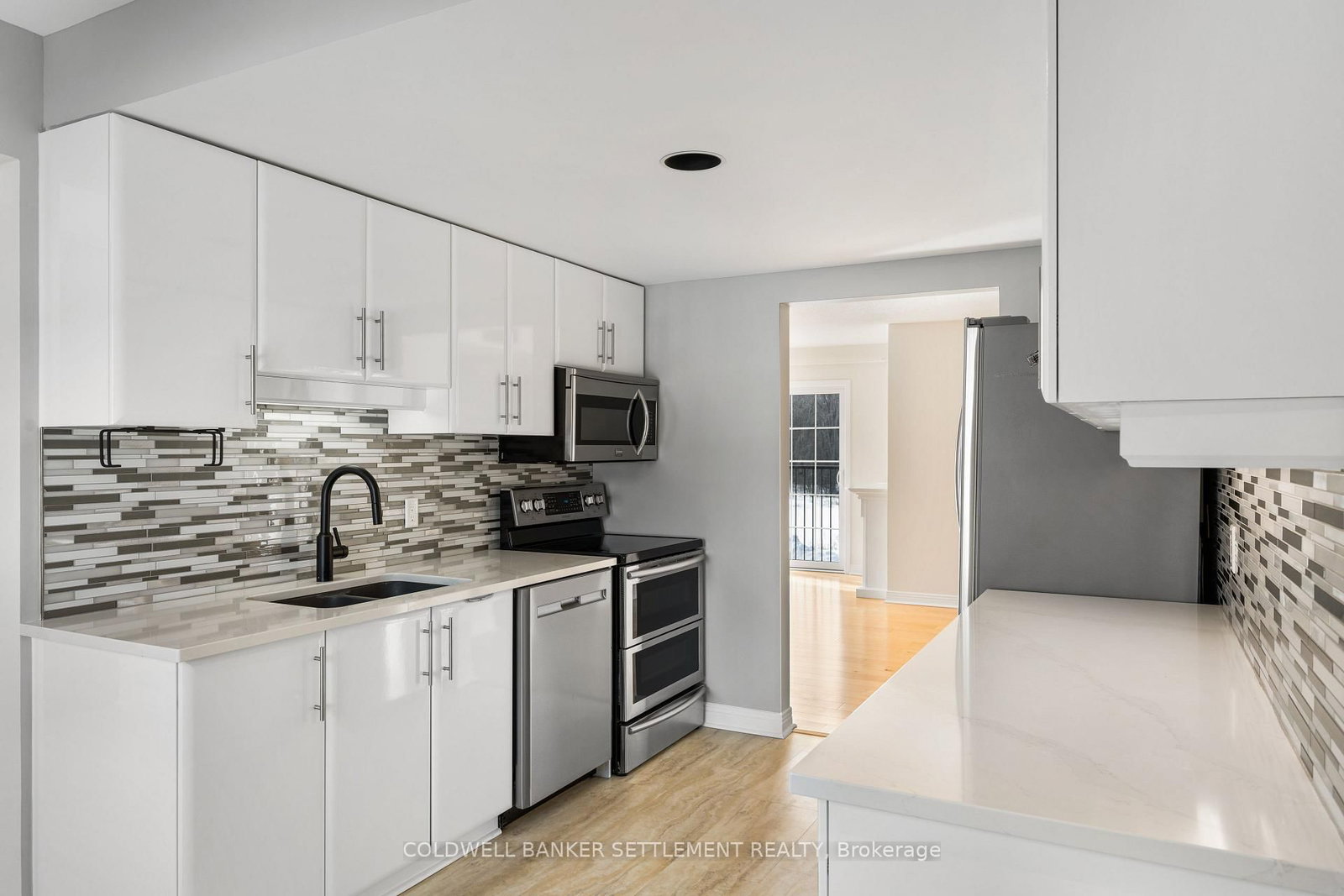Tay Terraces, bright and open feel in this well maintained 1,258 sq. The 1 Storey/Apt on 201-19 John Street has 2 bedrooms, 2 bathrooms, and is located in the community of Perth . ft. condo, one of the larger units in the building, offering a practical two-bedroom, two-bathroom layout with a generous foyer and plenty of natural light throughout. Large windows fill the space with sunlight, creating a clean, refreshing atmosphere that feels welcoming the moment you step inside. The neutral palette, maple floors, and thoughtful updates give the condo a crisp, move-in ready appeal while still feeling warm and comfortable. Professionally painted and finished with custom window blinds, the space feels polished and well cared for. The living room faces west with a pleasant view toward the Tay River and evening sunsets, adding a calm backdrop to everyday living. The kitchen features quartz counters, glass backsplash, stainless steel appliances including a double-oven stove, and a bright breakfast nook by the window. In-suite laundry and additional storage provide everyday convenience without compromising living space. The primary bedroom is a generous size and includes a 3-piece ensuite with walk-in shower, while the second bedroom is well suited for guests or a home office and located next to the full second bathroom. New built-ins in both bedrooms and the dining area offer excellent storage and enhance the clean, organized feel of the condo. The condo includes a designated parking space with power close to the main entrance, plus additional guest parking. This well-managed, well maintained building offers landscaped grounds and river access with a dock and canoe/kayak launch, all within walking distance to downtown shops, restaurants, cafés, parks, and everyday amenities.