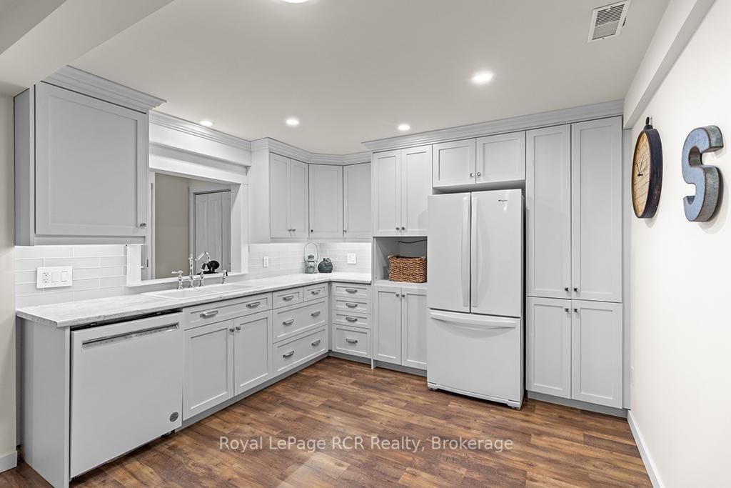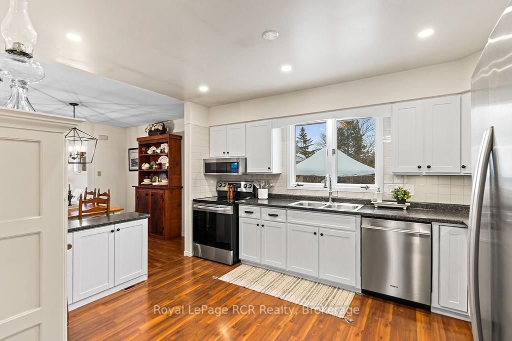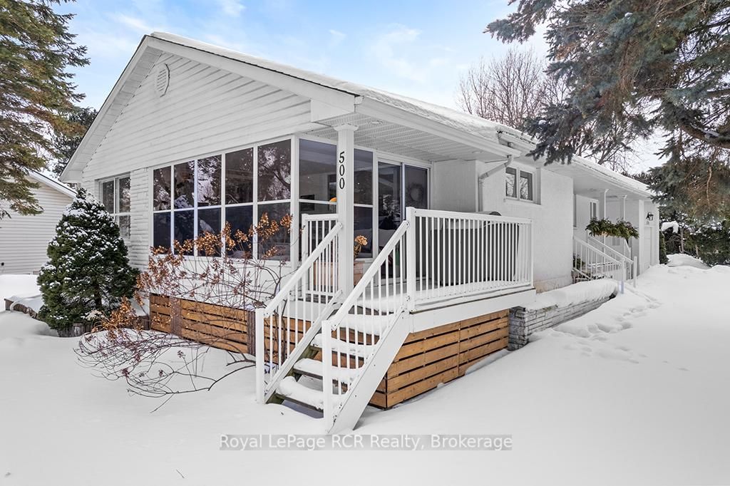 Perfectly positioned at the corner of Grandview Drive and Helen Street, this beautifully renovated raised bungalow captures the serene essence of life near the Bay. The Bungalow on 500 Grandview Drive has 3 bedrooms, 2 bathrooms, and is located on a 183.65 x 68 ft loton < .50 acres in the community of Meaford . The main floor is tastefully decorated and flooded with natural light, featuring an updated kitchen, modern lighting, and a spacious layout with plenty of room for entertaining. With three bedrooms on the main level and a spectacular three-season sunroom specifically designed to watch the waves, this home is as functional as it is inviting. The fully finished lower level provides an expansive footprint perfectly suited for a growing family, multigenerational living, or a premium guest suite. This updated space features its own kitchen, bathroom, bedroom, and two distinct activity areas offering ultimate flexibility to suit your lifestyle. A convenient walk-up to the mudroom ensures easy access and organization, making the lower level feel like a natural, private extension of the home. Outside, the property boasts a generous private yard, offering a secluded oasis for outdoor entertaining, gardening, or family activities, all complemented by an attached garage and storage shed. Beyond the visible beauty, this home features high-performance upgrades for year-round comfort and peace of mind. The lower level is fully optimized with spray foam walls, an insulated floor, and radiant heating in the bathroom. For superior sound dampening and thermal efficiency, the ceilings feature 6" Rockwool insulation and 5/8" drywall. Completing these "hidden" essentials is an electrical system that features a dedicated generator panel and exterior plug for ultimate reliability. With its prime location, water views from many vantage points, and extensive recent upgrades, this property is a turn-key opportunity to enjoy a sophisticated lifestyle near Georgian Bay.