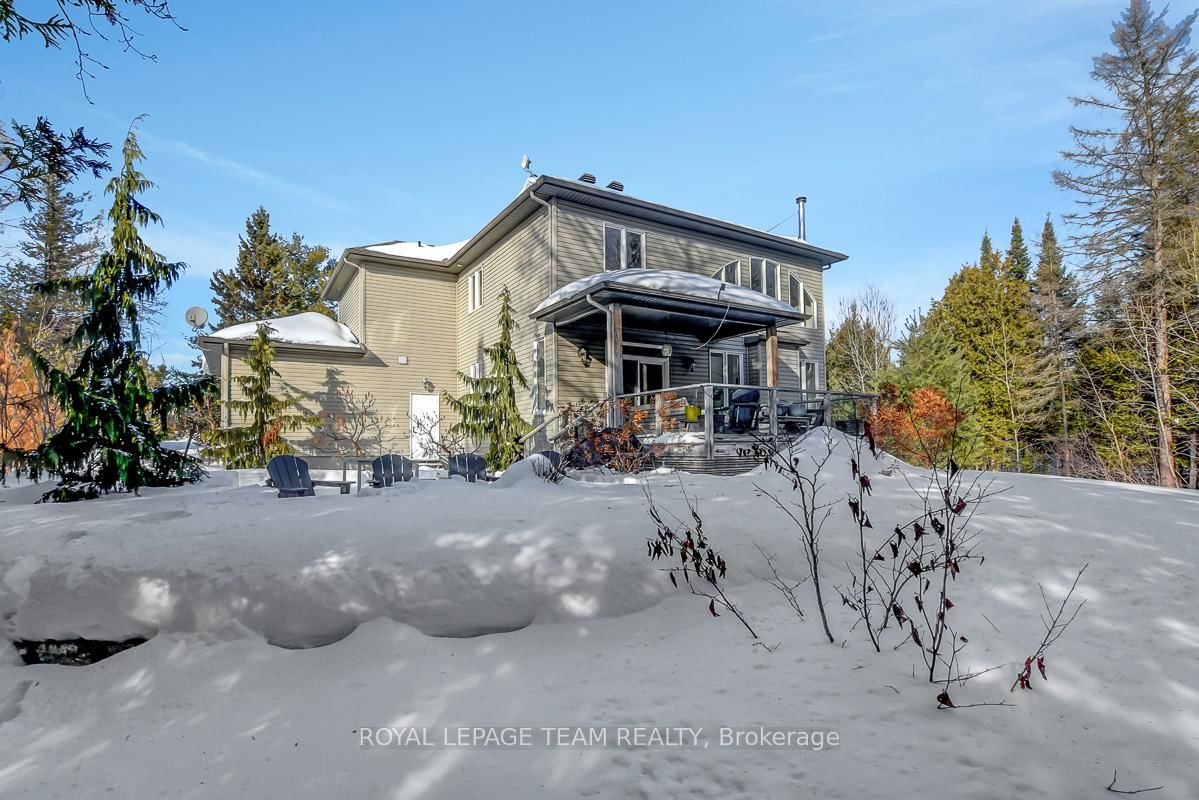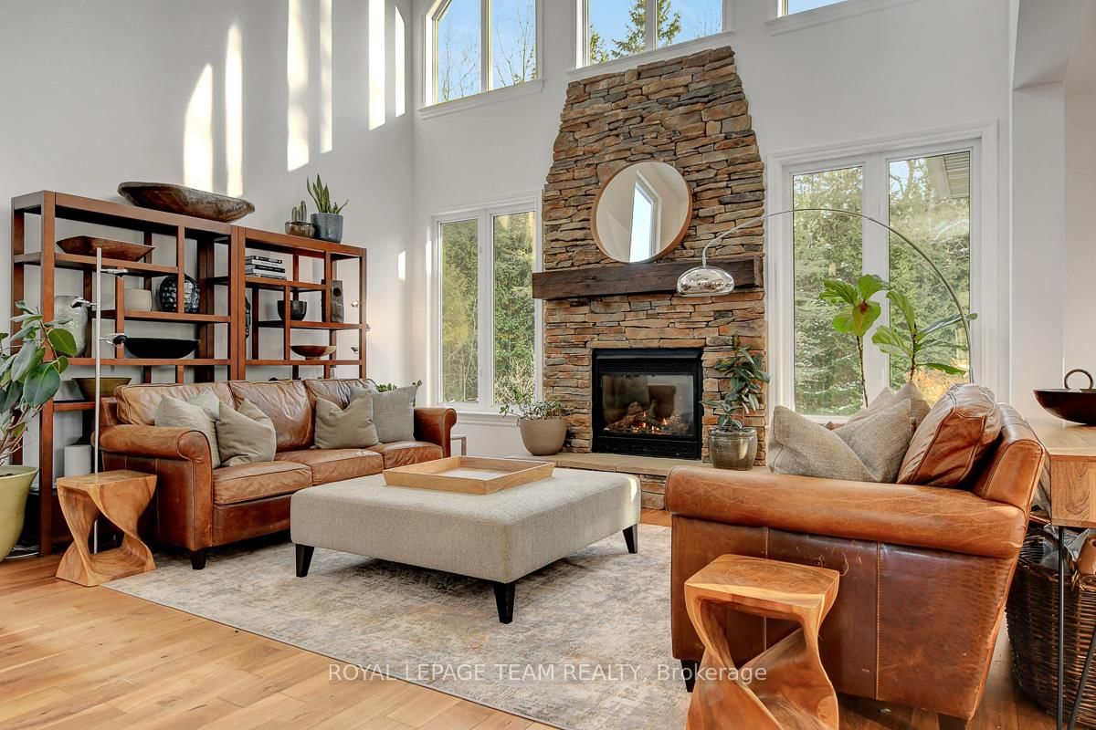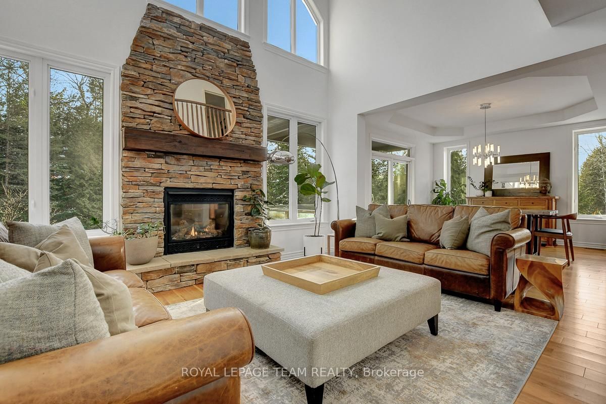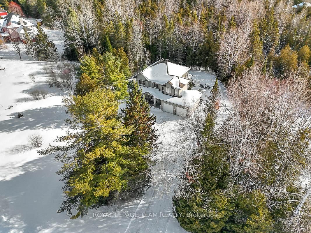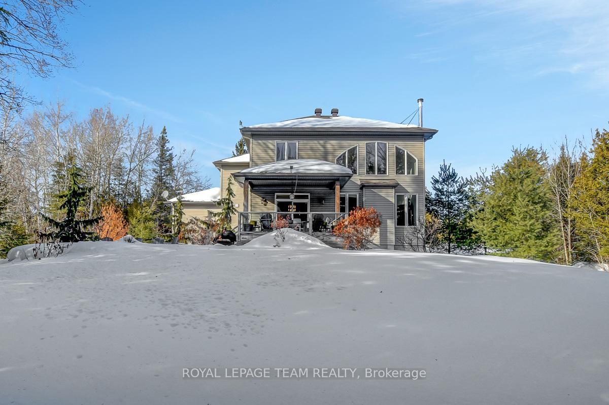 Privately nestled behind a canopy of mature trees on a spectacular 2+ acre reverse pie lot with great frontage. The 2-Storey on 1840 Corkery Road has 4 bedrooms, 3 bathrooms, and is located on a 361.12 x 485.56 ft lot in the community of Huntley Ward (North West) . Striking custom-built home by Doyle Homes LTD pairs architectural presence with the serenity of an exclusive rural setting. Lush perennial gardens & covered front porch create an inviting first impression. Striking rooflines and an oversized double garage with convenient rear yard entry. Mid-tone engineered hardwood floors pair effortlessly with crisp white walls, tall ceilings and expansive windows that flood the home with natural light. Intricate architectural details and a blend of modern & character-driven finishes add style throughout. Spacious foyer connects to a well-designed laundry & mudroom with storage + garage access. Separate family room offers flexibility for a lounging area or private home office. Stunning open-concept layout with a showstopping living room boasting soaring two-storey ceilings, dramatic windows overlooking the scenic treed backyard + fireplace with stone surround. Dining area sits beneath a tray ceiling and provides direct access to a large, raised covered cedar deck-perfect. Chef's kitchen features rich dark wood cabinetry, granite counters, bright subway tile backsplash, stainless steel appliances and a generous centre island. Elegant curved hardwood staircase leads upstairs. Primary retreat complete with a spacious walk-in closet and a fully appointed ensuite bath. Three additional bedrooms share a well-designed full bathroom with double sinks. Backyard is exceptionally private, lined with mature trees and offering a peaceful natural oasis. Covered deck + patio provides ample space for entertaining, expansive green space allows room to run, play or enjoy the tranquility. Set on a quiet street within Huntley, surrounded by countryside trails and recreation. Easy reach of charming Carp known for its local shops, seasonal markets, and community events. Excellent local schools and just minutes to Hwy 417.