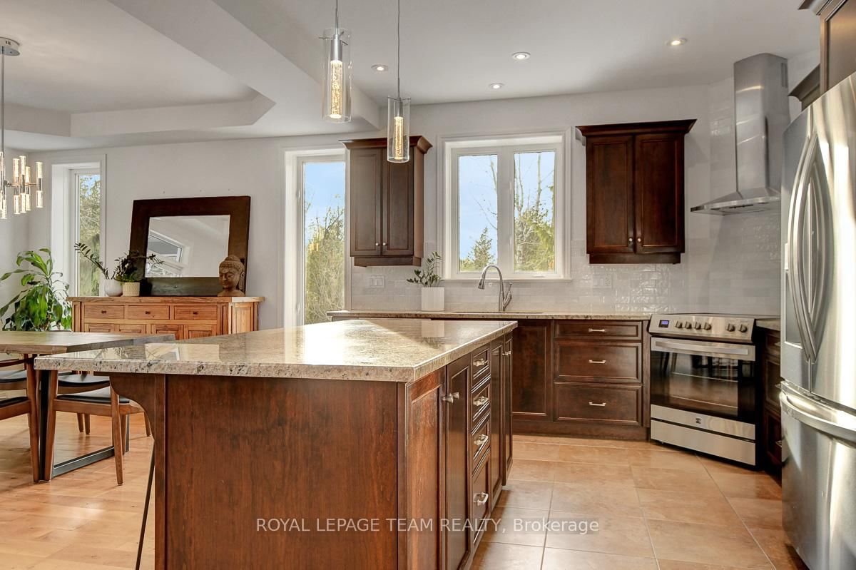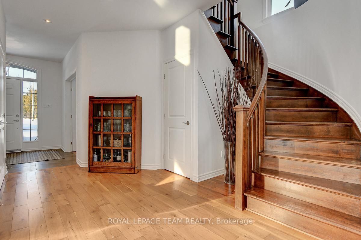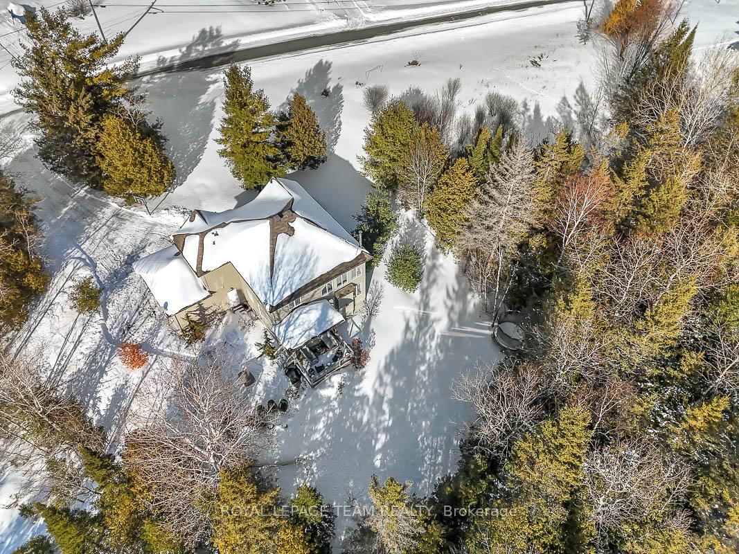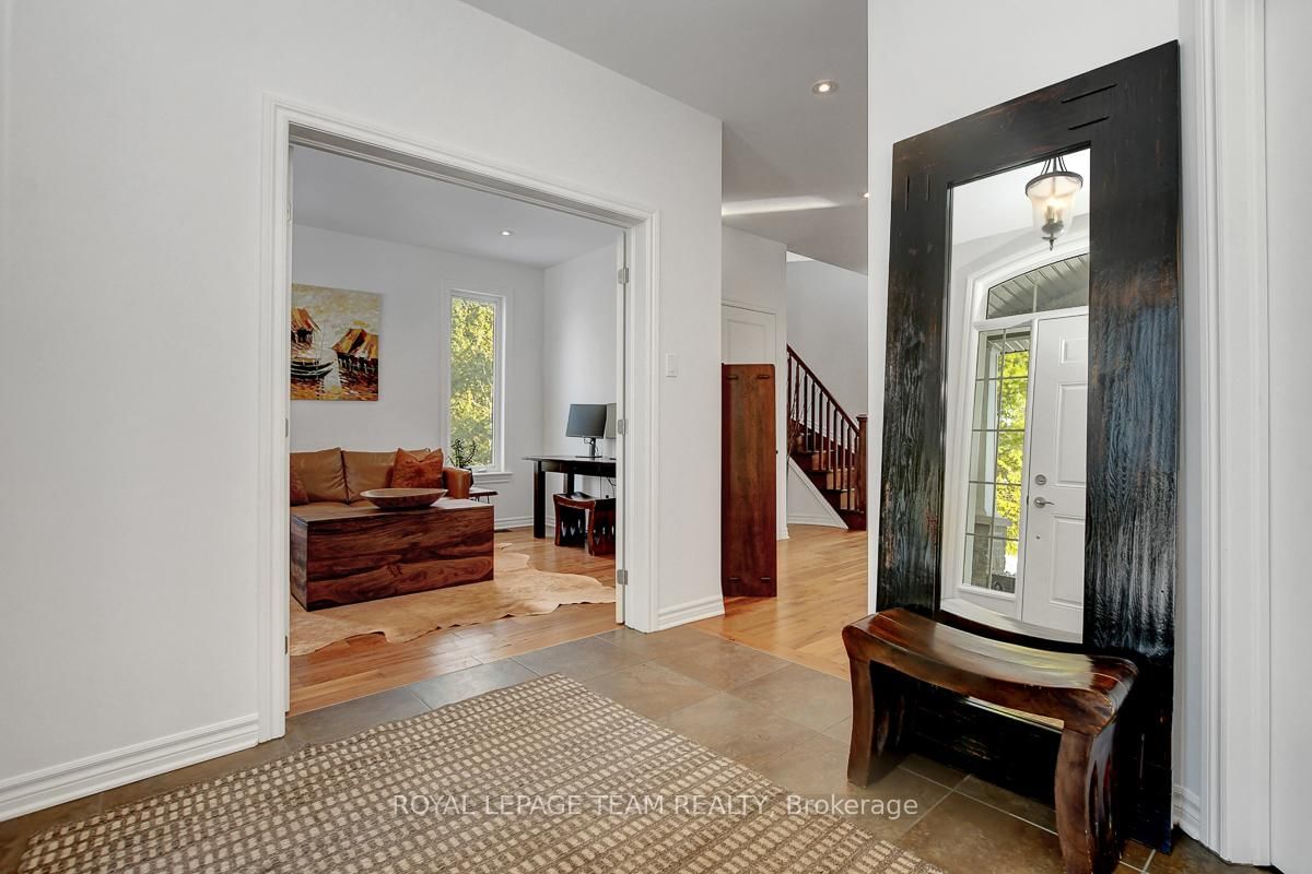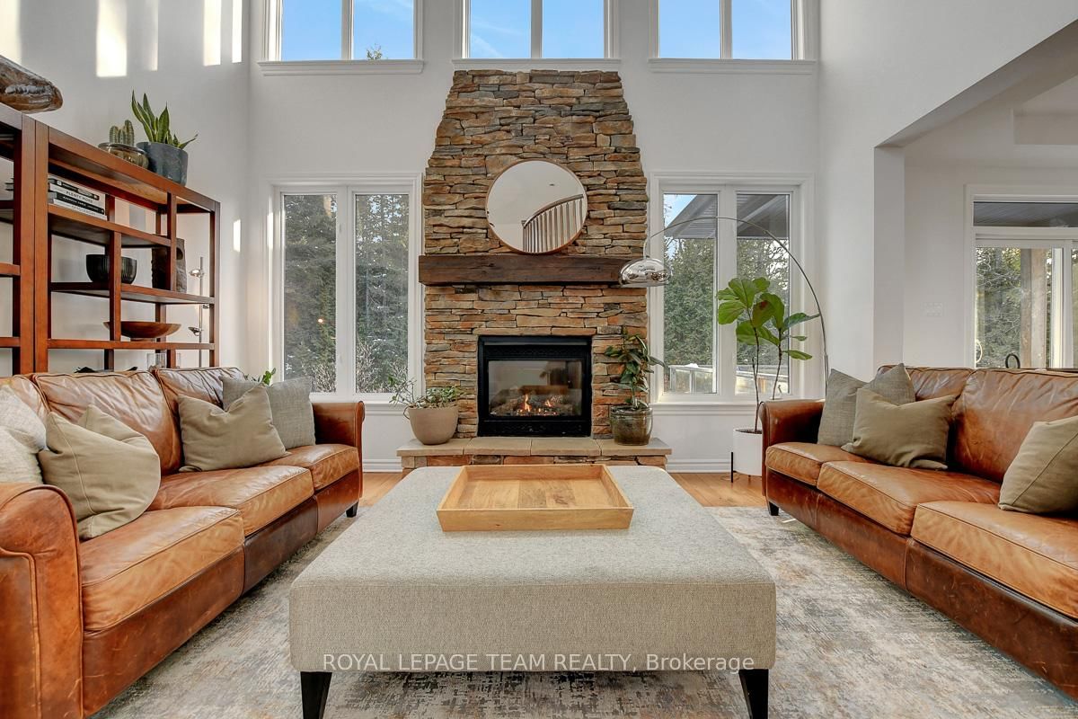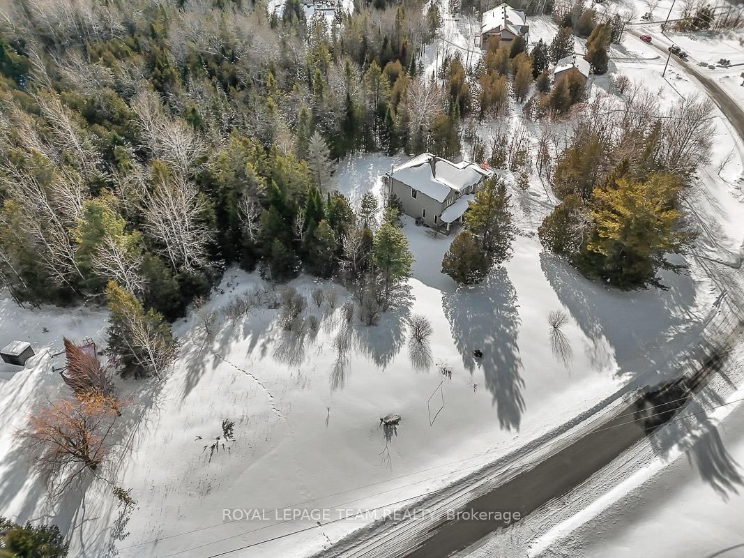 Privately nestled behind a canopy of mature trees on a spectacular 2+ acre reverse pie lot with great frontage. The 2-Storey on 1840 Corkery Road has 4 bedrooms, 3 bathrooms, and is located on a 361.12 x 485.56 ft lot in the community of Huntley Ward (North West) . Striking custom-built home by Doyle Homes LTD pairs architectural presence with the serenity of an exclusive rural setting. Lush perennial gardens & covered front porch create an inviting first impression. Striking rooflines and an oversized double garage with convenient rear yard entry. Mid-tone engineered hardwood floors pair effortlessly with crisp white walls, tall ceilings and expansive windows that flood the home with natural light. Intricate architectural details and a blend of modern & character-driven finishes add style throughout. Spacious foyer connects to a well-designed laundry & mudroom with storage + garage access. Separate family room offers flexibility for a lounging area or private home office. Stunning open-concept layout with a showstopping living room boasting soaring two-storey ceilings, dramatic windows overlooking the scenic treed backyard + fireplace with stone surround. Dining area sits beneath a tray ceiling and provides direct access to a large, raised covered cedar deck-perfect. Chef's kitchen features rich dark wood cabinetry, granite counters, bright subway tile backsplash, stainless steel appliances and a generous centre island. Elegant curved hardwood staircase leads upstairs. Primary retreat complete with a spacious walk-in closet and a fully appointed ensuite bath. Three additional bedrooms share a well-designed full bathroom with double sinks. Backyard is exceptionally private, lined with mature trees and offering a peaceful natural oasis. Covered deck + patio provides ample space for entertaining, expansive green space allows room to run, play or enjoy the tranquility. Set on a quiet street within Huntley, surrounded by countryside trails and recreation. Easy reach of charming Carp known for its local shops, seasonal markets, and community events. Excellent local schools and just minutes to Hwy 417.