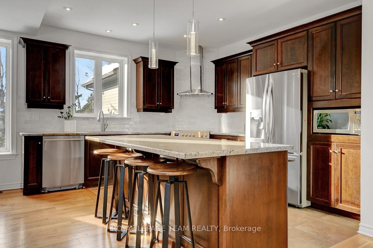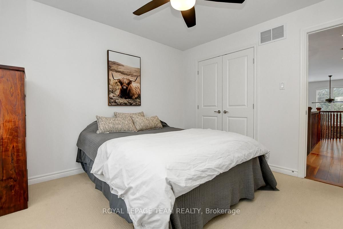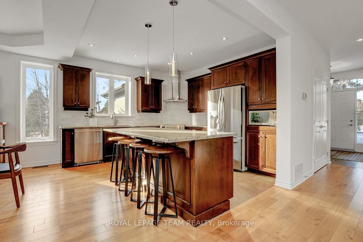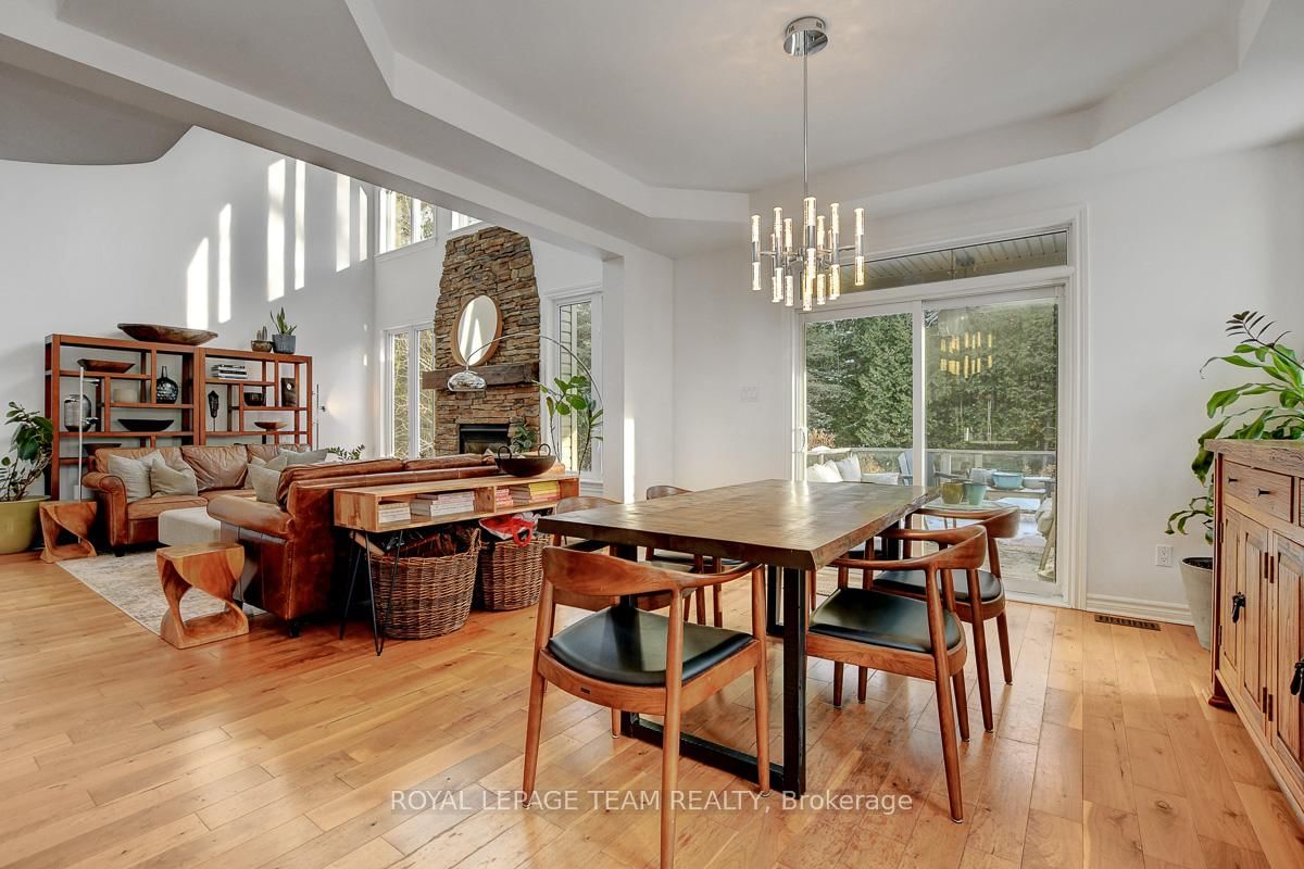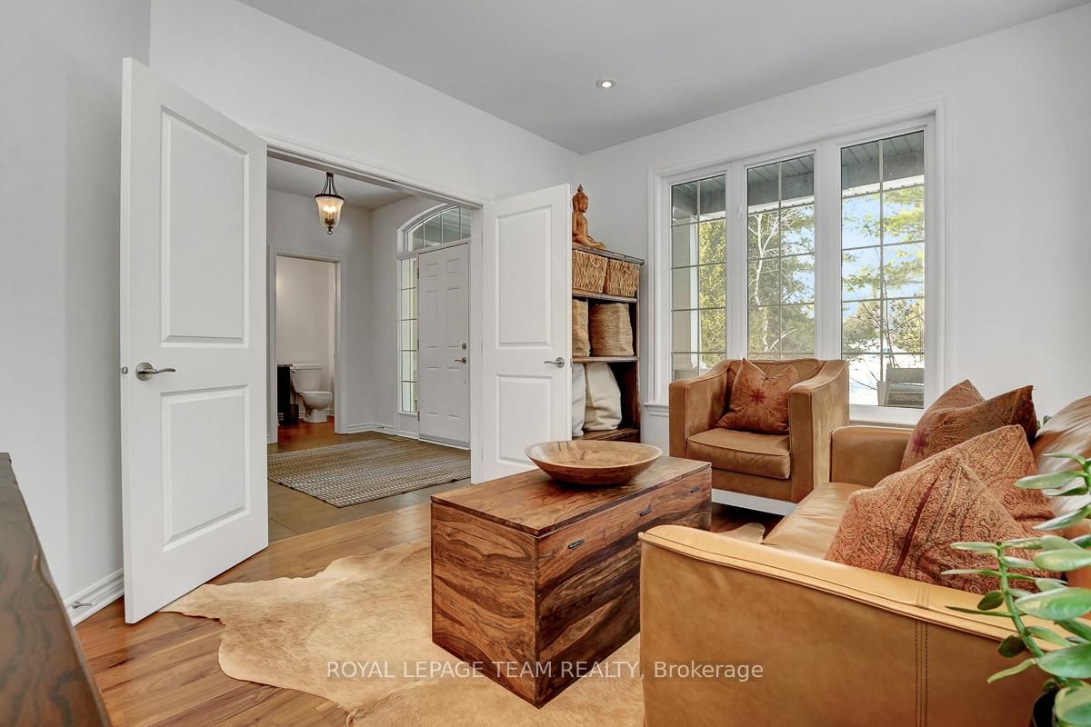 Privately nestled behind a canopy of mature trees on a spectacular 2+ acre reverse pie lot with great frontage. The 2-Storey on 1840 Corkery Road has 4 bedrooms, 3 bathrooms, and is located on a 361.12 x 485.56 ft lot in the community of Huntley Ward (North West) . Striking custom-built home by Doyle Homes LTD pairs architectural presence with the serenity of an exclusive rural setting. Lush perennial gardens & covered front porch create an inviting first impression. Striking rooflines and an oversized double garage with convenient rear yard entry. Mid-tone engineered hardwood floors pair effortlessly with crisp white walls, tall ceilings and expansive windows that flood the home with natural light. Intricate architectural details and a blend of modern & character-driven finishes add style throughout. Spacious foyer connects to a well-designed laundry & mudroom with storage + garage access. Separate family room offers flexibility for a lounging area or private home office. Stunning open-concept layout with a showstopping living room boasting soaring two-storey ceilings, dramatic windows overlooking the scenic treed backyard + fireplace with stone surround. Dining area sits beneath a tray ceiling and provides direct access to a large, raised covered cedar deck-perfect. Chef's kitchen features rich dark wood cabinetry, granite counters, bright subway tile backsplash, stainless steel appliances and a generous centre island. Elegant curved hardwood staircase leads upstairs. Primary retreat complete with a spacious walk-in closet and a fully appointed ensuite bath. Three additional bedrooms share a well-designed full bathroom with double sinks. Backyard is exceptionally private, lined with mature trees and offering a peaceful natural oasis. Covered deck + patio provides ample space for entertaining, expansive green space allows room to run, play or enjoy the tranquility. Set on a quiet street within Huntley, surrounded by countryside trails and recreation. Easy reach of charming Carp known for its local shops, seasonal markets, and community events. Excellent local schools and just minutes to Hwy 417.