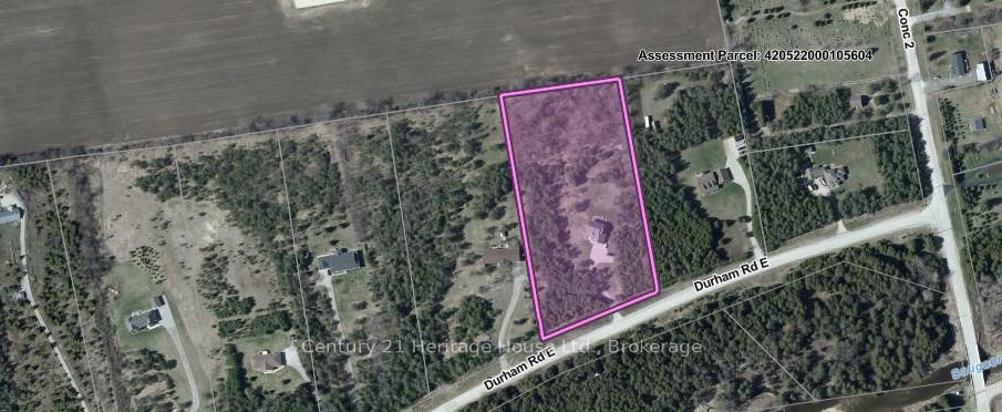 Welcome to 323237 Durham Road E, West Grey - This immaculately maintained family home offers the best of both worlds. The 2-Storey on 323237 Durham Road E has 4 bedrooms, 4 bathrooms, and is located on a 550.92 x 294.06 ft loton 2-4.99 acres in the community of West Grey . Within walking distance to the Town of Durham and the Conservation Area, this family home sits on a very private 4-acre lot, with large front and back greenspace, as well as a mixed bush to roam. This stunning home is a must-see! The main floor boasts a large family kitchen with granite countertops and a large island, open-concept dining and living area, as well as a bonus room currently set up as a den but could be used as a formal dining area, playroom, or main floor bedroom for multi-generational living. Lots of natural light throughout, and main floor laundry with a 2-piece bath complete the main area, along with garage access. The 40 x 20 private stamped concrete patio is perfect for hosting and provides a tranquil view of the backyard. Upstairs, there are 4 spacious bedrooms, a full guest bath, and a primary suite featuring his-and-hers custom closets, as well as an updated en-suite bathroom. The fully finished lower level comes with a gas fireplace, providing additional comfort with extra living or recreational space and ample storage. A separate stairwell leading from the garage to the basement allows for easy access. This home also has a large attached double car garage and an oversized storage shed for all your storage needs. The paved driveway enhances the curb appeal of the home, with well-maintained and established flower beds.This home is walking distance to downtown amenities and is only steps away from the local conservation area/park with many trails at your convenience. This gorgeous property is ready for you to call it home.