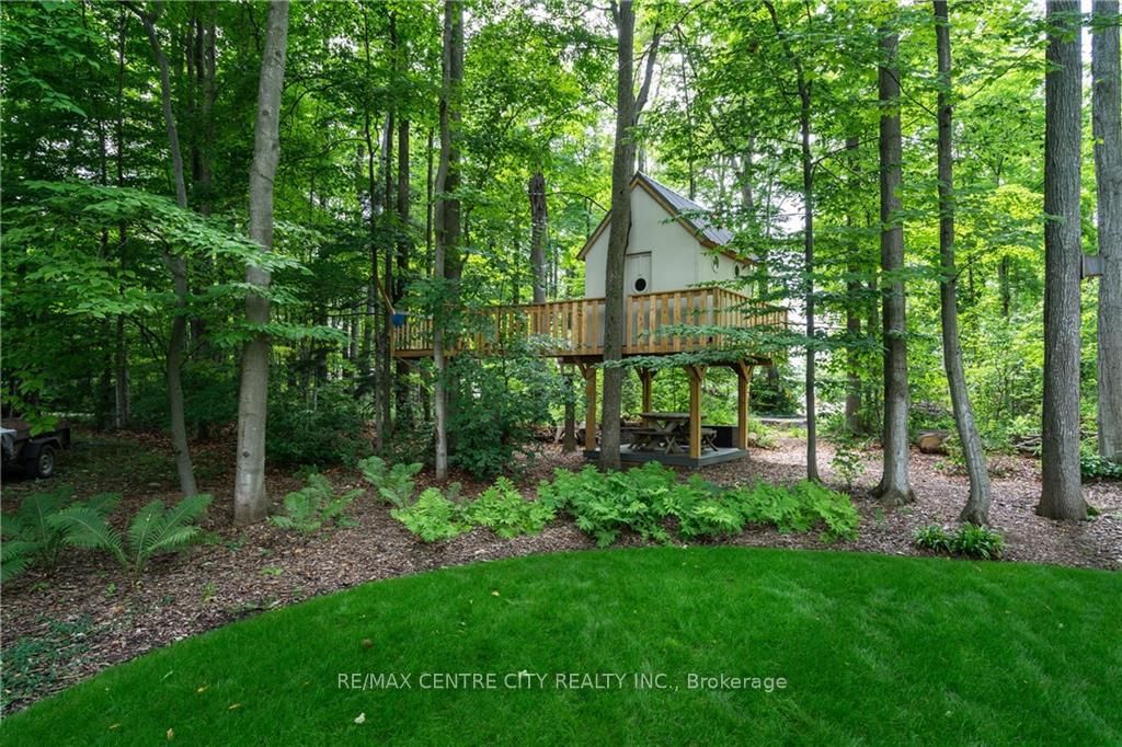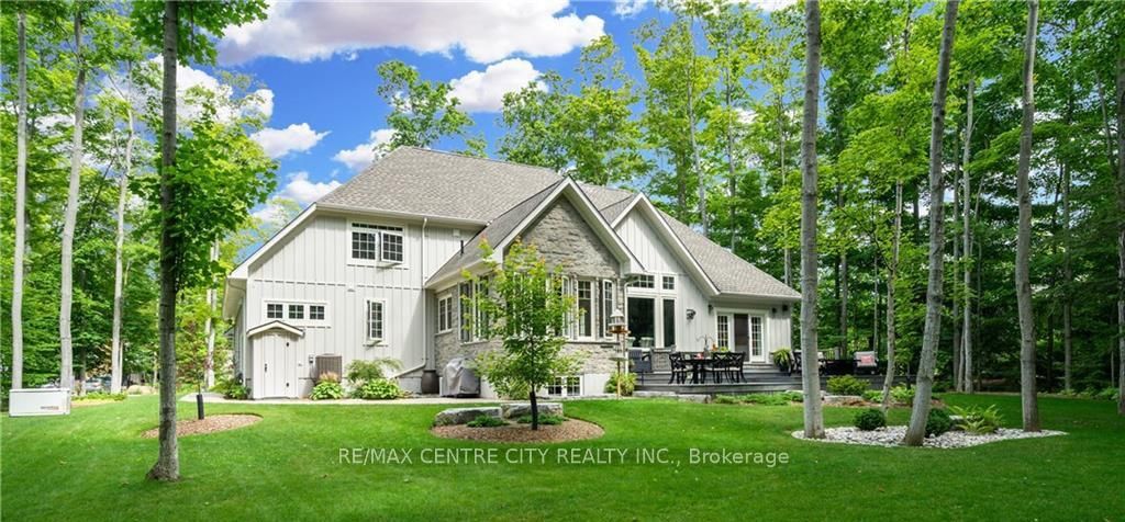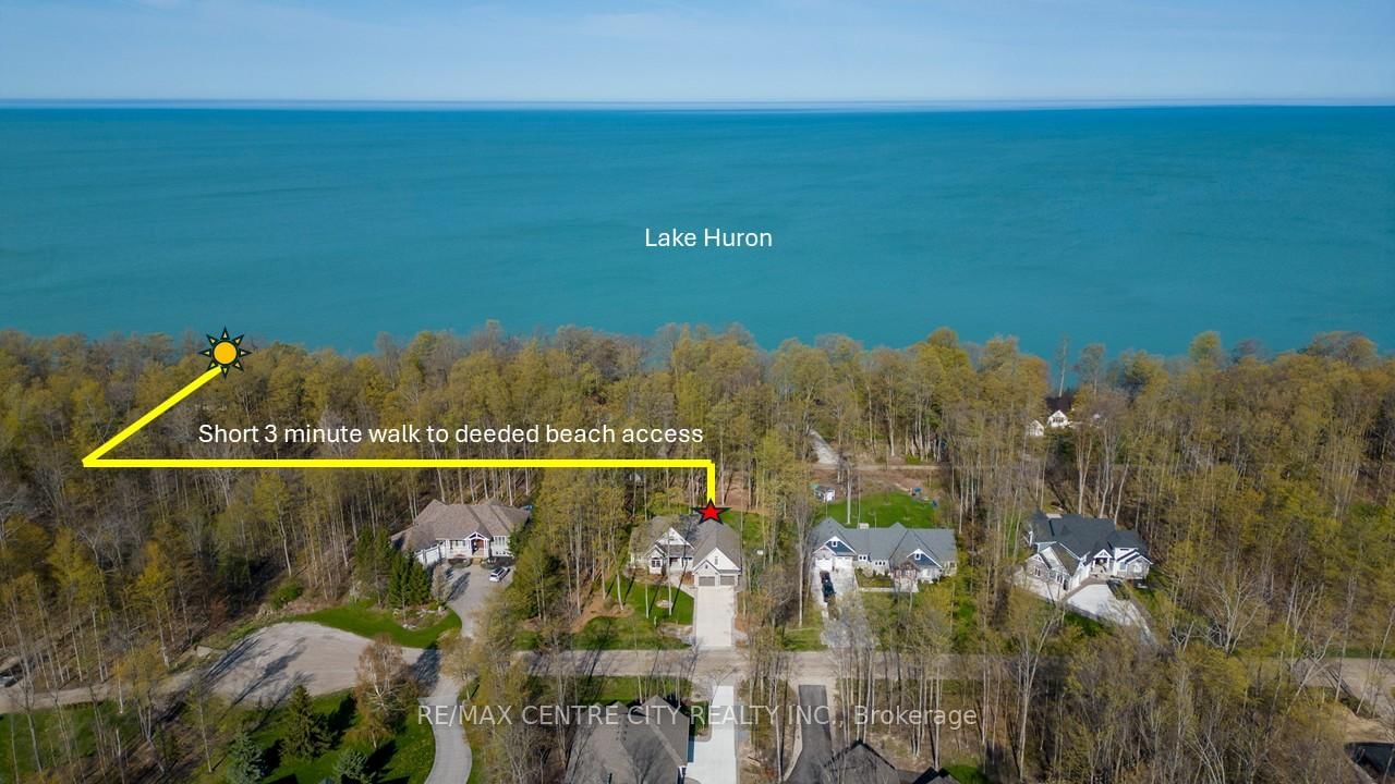 Captivating Beach Home!75335 Maxobel Rd is sure to impress with its striking design, quality construction & detail second to none set amongst a mature . The Bungaloft on 75335 Maxobel Road has 6 bedrooms, 3 bathrooms, and is located on a 224.78 x 124.88 ft loton .50-1.99 acres in the community of Bayfield .64 acre backdrop of tall trees,lush landscaping while only steps to the sandy shores of Lake Huron! This property is perfect for entertaining guests and family with 6 bedrooms & 2.5 bathrooms & a large concrete driveway for guest vehicles.A spacious entry invites you to an open concept living space with 16 ft ceilings in the light-filled great room featuring a wall of windows & stone fireplace.Bright elegant kitchen with quartz countertops,stainless steel appliances,gas stove & spacious eating area surrounded by large windows.Main floor master bedroom retreat features a luxurious ensuite washroom with heated floors,large soaker tub & a double-headed glass shower.Also on the main floor,a guest bedroom,2 pc bathroom & laundry.Two access points from inside the home to the double car garage with upgrade hydro for electric vehicles/heavy equipment,handy separate storage room with garage door side yard for tools/lawnmower.Upstairs offers two over-sized bedrooms with plenty of natural light & space to utilize.Open concept fully finished lower level has 9ft ceilings,heated floors,large living room,wet bar with bar fridge,two spacious bedrooms & a luxurious 4pc washroom with double vanity & glass shower.Plenty of storage in this home.This home is equipped with a generator,a security system,is on municipal services for water and sewers is fueled by natural gas.It also has 8 zones wired for sound system inside & outside.Relax on the expansive composite rear deck while taking in the tranquil setting surrounded by the tall majestic trees.The rear yard also features an outdoor shower for washing off from the sandy beach visits (deeded access mere steps away),a custom tree house with zip line. Located minutes south of the beautiful town & marina of Bayfield, ON.Don't miss your opportunity to own this stunning piece of real estate!