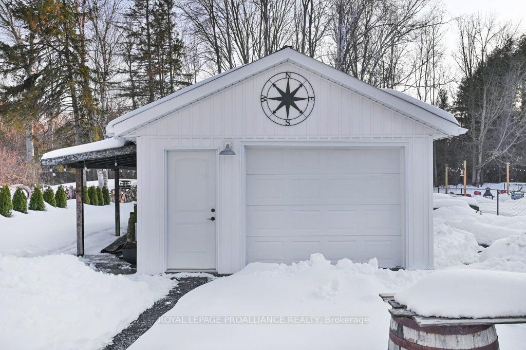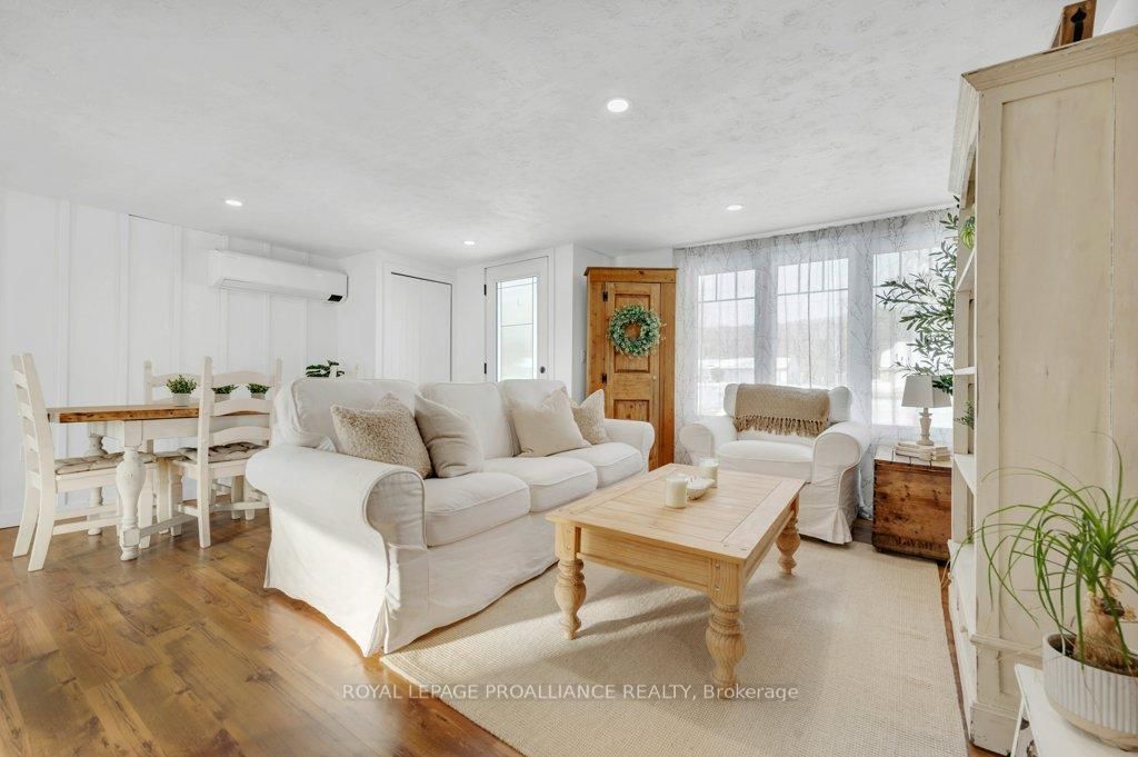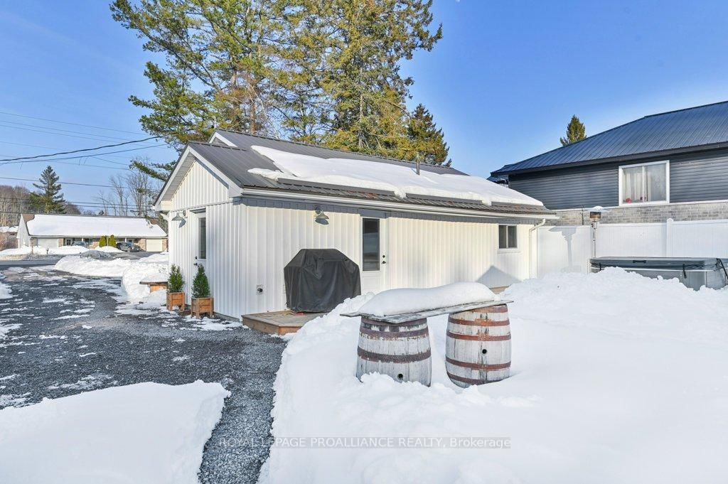 Super trendy, super cute, and beautifully updated-this turn-key bungalow sits in the heart of Prince Edward County, celebrated for its culinary excellence, award-winning wineries, beaches, and relaxed County lifestyle. The Bungalow on 21569 Loyalist Pkwy has 2 bedrooms, 1 bathrooms, and is located on a 280.33 x 52.26 ft loton < .50 acres in the community of Ameliasburg Ward . Ideally located just 15 minutes to Highway 401 and 10 minutes to CFB Trenton, it offers peaceful County living with outstanding convenience for commuters and military families. A heated 1.5 car garage with workshop pairs perfectly with a stunning, fully insulated bunky with hydro, ideal for guests, studio use, or year-round creative space. Exterior upgrades include a metal roof, new maintenance-free vertical vinyl siding with artificial stone veneer, and brand-new windows and doors. Inside nearly all major components have been updated within the last two years, including HVAC, bathroom, plumbing, spray-foam insulation in the crawl space, appliances, and a newer sump pump. The interior offers 2 bedrooms, a 3-piece bath, main-floor laundry, municipal water, and a new septic system. Stylish features-rustic cabinetry, tough sink, electric fireplace, barn doors, laminate flooring a a ductless split/heat pump-create a warm and efficient living space. Outside, the property includes a fantastic patio, fire pit, garden shed, deck, and a designated area for a hot tub (tub negotiable). A private, treed setting completes the relaxed County vibe. Within approximately 5 km, enjoy some of PEC's best attractions, including Sandbanks Provincial Park (with Outlet Beach, Dunes Beach and Lake-shore Beach) and North Beach Provincial Park, along with local restaurants, wineries, cafes, markets, and essentials. An exceptional opportunity for first-time buyers, downsizers, or those seeking a fully renovated and affordable home or investment property in PEC. Flexible possession available.