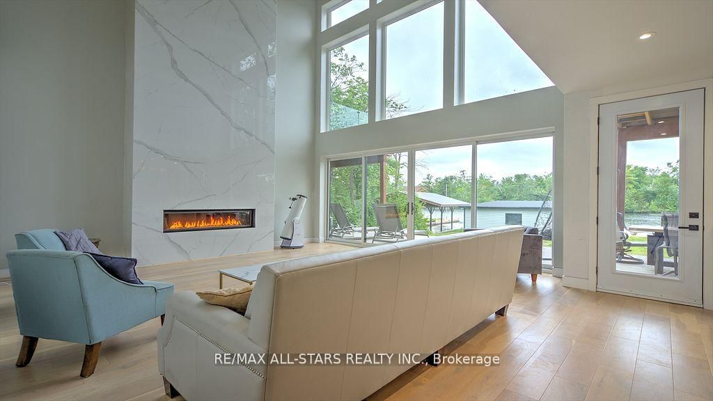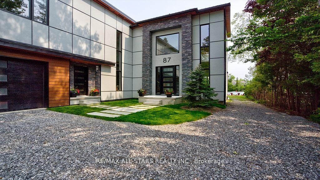 Welcome To Your Dream Waterfront Home! Lifestyle like no other! Modern custom home spanning over 3700 square feet offering 5 spacious bedrooms, 2 and 1/2 bathrooms in one of the most coveted neighborhoods in Kawartha Lakes! Water views from all the principal rooms into the house. The 2-Storey on 87 Riverside Drive has 5 bedrooms, 3 bathrooms, and is located on a 253 x 74 ft loton < .50 acres in the community of Bobcaygeon . All day sun, crystal clear water at the dock and double slip boathouse will entice you to enjoy swimming, boating and paddle boarding every day of the summer! Thoughtful design, high end finishes and seamless indoor-outdoor living on clear waters of Pigeon Lake will capture your heart. Soaring 24 foot ceiling, gorgeous fireplace, true chef's kitchen with high end appliances (sub-zero and Thermador) heated floor on main level composite decks, huge family room with access to covered , roof top deck, 3 car garage, spacious and luxurious bathrooms, 3 large upper decks and the list goes on. Enjoy all 4 seasons in this gorgeous custom home, short walk from all the amenities in beautiful, historic Bobcaygeon: restaurants, shopping, bars, farmer's market, boutiques. Only 90 minutes away from GTA, but worlds away! Schedule your private tour of this gem.