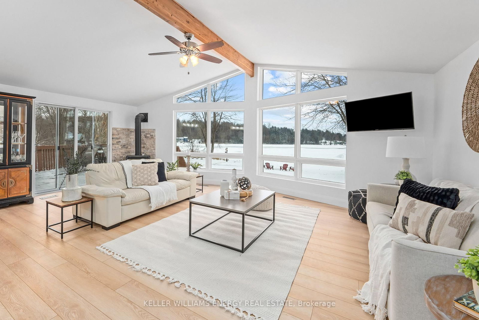 Location, location, location-this bright and spacious newly renovated waterfront property is set just outside the town of Campbellford. The Bungalow-Raised on 269 Hillside Drive has 3 bedrooms, 2 bathrooms, and is located on a 362.67 x 99.97 ft lot in the community of Rural Trent Hills . Located along the Trent River this 4-bdrm, 2-bath home offers direct waterfront access, scenic views, and a relaxed lifestyle on one of Ontario's most iconic boating routes. The main floor has been renovated, creating a bright, open-concept living space designed to showcase the water front views. The kitchen is a true focal point, featuring quartz countertops, a spacious island, 2 built-in sinks, and ample storage. Expansive windows flood the home with natural light, with most main-floor windows replaced, including 2 new patio doors that lead to the deck, ideal for hosting and outdoor dining. A cozy gas stove anchors the living area, adding warmth and ambiance yr-round. A former 3-season room has been converted into a comfortable 4-season space, offering a versatile extension of the main living area. Perfect as a dining area, reading lounge, or work from home setup, this space allows you to enjoy the views in every season. The primary bdrm serves as a private retreat with its own modern ensuite.2 additional spacious bdrms on the main level are complemented by a newly renovated 4-pc bath, providing comfort and functionality for family and guests. The fully finished lower level significantly expands the living space, featuring a 4th bdrm along with 2 large, versatile living areas, ideal for a family room, games area, home gym, guest suite, or in-law potential. Outside, private water frontage invite skayaking, swimming, boating, or simply enjoying the passing boats. An oversized dbl-car garage, additional storage shed, and newly paved driveway provide parking for 10+ vehicles and space for waterfront gear. Located just minutes from Campbellford's shops, restaurants, local favourites such as Dooher's Bakery, and Ferris Provincial Park, this property offers a rare opportunity to enjoy waterfront living with smalltownconvenience