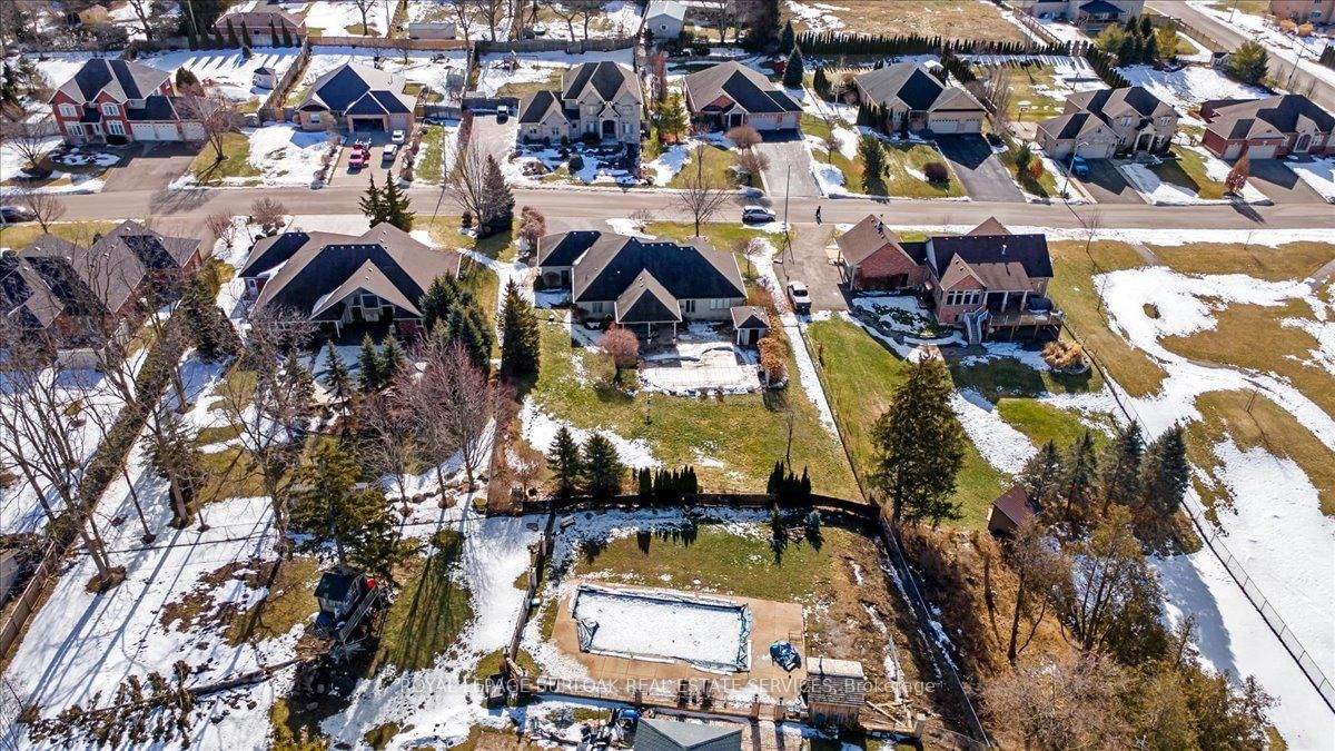 Exclusive Foxhill Estates. The Bungalow on 21 Farrow Road has 3 bedrooms, 4 bathrooms, and is located on a 198.49 x 111.55 ft loton < .50 acres in the community of . This exceptional bungalow offering almost 4,000 sq ft of beautifully finished living space on a private 1/2 acre lot surrounded by mature landscaping. Thoughtfully designed for both everyday comfort and elegant entertaining, this home offers 3+2 bedrooms and refined finishes throughout. The main level features hand-scraped oak flooring, oversized windows, pot lighting, espresso cherrywood cabinetry, and granite and marble surfaces. A formal dining room and private office provide flexible living spaces, while the grand family room showcases a striking stone fireplace. The kitchen includes custom cabinetry, granite counters, beverage fridge, breakfast bar, and a bright dinette with walkout to the backyard. The primary suite offers a walk-in closet and spa-like ensuite. Two additional bedrooms, a full bath, and convenient laundry/mudroom complete the main level. The fully finished lower level expands the living space with a large recreation and theatre area with gas fireplace, wet bar, games area, two additional bedrooms, 3-piece bath, workshop, and abundant storage. Outdoors, enjoy a private resort-style setting with heated saltwater pool, cabana, stamped concrete patio, covered seating area, and fully fenced yard. Triple car garage. Quiet street location. A rare opportunity in one of the area's most desirable estate communities.