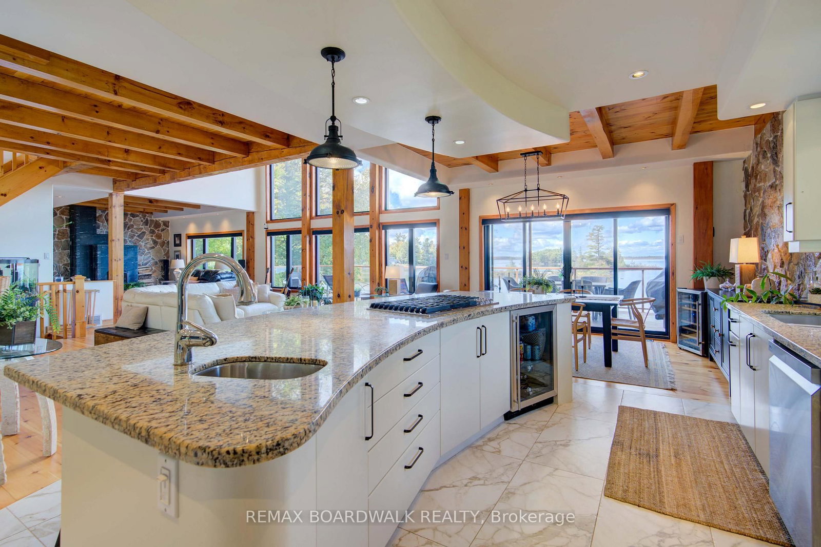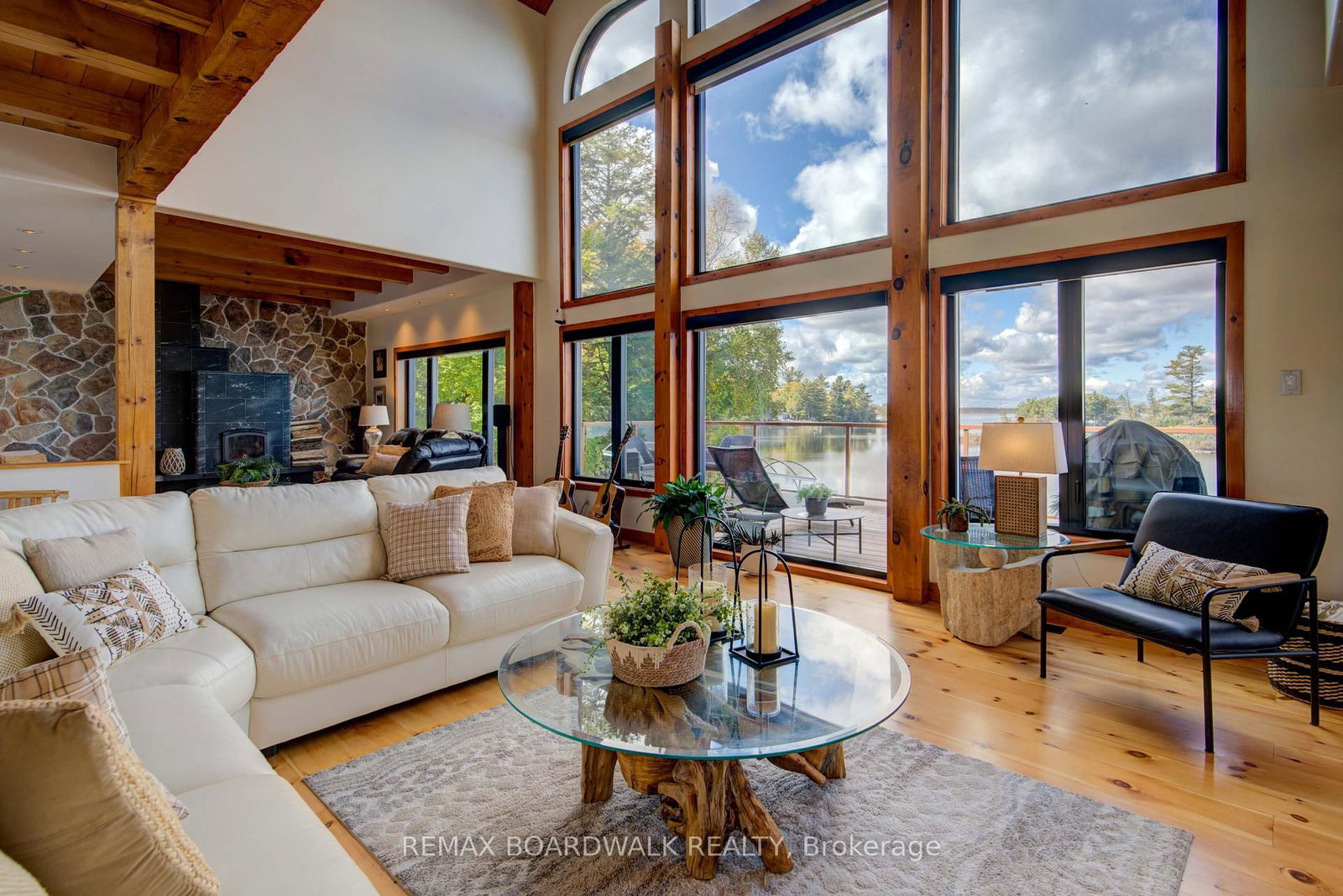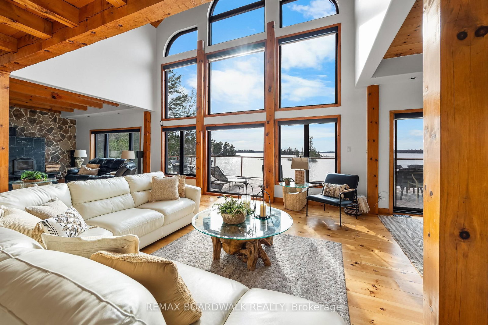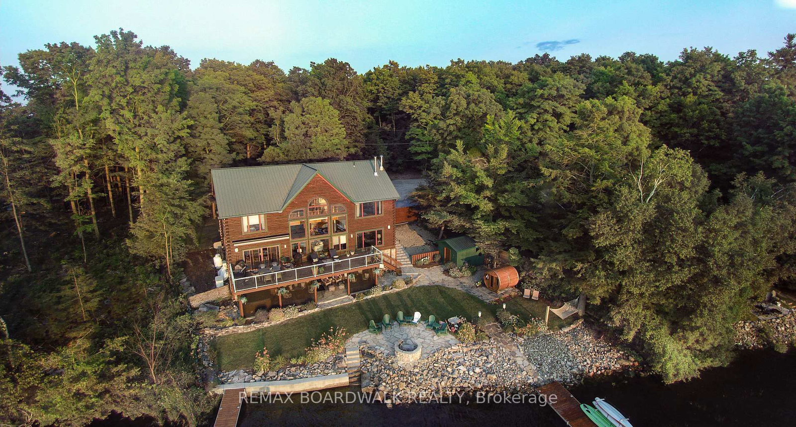 WELCOME TO LAKE LIVING, boasting arguably the most breathtaking westerly views and pristine shoreline the lake has to offer. The 2-Storey on 122 Red Rock Bay Road has 4 bedrooms, 4 bathrooms, and is located on a 107.38 x 103.73 ft lot in the community of Drummond N Elmsley (Drummond) Twp . Outside, you'll find over 100 feet of private waterfront, featuring your own sandy beach, stunning shoreline, two docks, a floating raft, a sauna, hot tub, and a custom bonfire all designed to captivate lake vistas. As you step inside, the home exudes luxury and pride of ownership. Souring ceilings, expansive floor-to-ceiling windows throughout provide panoramic views of the lake from nearly every room. The custom chef's kitchen is a dream, featuring top-of-the-line appliances, a wine fridge, ample cabinetry, and generous counter space, all centered around a spacious island ideal for family gatherings and entertaining. The home offers four bedrooms on the upper level, including a lavish primary suite complete with a stunning ensuite. With four bathrooms in total, there's plenty of space for comfort and privacy. The fully finished lower level is a true highlight, offering walkout access to a screened-in patio that lets you soak in the peaceful lake views. This turnkey home is ready for you to enjoy the unparalleled lifestyle that waterfront living offers. Whether you're cooling off in the water, boating, fishing, or playing ice hockey in the winter, this property is a true gem, an exceptional opportunity not to be missed. $50/month in road fees.
