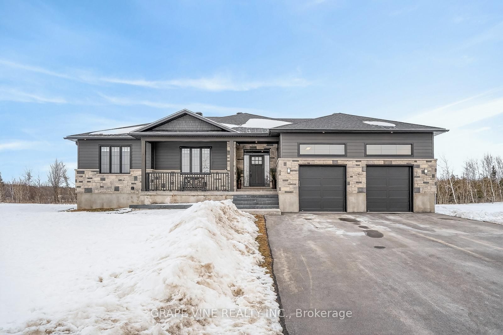 Welcome to 106 Maplestone, nestled in the highly sought-after Maplestone Estates. The Bungalow on 106 Maplestone Drive has 3 bedrooms, 3 bathrooms, and is located on a 257.55 x 213.87 ft lot in the community of North Grenville Twp (Kemptville East) . This nearly new, custom-built 5-bedroom, 3-bathroom bungalow truly checks all the boxes. Set on 1.09 acres of pure serenity, backing onto a forest. This property offers the perfect blend of privacy and community feel. Step inside to a bright, open-concept main level with beautiful cathedral ceilings designed for both everyday living and effortless entertaining. The modern kitchen features an oversized island that's perfect for gathering with friends and family, while expansive windows throughout the home flood the space with beautiful natural light. The spacious primary suite offers a luxurious ensuite - your own private retreat for relaxation and self-care. The lower level boast large windows and high ceilings, 2 bright bedrooms and a perfectly designed bathroom offering a water room and double vanity. Built with quality in mind and no corners cut, this home is packed with thoughtful upgrades, including radiant-ready floors in the basement and garage, spray-foam insulation throughout the entire home, and a comprehensive water treatment system complete with a reverse osmosis drinking unit. Custom accent walls with thoughtful design added throughout. The fully finished, oversized two-car garage is insulated and ready for year-round use. If you're looking for modern comfort, privacy, and custom finishes - 106 Maplestone delivers.
