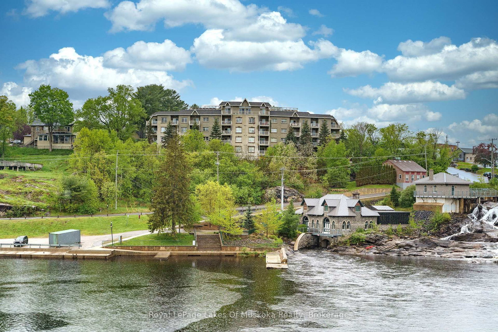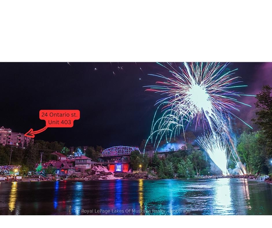 Welcome to this beautiful waterfront-view condo in the heart of Bracebridge! Just steps from the vibrant downtown core, you'll enjoy easy access to charming shops, local restaurants, lively community events, and all the amenities you need. The Apartment on 403-24 Ontario Street has 2 bedrooms, 2 bathrooms, and is located in the community of Macaulay . This spacious 2-bedroom plus den, 2-bathroom condo offers stunning water views from every window. Relax on your private balcony while listening to the falls or enjoy spectacular holiday fireworks from the comfort of home.The thoughtfully designed open-concept layout is both functional and inviting, featuring a large kitchen with ample storage, two generous bedrooms, a versatile den with built-in cabinetry, and two full bathrooms, including a spa-like 4-piece ensuite. Located on the fourth floor, the unit offers picturesque views of Bracebridge Bay, the docks, the park, and surrounding natural beauty.The well-maintained building is attractive and ideally situated within walking distance of downtown, scenic parks, and a lovely beach-perfect for enjoying warm summer days. Underground parking adds convenience and peace of mind, keeping your vehicle secure and easily accessible.Don't miss the opportunity to experience carefree condo living in one of Muskoka's most desirable communities. Book your private showing today and discover the lifestyle you've been waiting for.