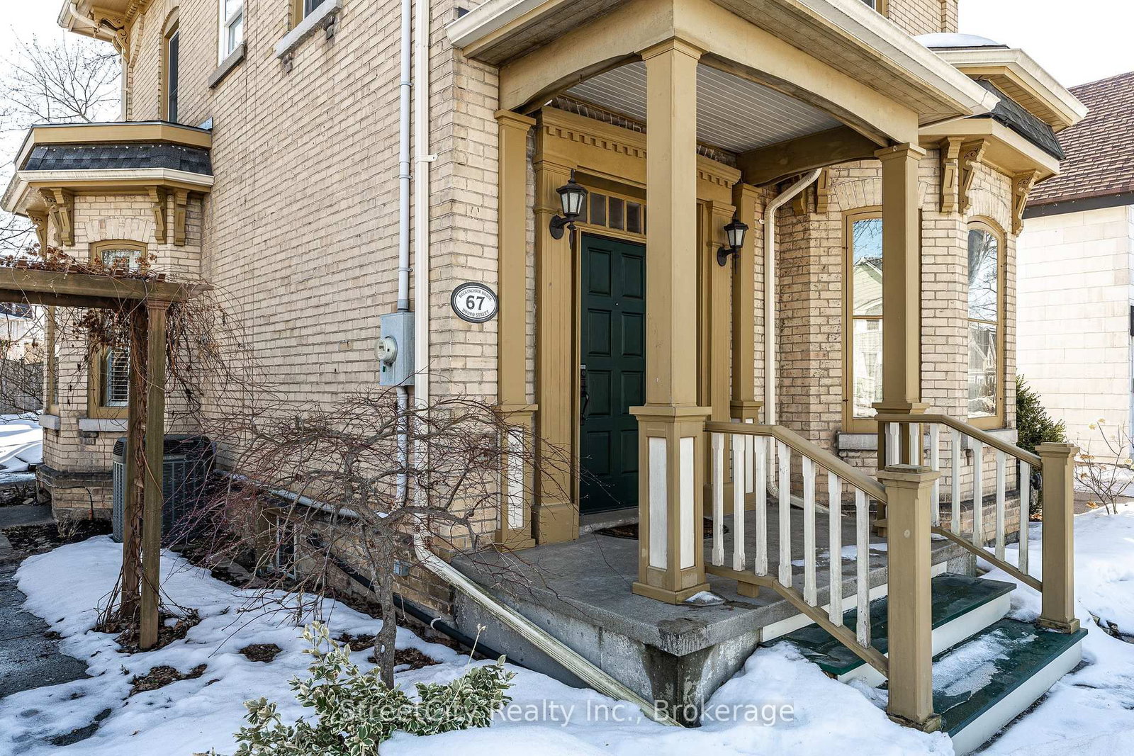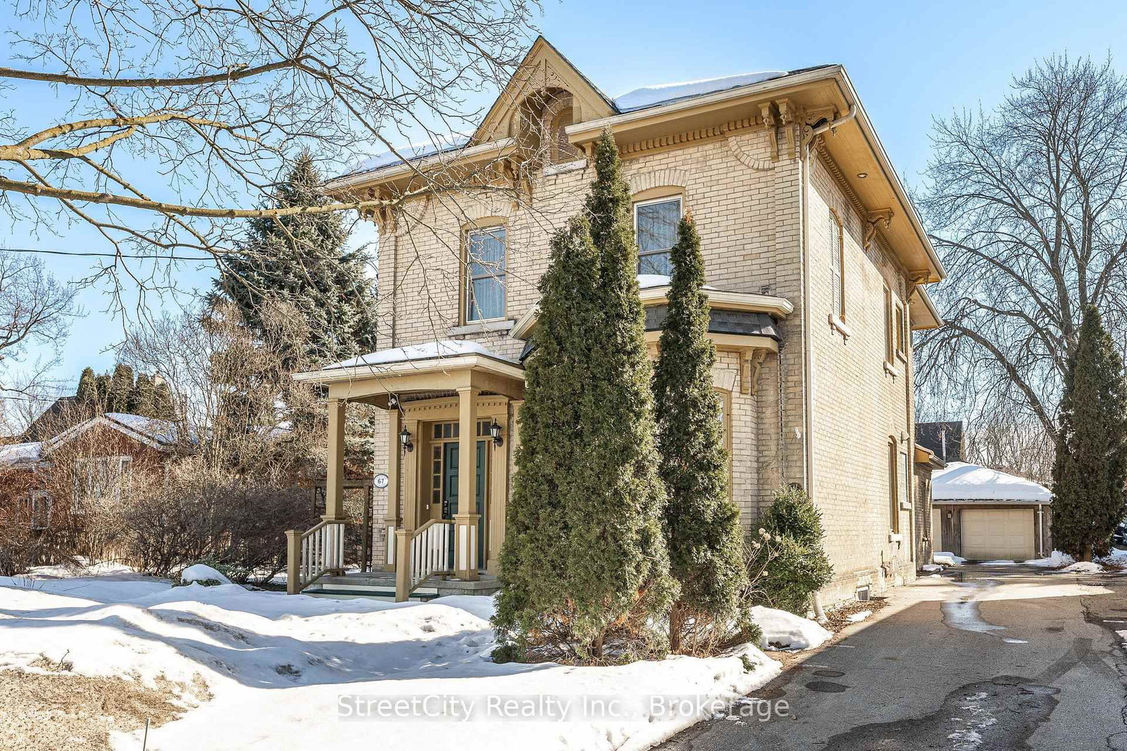 Six Seven Douro! Check it out, a gorgeous 2 storey yellow brick home located steps from downtown Stratford. The 2-Storey on 67 Douro Street has 4 bedrooms, 4 bathrooms, and is located on a 115.85 x 66.15 ft lot in the community of Stratford . Formerly operating as a B&B this home is flexible for its next use. B&B? Sure. Short Term Accommodation? Sure. Family home? Sure. There is room for the kids & bathrooms for all! Superb curb appeal on this 66' frontage featuring a spacious side & rear yard w/ landscaping & raised gardens. The exterior is what everybody is looking for, yellow brick with period detailing and trimwork. A private drive leading to a detached garage. The interior has all the period charm you are looking for quartersawn oak hardwood flooring, original trims & millwork, heritage ceiling medallion & more. The spacious main level features a gracious formal living room & dining room, a 4th bedroom that could easily function as a home office or media room, a 3pc bath & a gorgeous updated granite eat-in kitchen w/ peninsula with loads of counter & cabinet space. To the rear of the kitchen is a flex space that could function as a family room or home office. The upper level holds 2 suites w/ private ensuite 3 pc washrooms, and a 3rd bedroom adjacent to the 4pc family bath. Nicely updated mechanicals. Come and experience the century home charm centrally located near the heart of Stratford. Call for more information or to schedule a private showing.