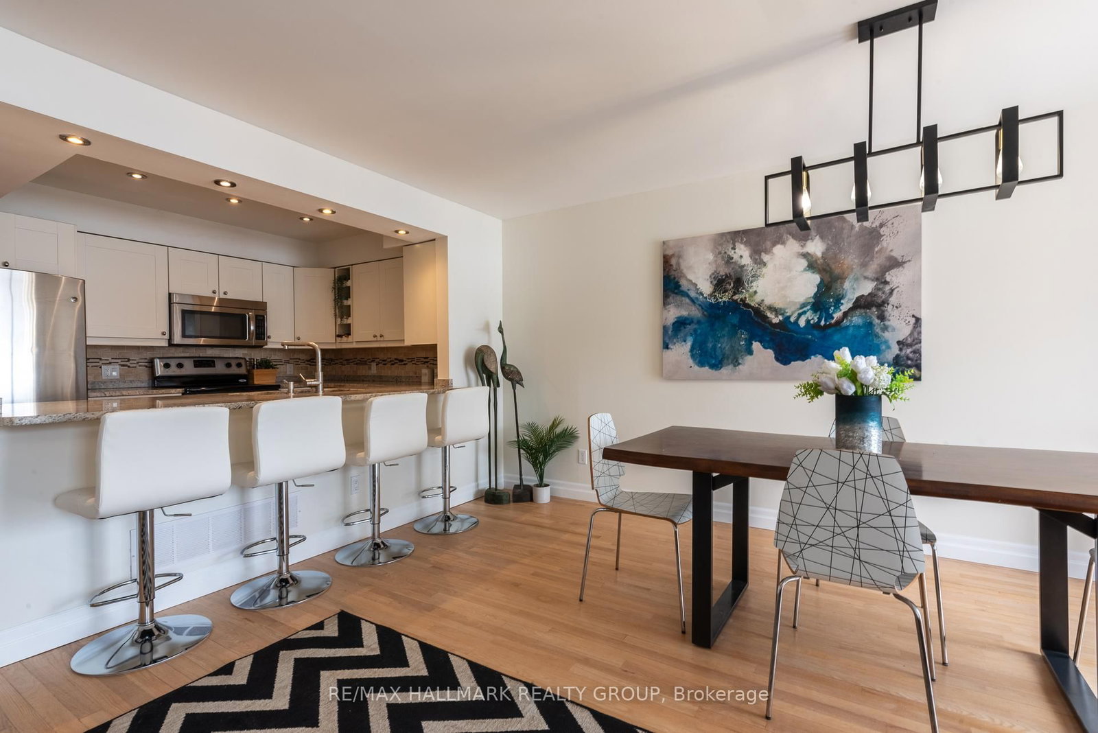 In case location is not enough, even when it's unbeatable, this freehold townhouse in Riverview Park near Trainyards and the Ottawa Hospital General Campus has been updated throughout with a contemporary eye tastefully at work. The 2-Storey on 4-201 Station Boulevard has 3 bedrooms, 4 bathrooms, and is located on a 91.6 x 18.5 ft lot in the community of Riverview Park . The list is long so sit back and enjoy reading, or better yet, ask your agent to book a showing pronto. Refinished oak floors on the main level, new tile in the foyer, luxury vinyl plank throughout the basement. All four bathrooms renovated (three-piece ensuite, main bath, powder room, three-piece basement bathroom). New casing and baseboards throughout, the entire house painted and the ultimate modernization with popcorn ceiling removed. Even the closets in this home have been brought up to standard with built-in organization systems and new closet doors in all bedrooms. The North/South orientation of the property keeps it shining with natural light. After sunset, updated light fixtures throughout the home create stunning appeal. The recently interlocked driveway parks two, in addition to your private garage space. Backing onto park space, relax in your private back yard with plenty of convenient room to set up on the recently built three-tier deck. Let the kids (when they're old enough of course) escape into the park through the gate in your rear fence. Move in and enjoy.