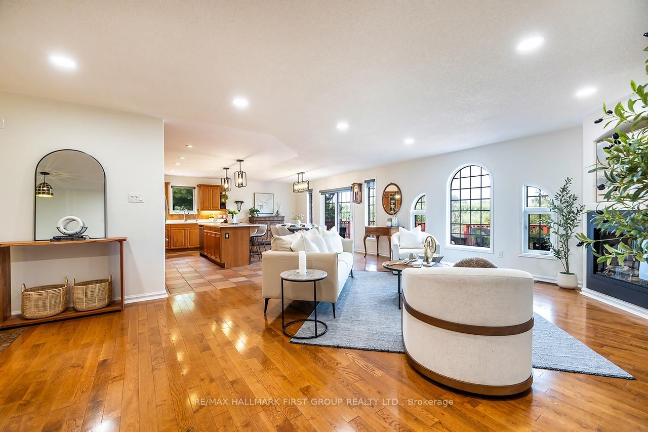 An exquisite custom-built ranch-style bungalow offering around 3,673 sq. The Bungalow on 2523 Asphodel 12th Line has 3 bedrooms, 4 bathrooms, and is located on a 150.02 x 209.26 ft lot in the community of Rural Asphodel-Norwood . ft. of finished living space, (1,883 approx above ground and 1,790 sq feet in the basement ) thoughtfully designed for comfort, functionality, and elegant country living. This stunning home features 3+2 spacious bedrooms and 4 bathrooms, ideal for families or those seeking the perfect blend of luxury and tranquility. Step inside to discover a bright, open-concept layout featuring granite countertops, premium stainless steel appliances, custom cabinetry, and hardwood flooring throughout. The kitchen, dining, and living areas blend seamlessly, with patio doors opening to an oversized deck perfect for entertaining or enjoying peaceful country views. A cozy electric fireplace adds warmth and ambiance. The main floor includes 3 generously sized bedrooms, including a private primary suite with pocket doors, a walk-in closet with upgraded lighting, and a spa-style 3-piece ensuite. A stylish 4-piece main bath, 2-piece powder room, laundry room, and garage access complete this level. The finished lower level adds versatility with a 42 extra bedrooms, a 4-piece bath, office/storage room, and a spacious games/exercise room with newer flooring (2022).2 storage rooms, cold cellar and the mechanical room. Upgrades include a newer propane furnace (2025), Generac backup system, roof (2022), newer high-seat toilets, screen doors, pot lights, garage and exterior lighting, front pillar lamps, backup sump pump, and an automatic garage door opener. A 16x20 ft. lofted barn-style shed with cabinetry adds great storage. Located just 5 minutes to Norwood's shops, parks, schools, and 25 minutes to Peterborough.