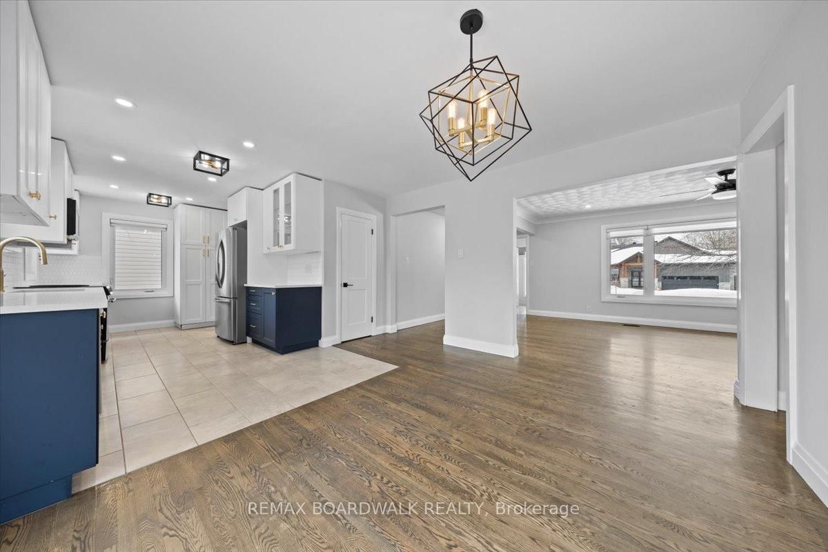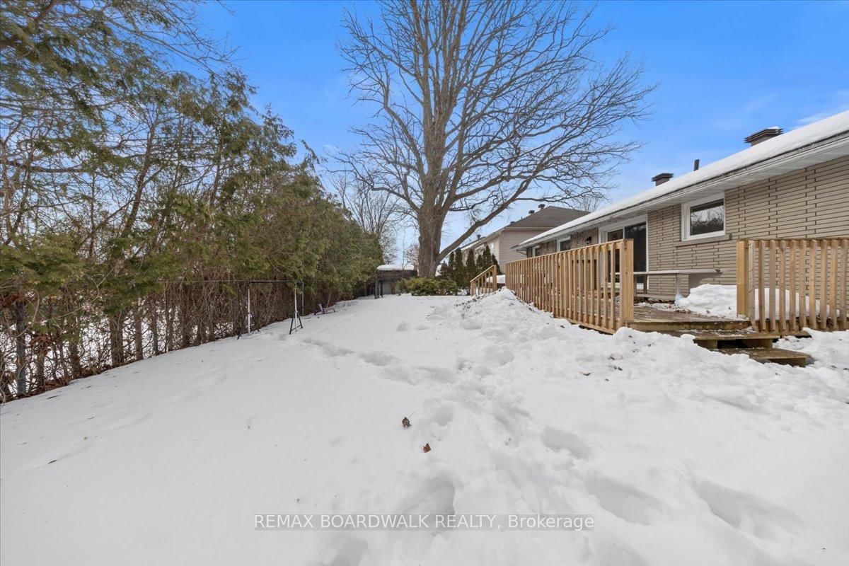 Graceful brick bungalow positioned on a wide lot w/warm southern exposure. The Bungalow on 21 Turtleback Way Drive has 2 bedrooms, 2 bathrooms, and is located on a 99.93 x 79.04 ft lot in the community of Stittsville (South) . A double wide driveway & covered front entrance lead to a welcoming foyer finished w/oversized tile & a front hall closet. The main level presents a refined architectural palette w/site finished hardwood flooring, high profile baseboards, flat ceilings & classic two panel interior doors that create a clean & timeless interior. The living room is bright & composed, framed by oversized windows, plaster crown moulding & subtle pot lighting that enhances the natural light. The dining room offers an elegant transition to the outdoors w/a chandelier, pantry storage & a patio door that opens to the rear deck & garden. The kitchen has been thoughtfully updated w/quartz countertops, recessed sink, two tone shaker cabinetry w/glass door accents, pot drawers & an oversized subway tile backsplash. Multiple windows introduce soft daylight, creating a space that is both functional & visually balanced. Two well proportioned bedrooms complete the main level. The primary bedroom enjoys southern exposure & features a double wide closet. The main bathroom presents quartz countertops, a multi drawer vanity, octagon tile flooring & a moulded tub with tiled surround. A side entrance leads to the rear hallway w/direct access to the lower level & a convenient parcel delivery cabinet. The finished lower level expands the living environment w/a spacious recreation room finished in wide plank flooring & centred around a gas fireplace. Additional spaces include a third bedroom, a den or office w/closet storage & a three piece bathroom w/stand up shower & laundry. The utility room offers generous storage, a soaker sink & two walk in closets. The garage provides inside access & natural light. The private rear yard enjoys southern exposure & is framed by mature trees, w/a deck & hot tub creating a quiet outdoor retreat. 24 Hour irrevocable on all offers.