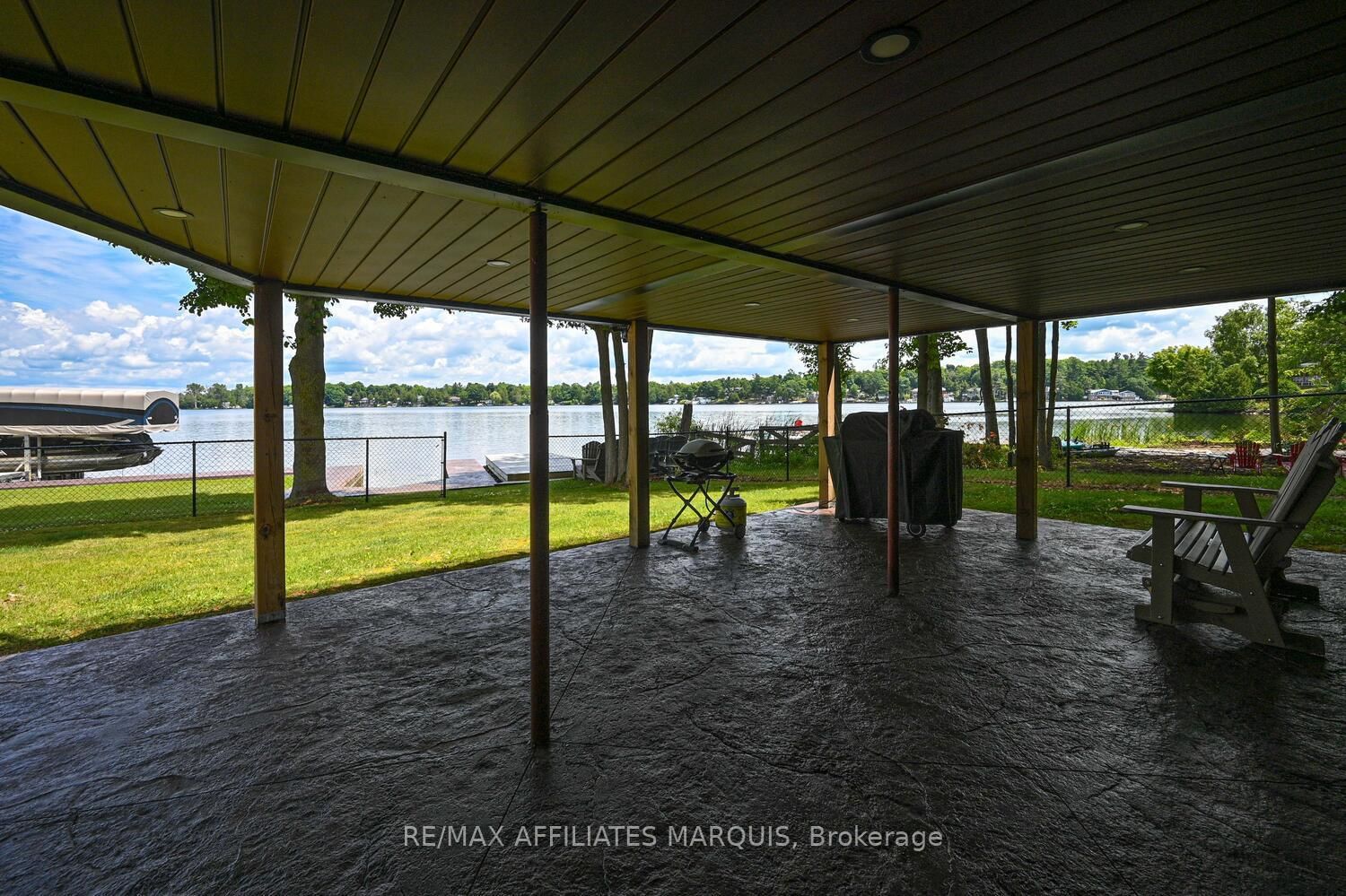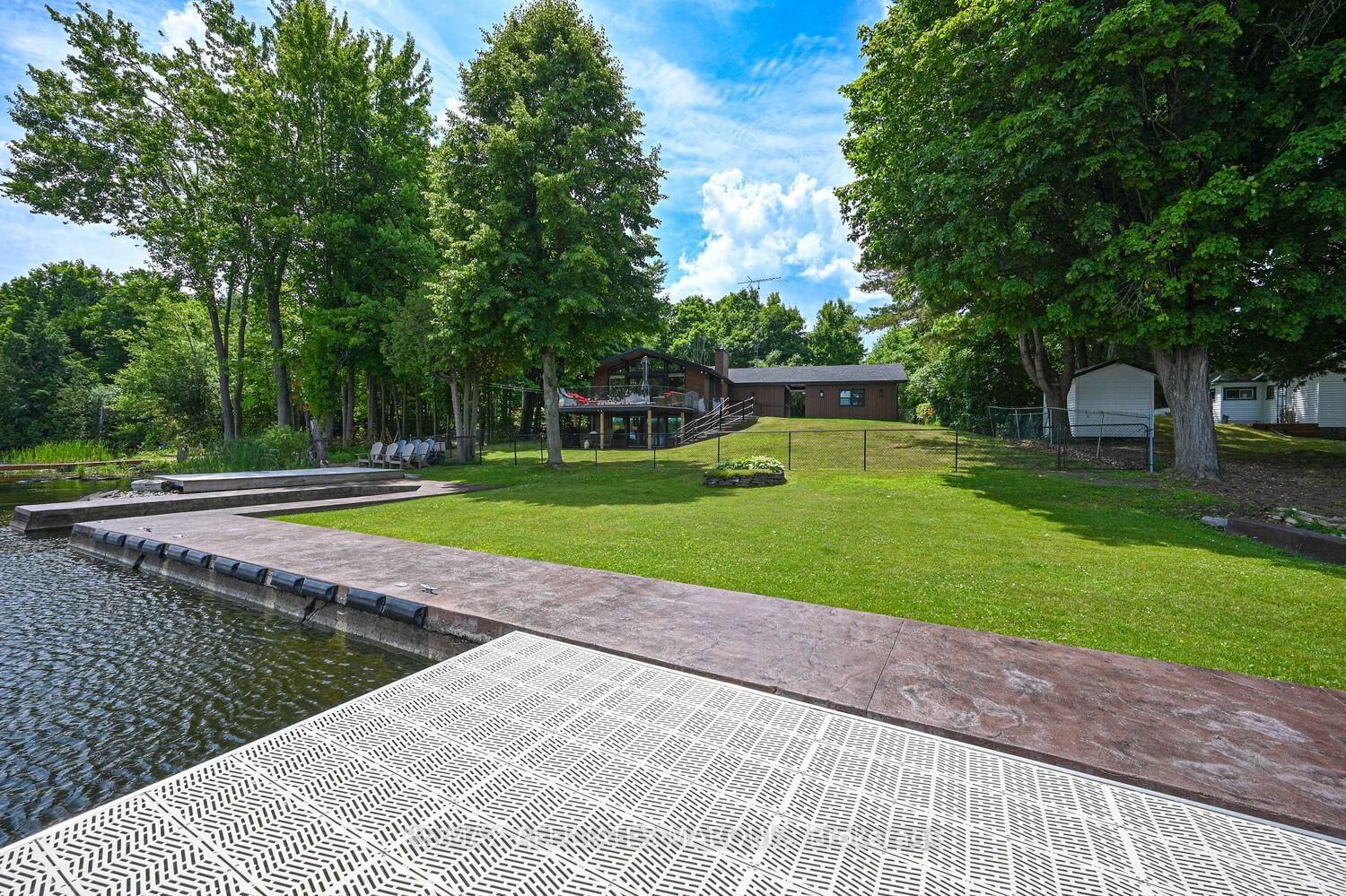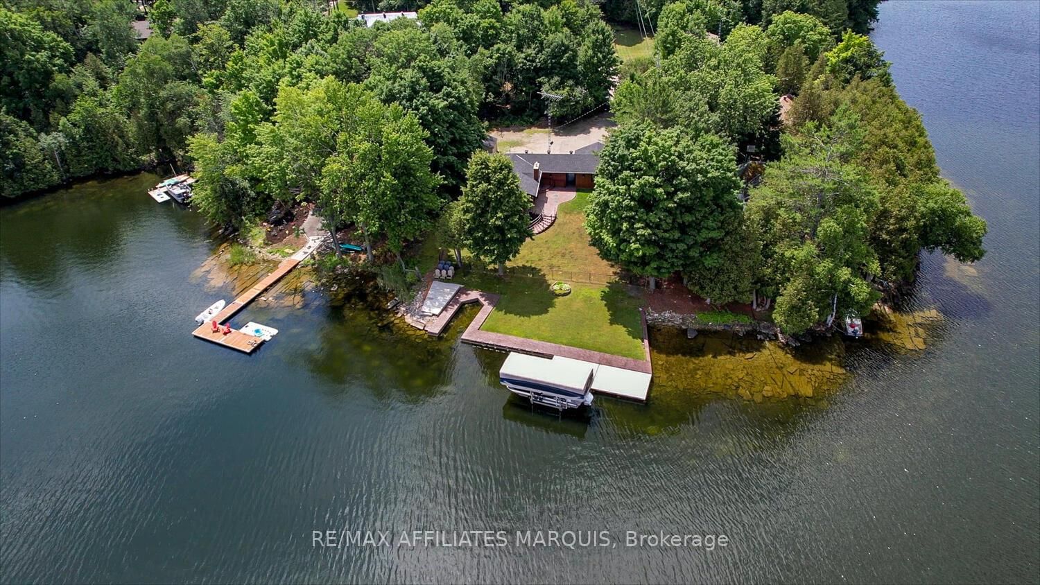 Welcome to your turnkey waterfront retreat on the breathtaking shores of Lower Rideau Lake! This impeccably maintained and thoughtfully updated home is nestled in one of Eastern Ontario's most sought-after waterfront communities, offering miles of lock-free boating on both Lower and Big Rideau Lakes. The Bungalow on 34 R7 Road has 2 bedrooms, 3 bathrooms, and is located on a 134 x 87 ft lot in the community of Rideau Lakes (South Elmsley) Twp . Cruise to picturesque destinations like Rideau Ferry and Portland to enjoy lakeside dining and vibrant waterfront culture. Set on a beautifully landscaped lot with stunning views down the lake, this property features a premium seawall with stamped concrete detailing, a new dock, boat lift, and a private boat slip ideal for the avid boater or lakefront enthusiast. Enjoy morning coffee or evening cocktails from your upper deck, finished with durable Duradek flooring and sleek InvisiRail glass railings for unobstructed lake views. Inside, the open-concept main floor has been tastefully updated with engineered hardwood flooring throughout. The modern kitchen flows seamlessly into the dining and living areas, creating a bright and airy atmosphere with panoramic lake views. Two spacious bedrooms are accompanied by two stylishly renovated full bathrooms, offering comfort and function for family and guests alike. The lower level offers even more living space with a walk-out family room complete with a cozy gas fireplace, a two-piece bath, and generous storage/utility areas. Step outside to a covered, stamped concrete patio perfect for entertaining or relaxing in the shade while taking in the peaceful lakefront setting. A detached two-car garage provides ample parking and could easily double as a home gym or workshop. The partially fenced yard offers space for kids and pets to play safely. Whether you're looking for a full-time residence or a four-season getaway, this exceptional waterfront home combines modern comfort, natural beauty, and recreational lifestyle in one unbeatable package. Don't miss your chance to own a slice of Rideau paradise!