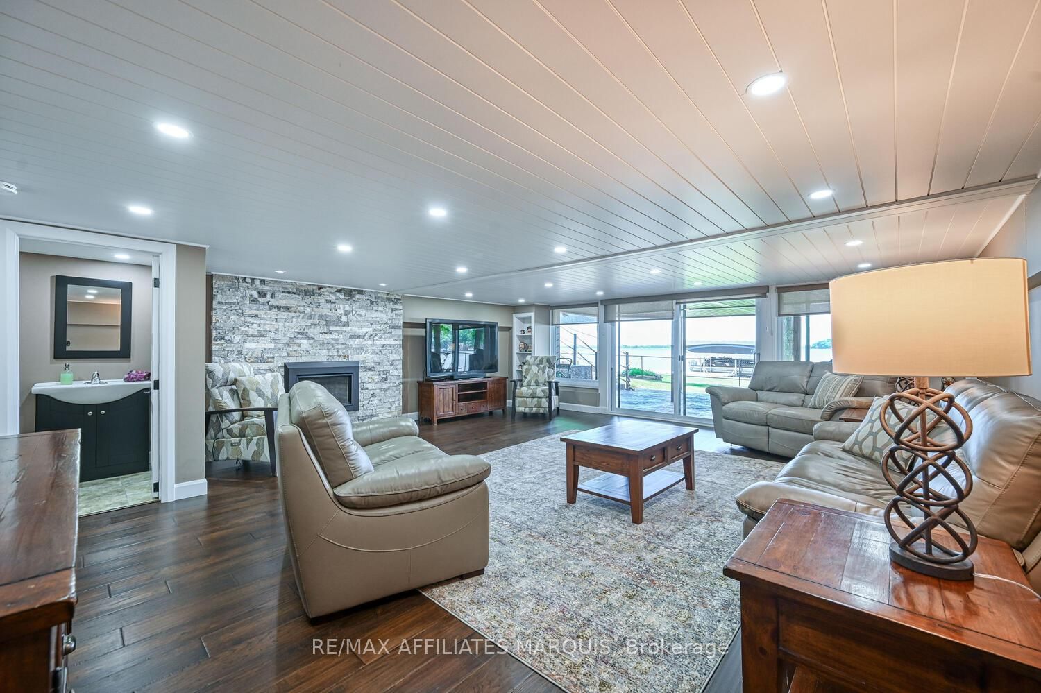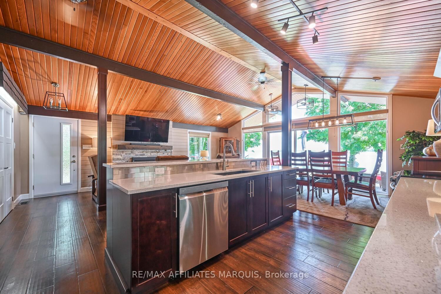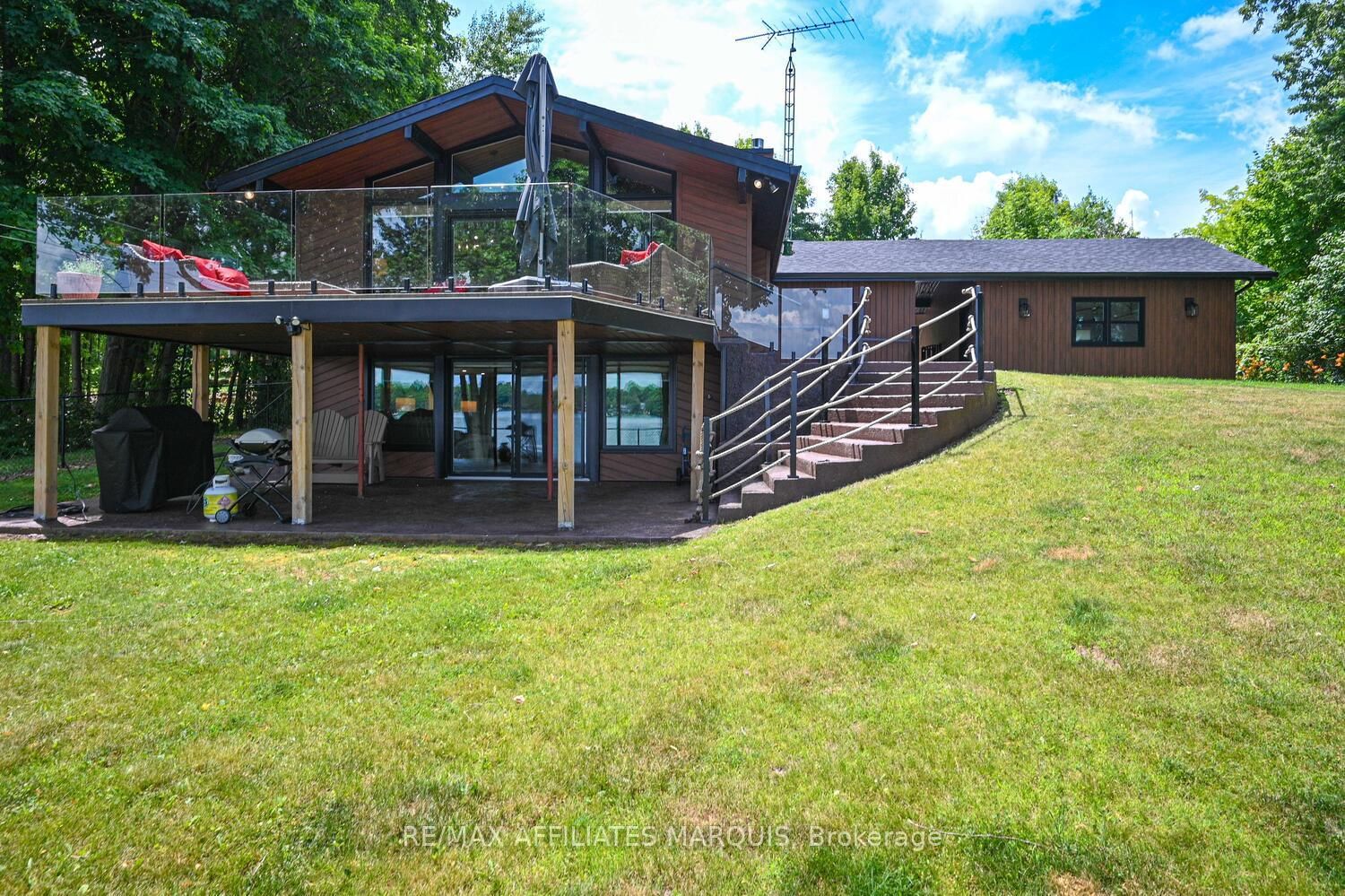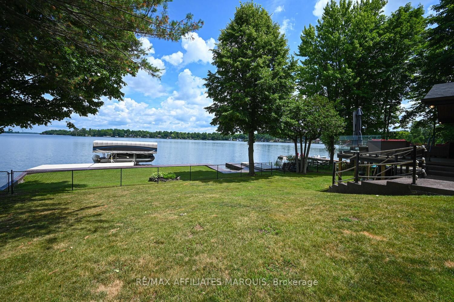 Welcome to your turnkey waterfront retreat on the breathtaking shores of Lower Rideau Lake! This impeccably maintained and thoughtfully updated home is nestled in one of Eastern Ontario's most sought-after waterfront communities, offering miles of lock-free boating on both Lower and Big Rideau Lakes. The Bungalow on 34 R7 Road has 2 bedrooms, 3 bathrooms, and is located on a 134 x 87 ft lot in the community of Rideau Lakes (South Elmsley) Twp . Cruise to picturesque destinations like Rideau Ferry and Portland to enjoy lakeside dining and vibrant waterfront culture. Set on a beautifully landscaped lot with stunning views down the lake, this property features a premium seawall with stamped concrete detailing, a new dock, boat lift, and a private boat slip ideal for the avid boater or lakefront enthusiast. Enjoy morning coffee or evening cocktails from your upper deck, finished with durable Duradek flooring and sleek InvisiRail glass railings for unobstructed lake views. Inside, the open-concept main floor has been tastefully updated with engineered hardwood flooring throughout. The modern kitchen flows seamlessly into the dining and living areas, creating a bright and airy atmosphere with panoramic lake views. Two spacious bedrooms are accompanied by two stylishly renovated full bathrooms, offering comfort and function for family and guests alike. The lower level offers even more living space with a walk-out family room complete with a cozy gas fireplace, a two-piece bath, and generous storage/utility areas. Step outside to a covered, stamped concrete patio perfect for entertaining or relaxing in the shade while taking in the peaceful lakefront setting. A detached two-car garage provides ample parking and could easily double as a home gym or workshop. The partially fenced yard offers space for kids and pets to play safely. Whether you're looking for a full-time residence or a four-season getaway, this exceptional waterfront home combines modern comfort, natural beauty, and recreational lifestyle in one unbeatable package. Don't miss your chance to own a slice of Rideau paradise!