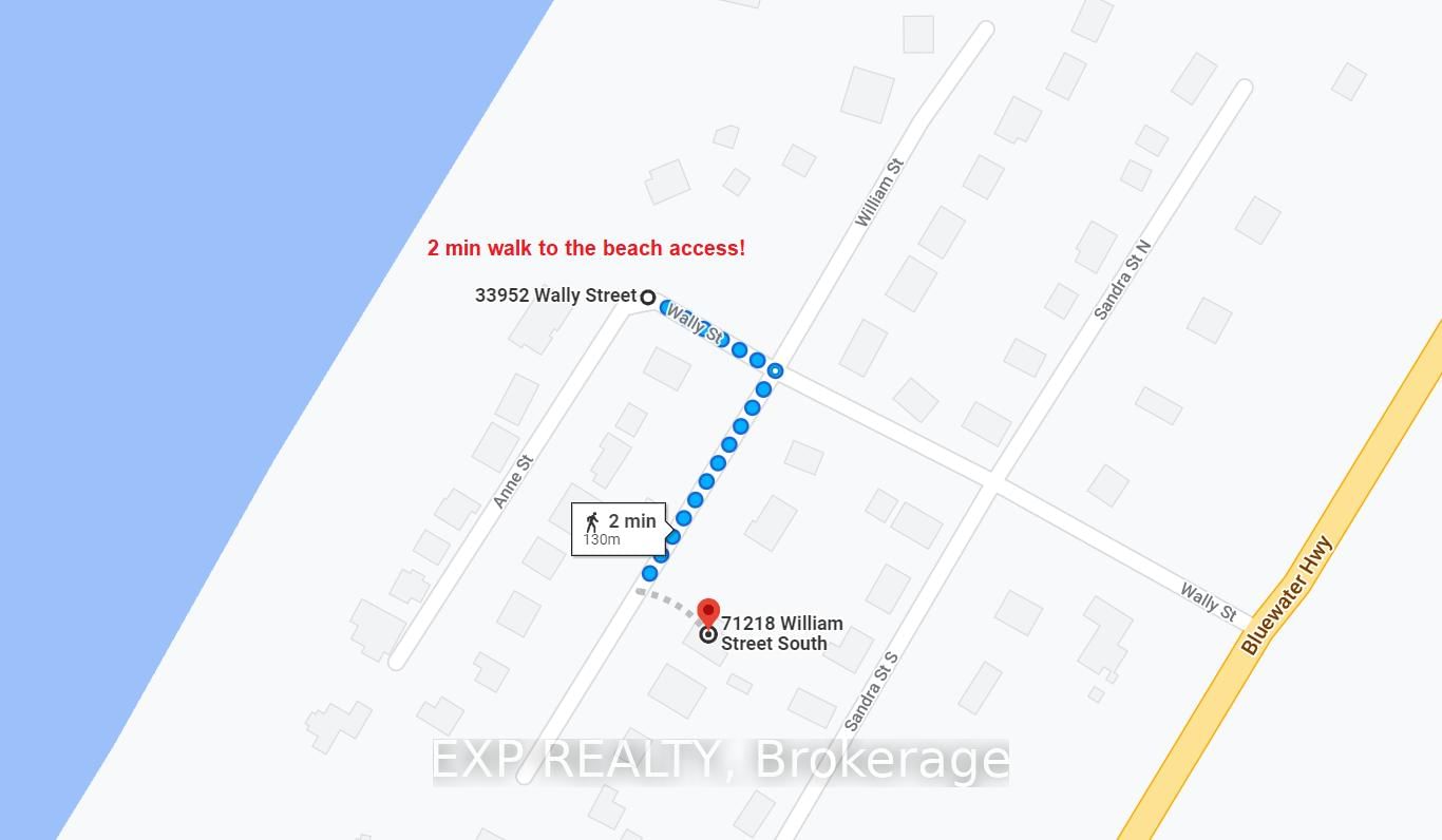 Beautifully renovated 2-bedroom + den, 1-bathroom year-round cottage bungalow in the sought-after Highlands II community, just north of Grand Bend and steps from a sandy beach, offering a relaxed beachside lifestyle. The Bungalow on 71218 William Street S has 2 bedrooms, 1 bathrooms, and is located on a 98.24 x 70.66 ft lot in the community of Hay . This modern and inviting home is only a 4-minute drive to Grand Bend's main strip and about 1 hour to downtown London. Extensive updates completed in 2020 and 2021 include insulation, wiring, plumbing, ductwork, drywall, doors, windows, flooring, kitchen, bathroom, furnace, A/C, on-demand water heater, siding, wraparound deck, and landscaping, with a new septic system and sump pump installed in 2023. The bright open-concept layout makes excellent use of the space and is ideal for year-round living, weekend getaways, or as an investment property.