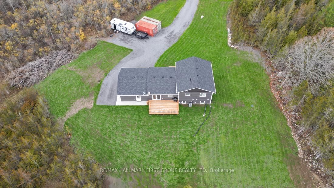 Enjoy the peace and privacy of country living in this stunning 3-bedroom, 3-bath home set on a beautiful 2. The Sidesplit 3 on 972 Enright Road has 3 bedrooms, 3 bathrooms, and is located on a 507 x 216 ft loton 2-4.99 acres in the community of Tyendinaga Township .5-ACRE treed lot with no close neighbors. This move-in-ready, 2-year-old home boasts modern finishes and an open-concept living space, featuring a spacious kitchen with a center island, eye-catching tile backsplash, and under-cabinet lighting. The open dining area leads to a large south-facing deck, perfect for soaking up the afternoon sun and entertaining guests. The attached insulated and drywalled 21x24 ft two-car garage offers inside entry. The split-level design includes an upper level with three generously sized bedrooms and a 4-piece bath, while the primary bedroom features a 3-piece ensuite with a walk-in tile shower. The finished lower level offers a cozy rec room with bright windows, a 2-piece bath, and a laundry/utility room. Built with an ICF basement foundation, propane heating, and central air, this efficient home comes with appliances and plenty of parking space. Located on a paved road with a school less than 1 km away, it's just 10 minutes to the 401 and 20 minutes to Belleville or Napanee-country living with all the conveniences nearby!