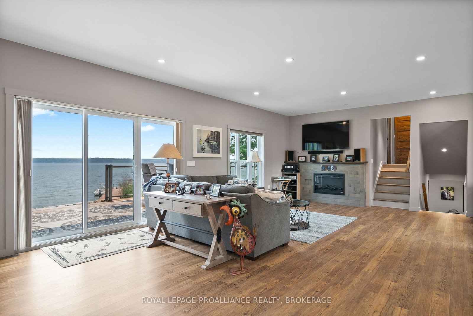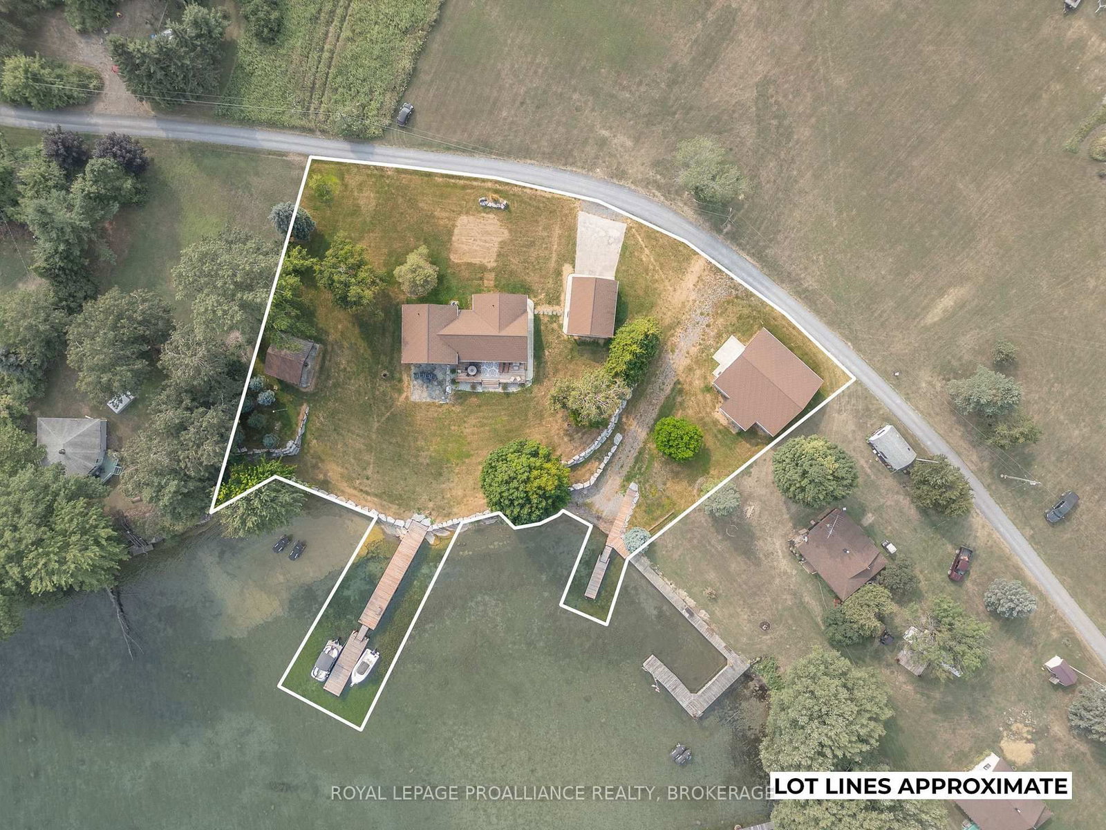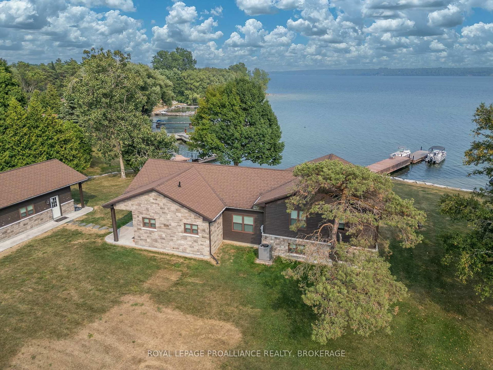 Rare opportunity to own 2 separate but adjoined waterfront properties, offering a combined 3. The Sidesplit on 199 & 213 Leone's Cove Lane has 3 bedrooms, 2 bathrooms, and is located on a 435.6 x 375.09 ft loton 2-4.99 acres in the community of The Islands .6 acres and 312 feet of clean, sheltered shoreline on the South/Eastern end of Wolfe Island in the heart of the Thousand Islands. Currently a perfect a perfect single family compound, two deeds allow the option of a guest house if desired. 199 Leone's Cove Lane is a fabulous turnkey, recently constructed, split level home. The main level's great layout offers open concept kitchen and dining. electric fireplace, and patio doors opening onto a spectacular river view deck. A walk through pantry and custom bar lead to a 3-piece bathroom. The upper level has three bedrooms and full bath, while the lower level has a rec room with walk out to patio doors, laundry/mechanical room and an additional bedroom. Outside, over 2 acres of landscaped and manicured grounds provide ample space to enjoy more than 220 feet of natural flat rock shore. The property boasts new steel and stone break walls and ample floating and fixed dockage, perfect for swimming, fishing, kayaking, and boating. A fantastic garage (22x19) with pine board and batten interior with pot lighting provides another cozy indoor space. There is a lovely outdoor pavilion built for parties and entertaining that overlooks ships navigating the St. Lawrence River to and from Lake Ontario.213 Leone's Cove Lane, the waterfront neighbouring property, has a 38x35 foot barn adorned from floor to ceiling with knotty pine, patio doors leading out to a stone landing, and quality lighting. All buildings for both properties have beautifully coordinated stone and siding. An additional 1.2 acres leads to 91 feet of clean shoreline, with your own boat launch and floating dock. Truly a once-in-a-lifetime opportunity. It's time to pack your bags, grab your friends and family and start making wonderful memories. Be one of the lucky few to know the joys of island life.