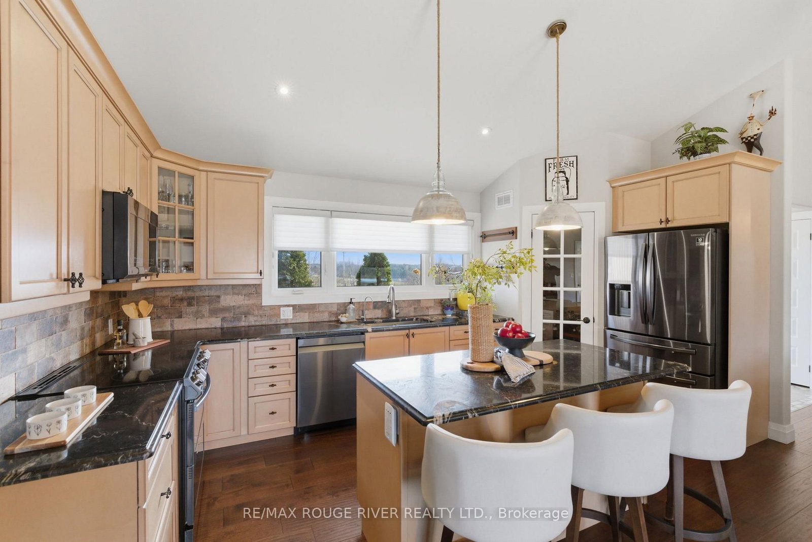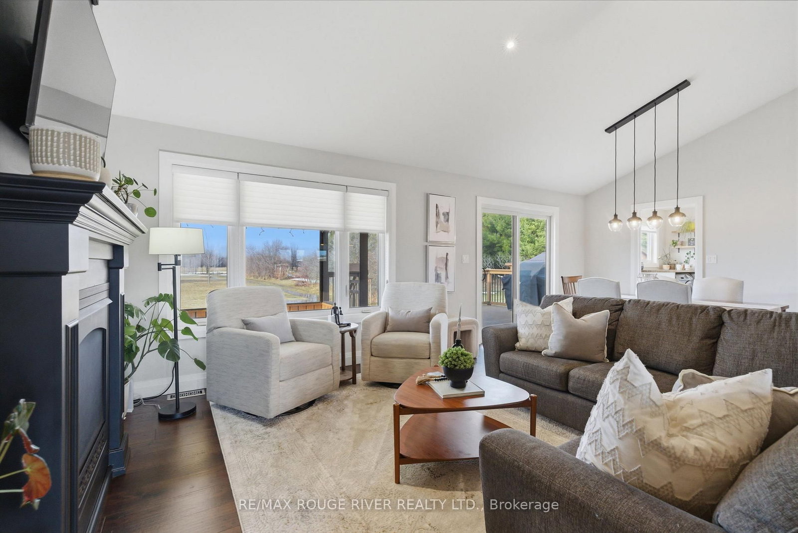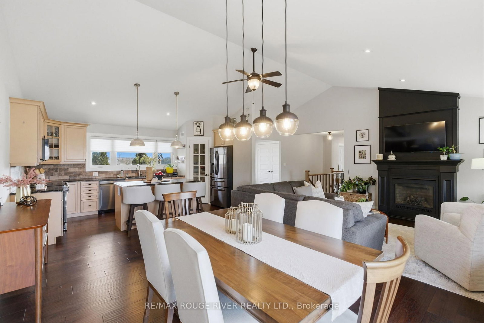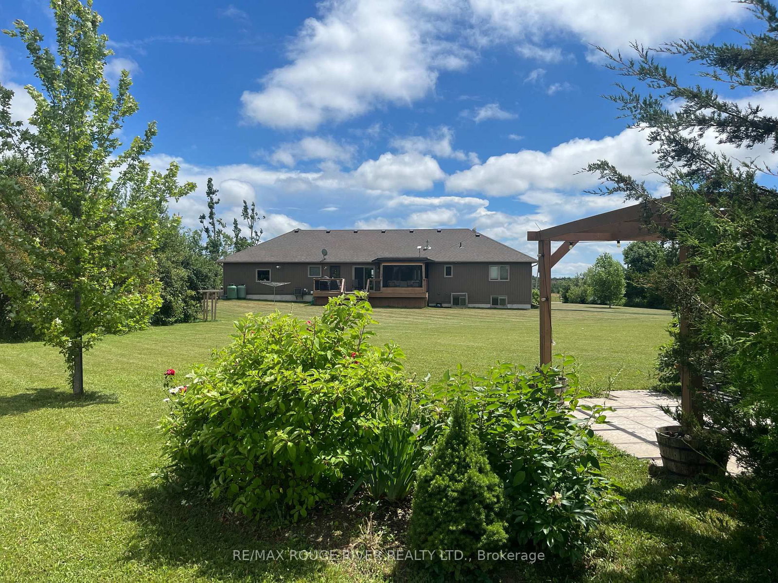 Set on 2. The Bungalow on 660 Hayes Line has 3 bedrooms, 3 bathrooms, and is located on a 450.16 x 200.1 ft loton 2-4.99 acres in the community of Cavan Twp .07 acres of scenic countryside, this custom-built 3 bedroom, 3 bathroom bungalow offers breathtaking views and a peaceful natural setting. This beautifully maintained home features new hardwood flooring on both levels and bright, open living spaces designed to capture the surrounding landscape. The main floor features a spacious family room with vaulted ceilings, pot lights, and a cozy propane fireplace. Large windows flood the space with natural light and showcase stunning views of the surrounding trees. The open-concept design flows seamlessly into the dining area, highlighted by pendant lighting and a walkout to the deck and screened-in porch-perfect for enjoying peaceful outdoor views. The large kitchen is both functional and inviting, offering granite countertops, a centre island with breakfast bar, stainless steel appliances, a stylish backsplash with lighting and a custom walk-in pantry. The primary bedroom features a walk-in closet, large windows and a 3-piece ensuite with glass shower. Two additional bedrooms are generously sized and include closet space and large windows. Newly installed carpet on the staircase leads to the fully finished lower level offering bright above-grade windows, pot lights throughout, a spacious recreation area, an additional bedroom with a barn door, a dedicated fitness room and a 4-piece bathroom with heated floors, a soaker tub and granite countertop. Direct access from the garage, a large storage area, and an updated laundry room add convenience. Step outside to enjoy the expansive deck, screened-in porch, custom patio with pergola, raised vegetable gardens, beautiful flagstone walkways and invisible fence. The property also features a large custom-built Mennonite shed with covered porch, an additional storage shed, a drilled well, filtered dual chamber septic system, and a 200 amp electrical panel. Completing the home is an impressive three-car propane-heated garage with workshop space and a mounted TV included.