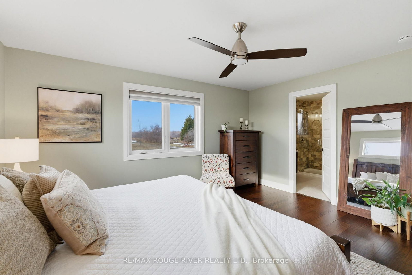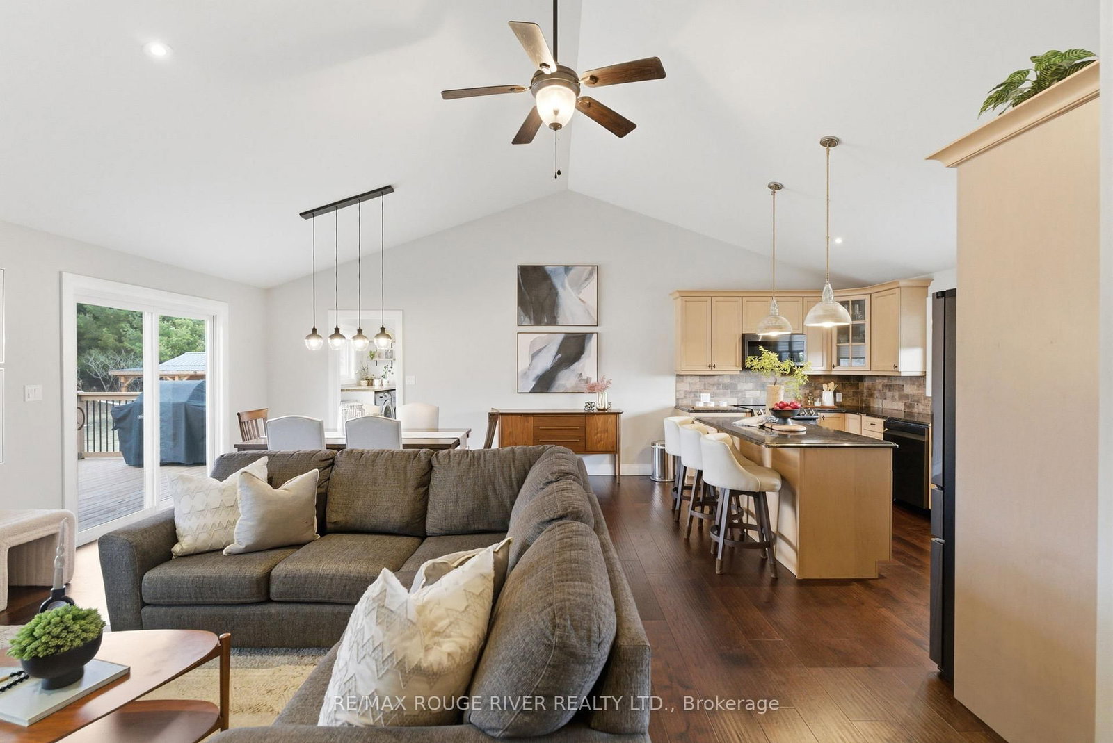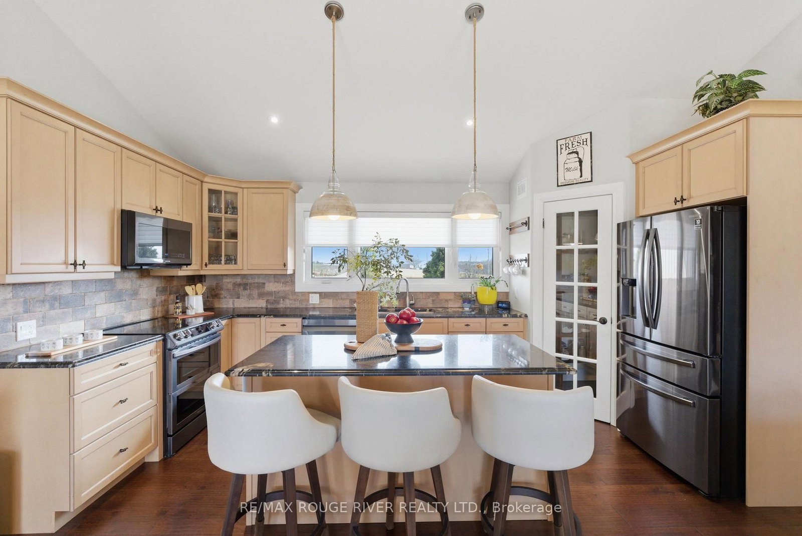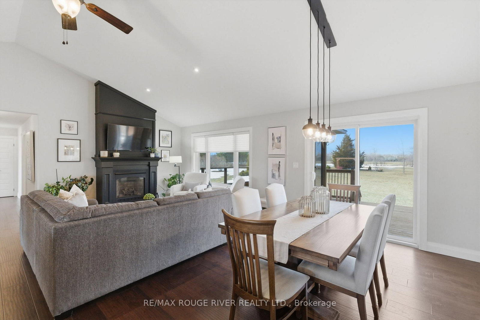 Set on 2. The Bungalow on 660 Hayes Line has 3 bedrooms, 3 bathrooms, and is located on a 450.16 x 200.1 ft loton 2-4.99 acres in the community of Cavan Twp .07 acres of scenic countryside, this custom-built 3 bedroom, 3 bathroom bungalow offers breathtaking views and a peaceful natural setting. This beautifully maintained home features new hardwood flooring on both levels and bright, open living spaces designed to capture the surrounding landscape. The main floor features a spacious family room with vaulted ceilings, pot lights, and a cozy propane fireplace. Large windows flood the space with natural light and showcase stunning views of the surrounding trees. The open-concept design flows seamlessly into the dining area, highlighted by pendant lighting and a walkout to the deck and screened-in porch-perfect for enjoying peaceful outdoor views. The large kitchen is both functional and inviting, offering granite countertops, a centre island with breakfast bar, stainless steel appliances, a stylish backsplash with lighting and a custom walk-in pantry. The primary bedroom features a walk-in closet, large windows and a 3-piece ensuite with glass shower. Two additional bedrooms are generously sized and include closet space and large windows. Newly installed carpet on the staircase leads to the fully finished lower level offering bright above-grade windows, pot lights throughout, a spacious recreation area, an additional bedroom with a barn door, a dedicated fitness room and a 4-piece bathroom with heated floors, a soaker tub and granite countertop. Direct access from the garage, a large storage area, and an updated laundry room add convenience. Step outside to enjoy the expansive deck, screened-in porch, custom patio with pergola, raised vegetable gardens, beautiful flagstone walkways and invisible fence. The property also features a large custom-built Mennonite shed with covered porch, an additional storage shed, a drilled well, filtered dual chamber septic system, and a 200 amp electrical panel. Completing the home is an impressive three-car propane-heated garage with workshop space and a mounted TV included.