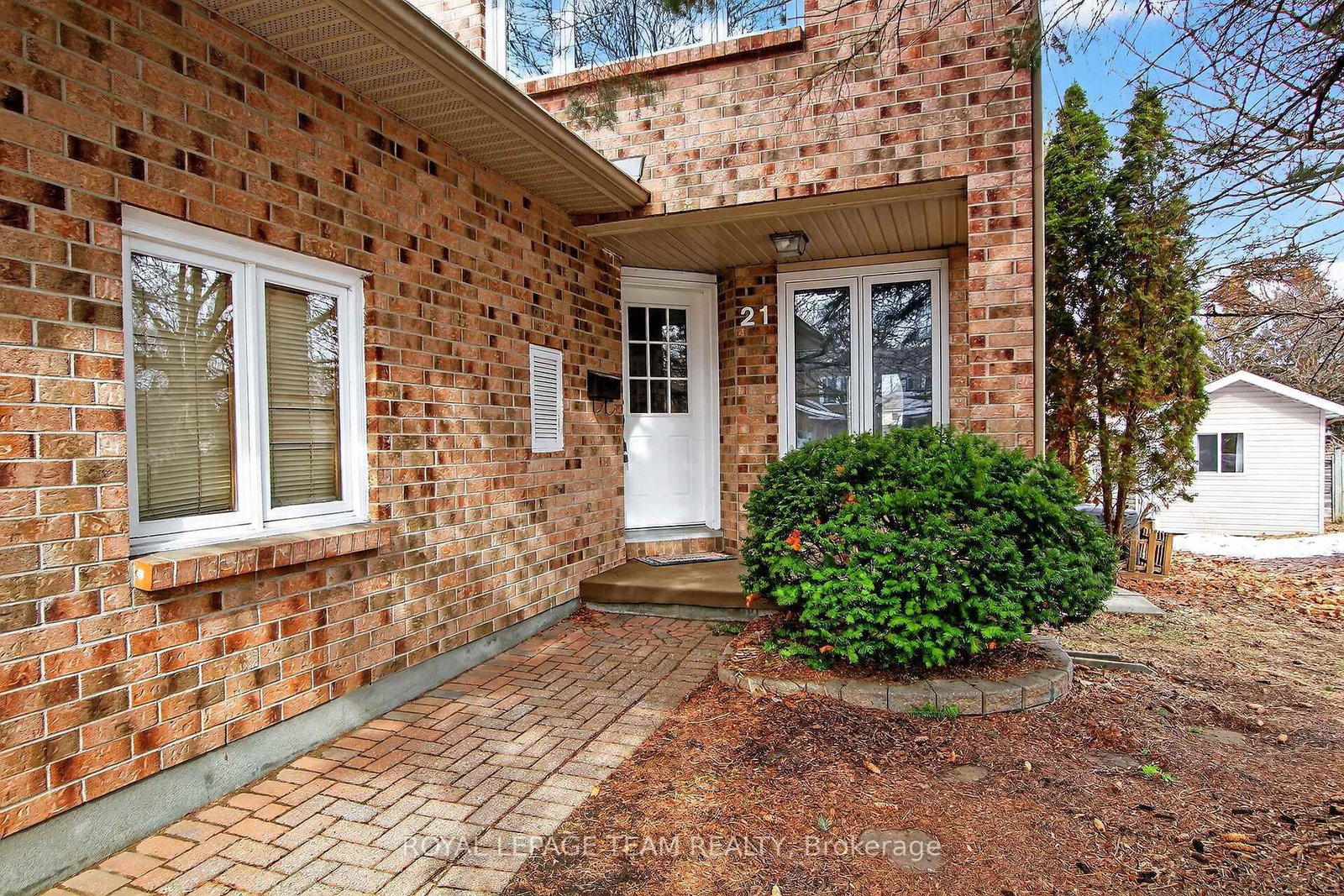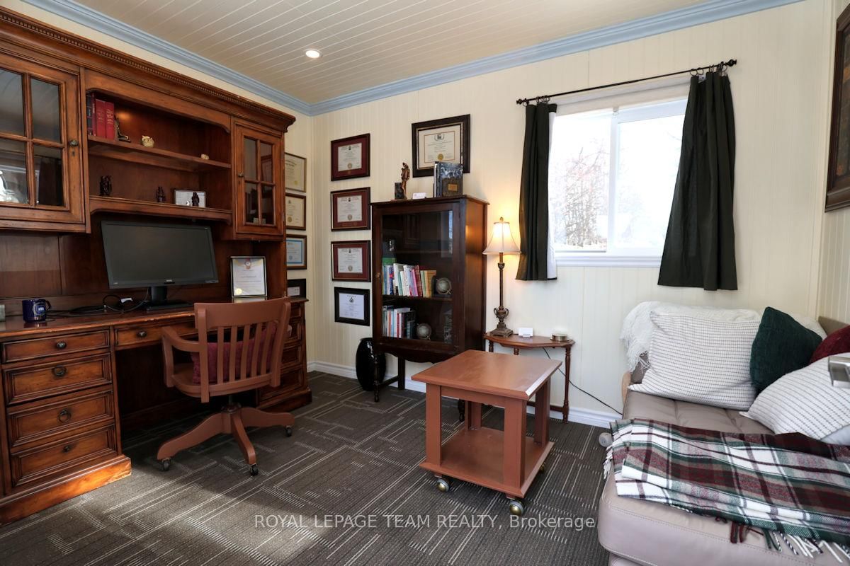 Lovely Holitzner built end unit townhome, located on a private court and on an amazing large lot with mature trees, in the central neighborhood of Katimavik. The 2-Storey on 21 Baton Court has 3 bedrooms, 3 bathrooms, and is located on a 107.71 x 138.96 ft lot in the community of Katimavik . Three bedrooms, three baths, open plan living & dining room, eat-in kitchen with patio door to composite deck plus finished lower level with gas fireplace. Bonus free standing building/coach house (2022) used as an office, could also be a hobby room. Insulated, power, recessed lighting, engineered hardwood flooring (carpet tile on top).Private enlarged double driveway (4 car parking) with interlock near garage & interlock walkway to covered front porch. Tiled foyer and reception area, has a cut out with view of living room, double closet and entry to the garage is close by. Open living and dining room with updated laminate flooring and several updated windows, fantastic space for entertaining. Kitchen has many tall cabinets, tile backsplash, double stainless steel sink, updated faucet & appliances are included. Eating area in kitchen has vaulted ceiling and recessed lighting and beautiful views of yard. Patio door opens onto the composite deck, great for barbecues and relaxing. Powder room has newer vanity, sink and mirror. Second level with three good-sized bedrooms and two full baths. The primary bedroom has a big window with views of the court and a spacious walk-in closet. The ensuite bath has a vanity with sink, medicine cabinet, glass shelf and double shower with seat. Two more bedrooms with neutral decor, double closets, big windows and overhead lights. The linen closet and full bath is conveniently close by. The main bath has a combined tub and shower with tile surround and vanity with sink and medicine cabinet. Lower level with spacious family room, office area, plus a library area, laundry & utility room. Walk to many parks, schools, shops and Leisure Center. Minutes to bus on Castlefrank & convenient access to 417. Updated windows (2018), garage door & more. 24 hours irrevocable on all offers.