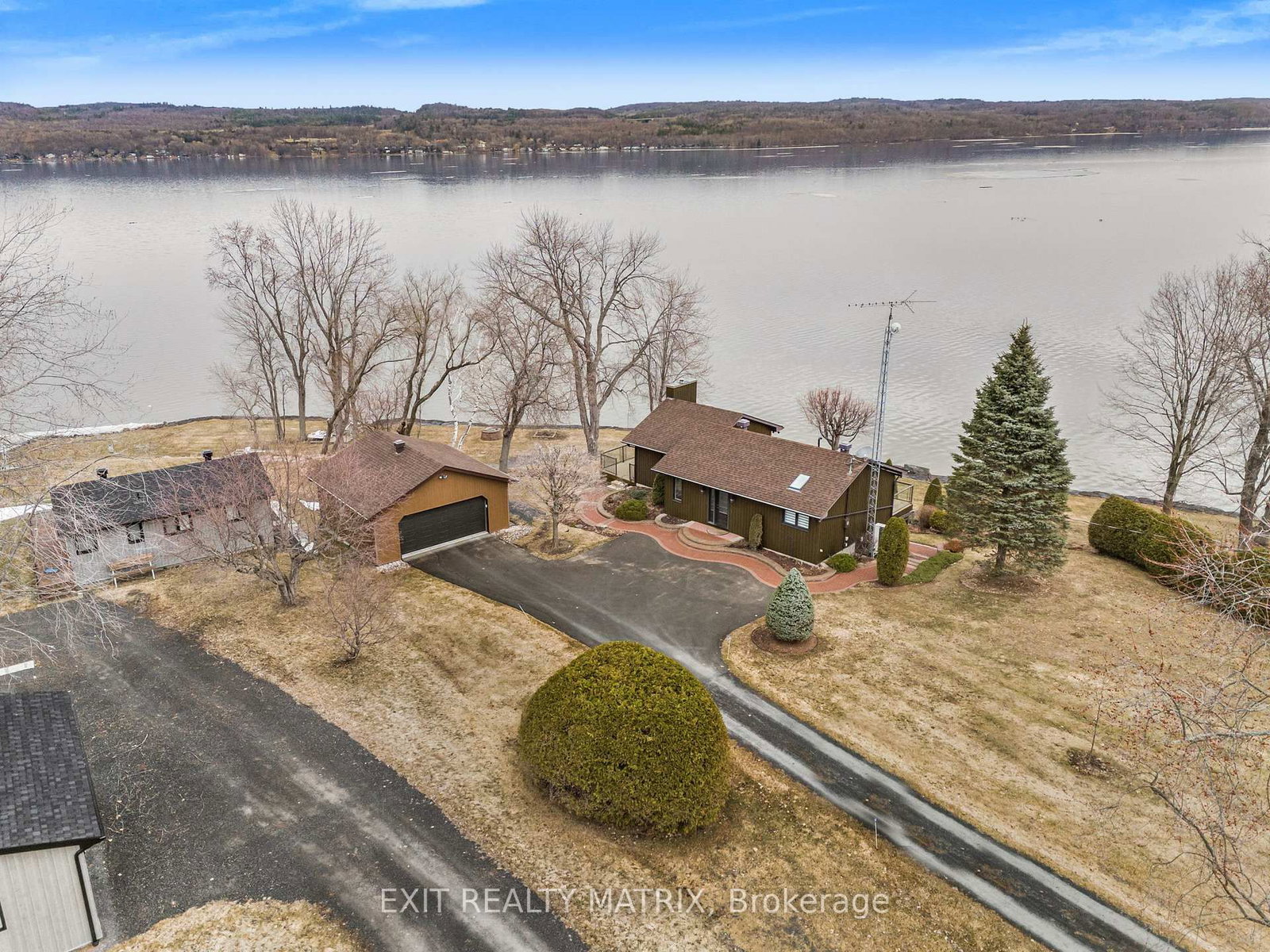 **OPEN HOUSE SUNDAY 1-3PM. The Bungalow on 2176 Bay Road has 2 bedrooms, 2 bathrooms, and is located on a 369.61 x 357.91 ft lot in the community of Champlain Twp . Nestled on one of the most impressive waterfront lots in the L'Orignal area, this exceptional property offers over 360 feet of waterfront frontage along the Ottawa River. The beautifully landscaped grounds are truly one of a kind, featuring retaining walls, perennial flower gardens, mature trees, and expansive usable waterfront space. Enjoy direct water access with your private boat launch with ramps, as well as hardscaped steps leading into the water where a sandy river floor awaits-perfect for swimming, boating, and making the most of waterfront living. A long driveway leads to a pristine and well-maintained bungalow with walkout basement, complemented by a detached double car garage and a detached workshop, ideal for hobbyists, storage, or additional workspace. The main floor of the home offers a beautifully updated eat-in kitchen with granite countertops, a large island, and ample cabinetry, opening into a generously sized family room designed to take full advantage of the stunning water views. The main level also features a spacious primary bedroom and a full bathroom with ceramic walk-in shower and soaker tub, each boasting large, bright windows that capture breathtaking views of the river and surrounding landscape. The fully finished walkout lower level expands the living space with a large family room, a second bedroom, and a separate private office. French doors lead from the office into a sunroom, creating the perfect space to relax while enjoying the peaceful waterfront setting year-round. In addition to the ground level exterior sitting area, this home offers two composite balcony with glass railings. Energy efficient home heated and cooled by a heat pump and a wood pellet stove for additional comfort. A rare opportunity to own an extraordinary waterfront property combining privacy, natural beauty, and thoughtfully designed outdoor living spaces-all just minutes from the village of L'Orignal and a short drive to Hawkesbury.