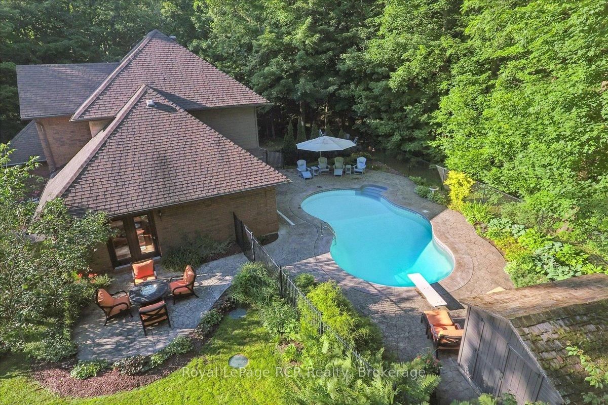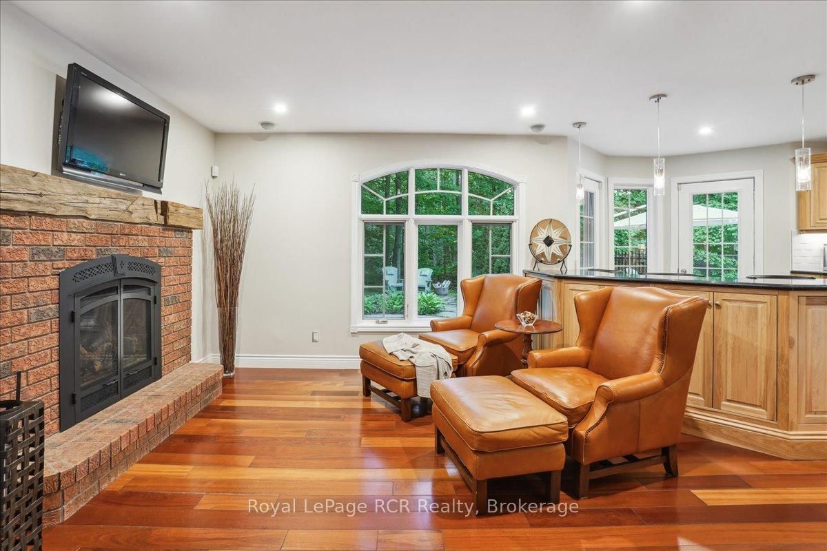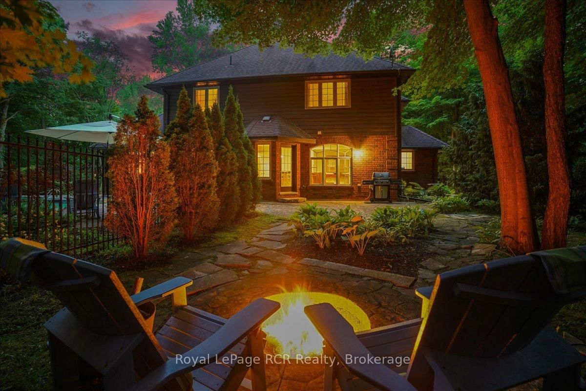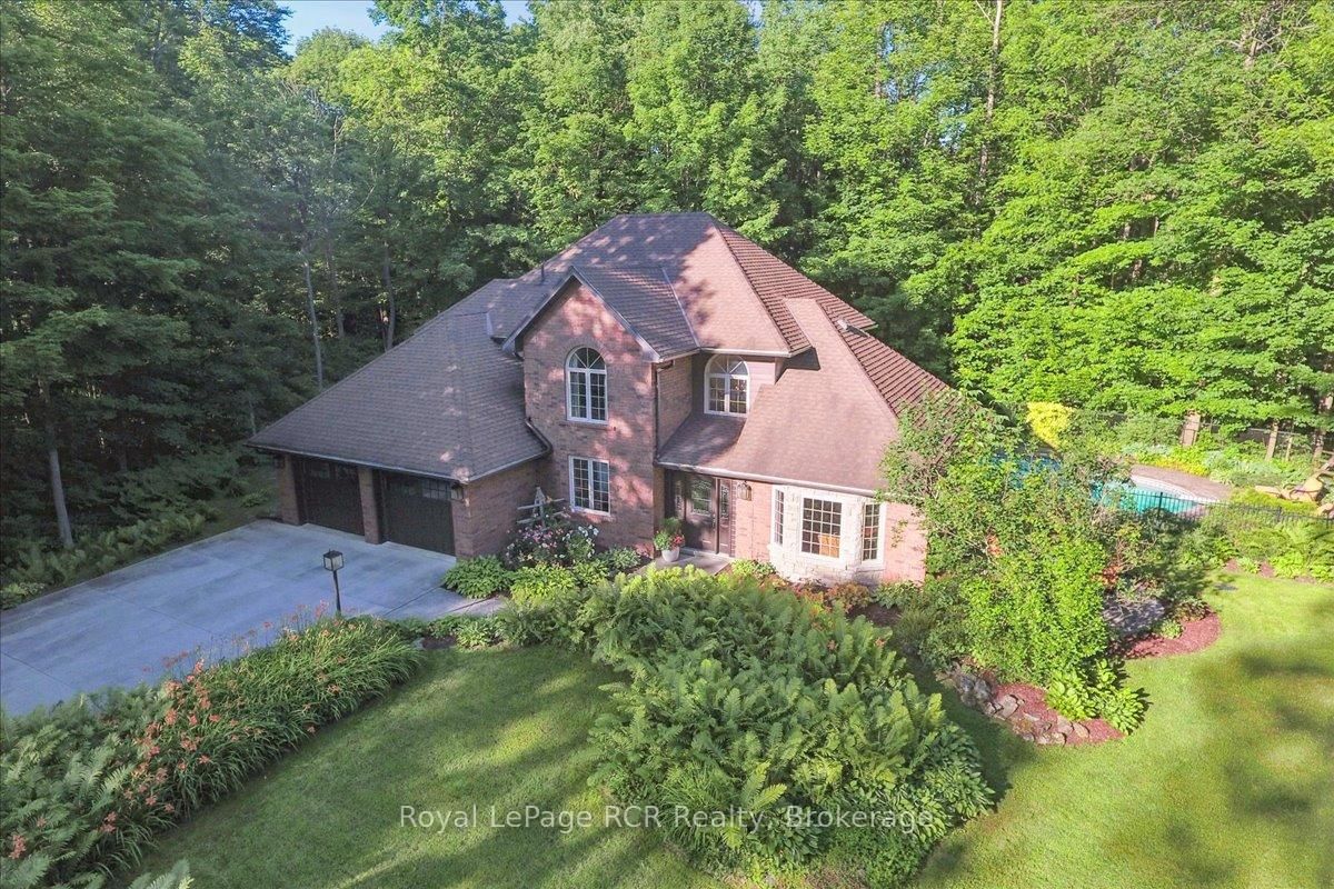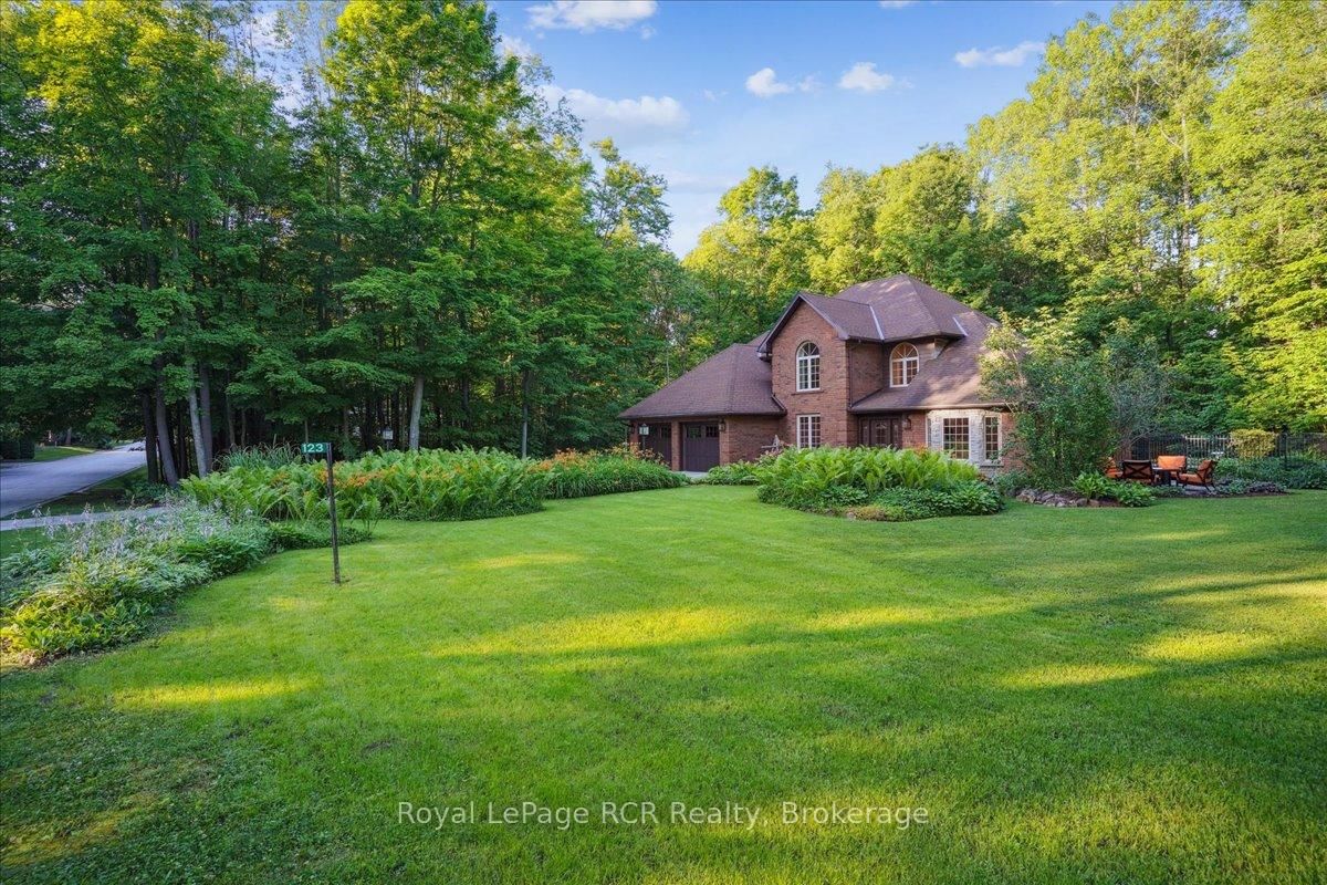 Discover a sophisticated retreat in the heart of Pottawatomi Village, just minutes from Owen Sound. The 2-Storey on 123 Atkins Street has 3 bedrooms, 3 bathrooms, and is located on a 177.15 x 353.66 ft lot in the community of Georgian Bluffs . This stunning two-storey brick home is a true labour of love, meticulously updated by owners who have infused every corner with warmth and high-end style. The main floor balances productivity and play, featuring a bright, dedicated office alongside a showstopping Brubacher designed kitchen. With sleek quartz countertops and premium stainless steel appliances, the kitchen flows naturally into a fireside sitting room, the ultimate spot for slow mornings and cozy evenings. The luxury continues upstairs in the primary suite, a private sanctuary boasting a walk-in closet and a spa-like ensuite with a classic clawfoot tub. Two additional bedrooms and a finished basement, that's ready for movie marathons, a home gym, or even a fourth bedroom, there's plenty of room for your life to grow. Throughout the home, gleaming cherry hardwoods and slate tiles are bathed in natural light, creating an atmosphere that is both polished and incredibly inviting. The backyard is a private, ravine-backed resort designed for effortless entertaining. Spend your summers lounging by the heated inground pool or hosting alfresco dinners on the patio. As the sun sets, the pool's integrated lighting and the crackling firepit transform the yard into a chic, starlit lounge. Blending sophisticated design with a heartfelt touch, this rare gem offers an unparalleled lifestyle in one of the region's most sought-after communities.
