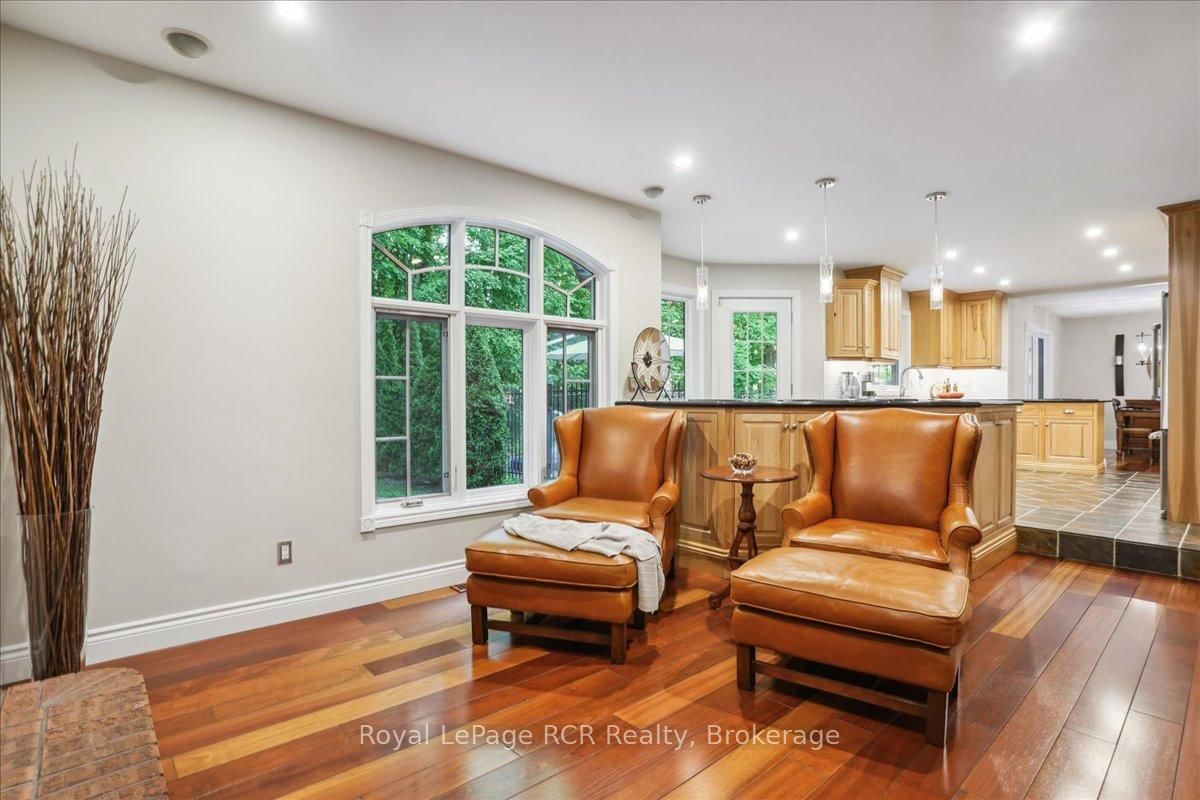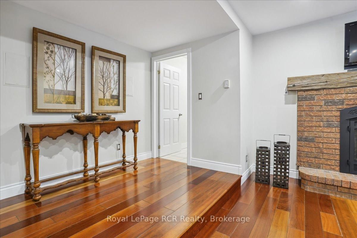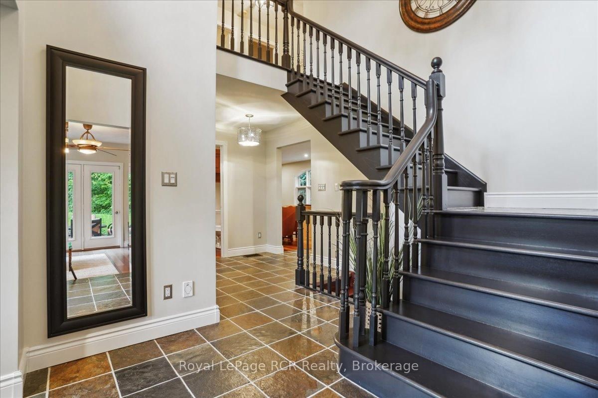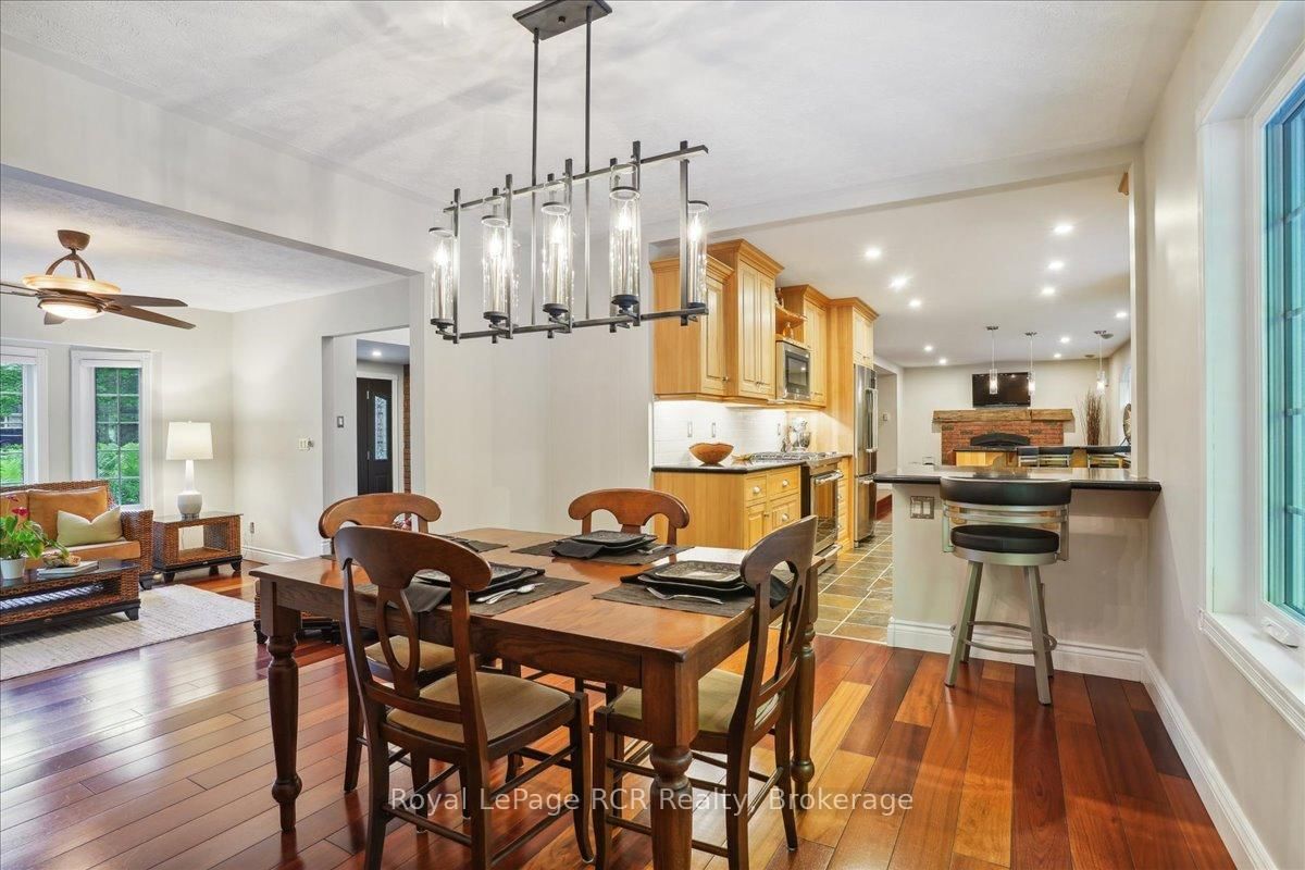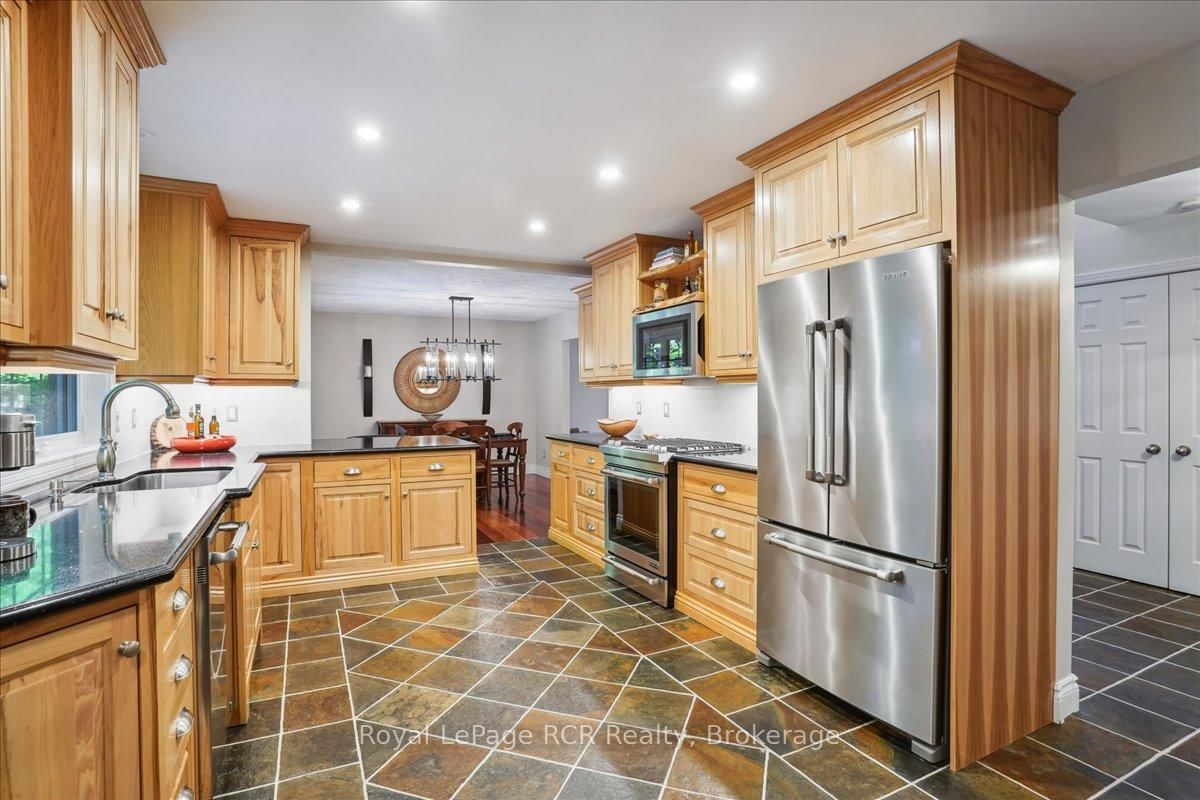 Discover a sophisticated retreat in the heart of Pottawatomi Village, just minutes from Owen Sound. The 2-Storey on 123 Atkins Street has 3 bedrooms, 3 bathrooms, and is located on a 177.15 x 353.66 ft lot in the community of Georgian Bluffs . This stunning two-storey brick home is a true labour of love, meticulously updated by owners who have infused every corner with warmth and high-end style. The main floor balances productivity and play, featuring a bright, dedicated office alongside a showstopping Brubacher designed kitchen. With sleek quartz countertops and premium stainless steel appliances, the kitchen flows naturally into a fireside sitting room, the ultimate spot for slow mornings and cozy evenings. The luxury continues upstairs in the primary suite, a private sanctuary boasting a walk-in closet and a spa-like ensuite with a classic clawfoot tub. Two additional bedrooms and a finished basement, that's ready for movie marathons, a home gym, or even a fourth bedroom, there's plenty of room for your life to grow. Throughout the home, gleaming cherry hardwoods and slate tiles are bathed in natural light, creating an atmosphere that is both polished and incredibly inviting. The backyard is a private, ravine-backed resort designed for effortless entertaining. Spend your summers lounging by the heated inground pool or hosting alfresco dinners on the patio. As the sun sets, the pool's integrated lighting and the crackling firepit transform the yard into a chic, starlit lounge. Blending sophisticated design with a heartfelt touch, this rare gem offers an unparalleled lifestyle in one of the region's most sought-after communities.