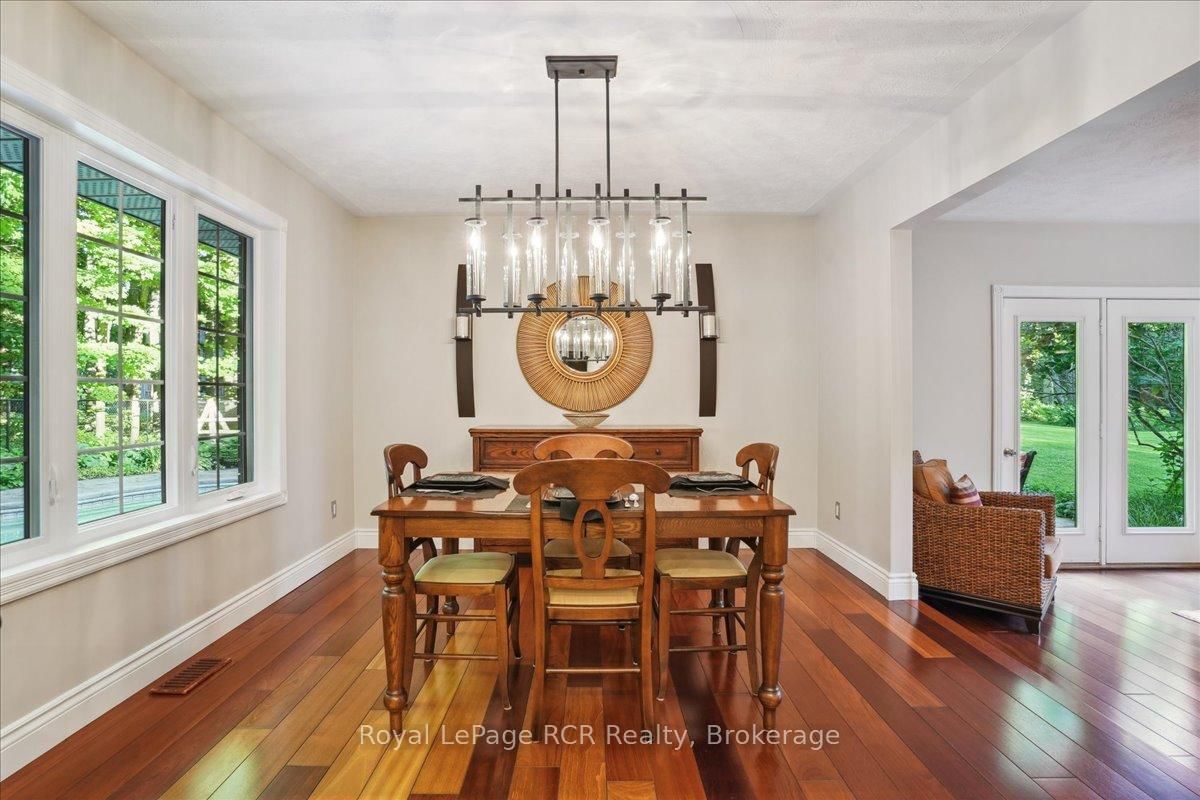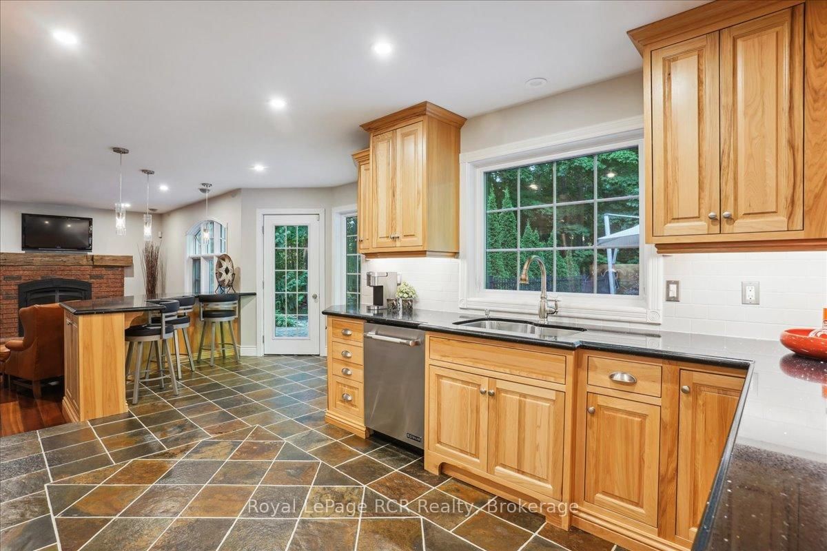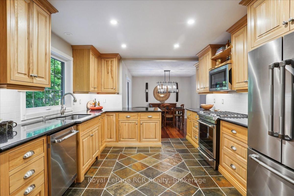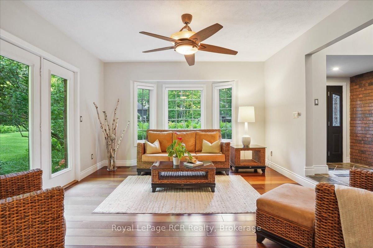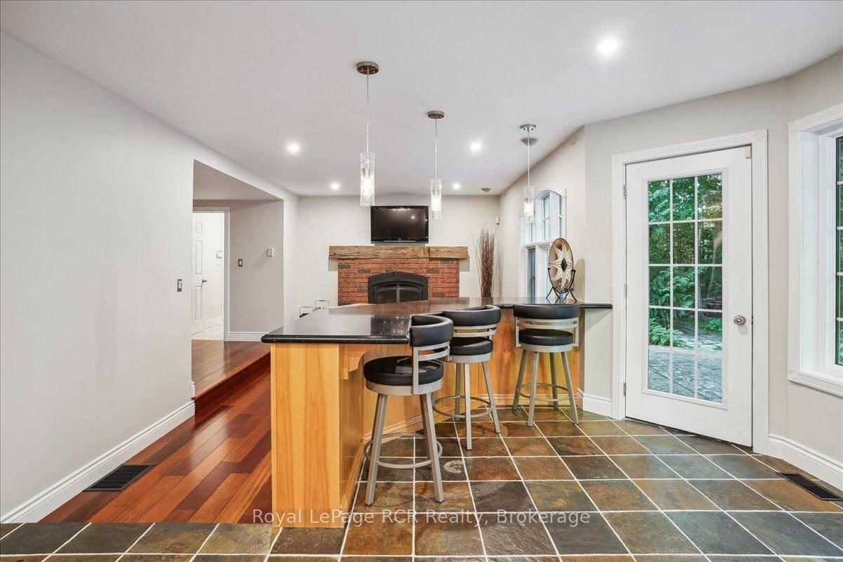 Discover a sophisticated retreat in the heart of Pottawatomi Village, just minutes from Owen Sound. The 2-Storey on 123 Atkins Street has 3 bedrooms, 3 bathrooms, and is located on a 177.15 x 353.66 ft lot in the community of Georgian Bluffs . This stunning two-storey brick home is a true labour of love, meticulously updated by owners who have infused every corner with warmth and high-end style. The main floor balances productivity and play, featuring a bright, dedicated office alongside a showstopping Brubacher designed kitchen. With sleek quartz countertops and premium stainless steel appliances, the kitchen flows naturally into a fireside sitting room, the ultimate spot for slow mornings and cozy evenings. The luxury continues upstairs in the primary suite, a private sanctuary boasting a walk-in closet and a spa-like ensuite with a classic clawfoot tub. Two additional bedrooms and a finished basement, that's ready for movie marathons, a home gym, or even a fourth bedroom, there's plenty of room for your life to grow. Throughout the home, gleaming cherry hardwoods and slate tiles are bathed in natural light, creating an atmosphere that is both polished and incredibly inviting. The backyard is a private, ravine-backed resort designed for effortless entertaining. Spend your summers lounging by the heated inground pool or hosting alfresco dinners on the patio. As the sun sets, the pool's integrated lighting and the crackling firepit transform the yard into a chic, starlit lounge. Blending sophisticated design with a heartfelt touch, this rare gem offers an unparalleled lifestyle in one of the region's most sought-after communities.