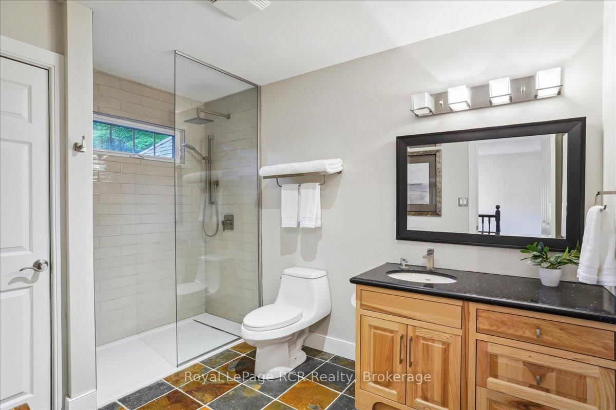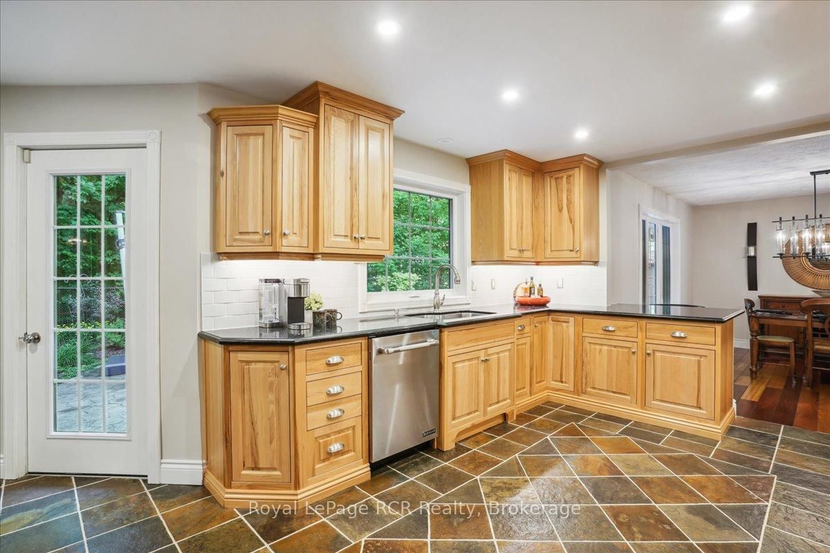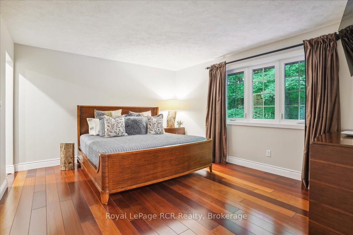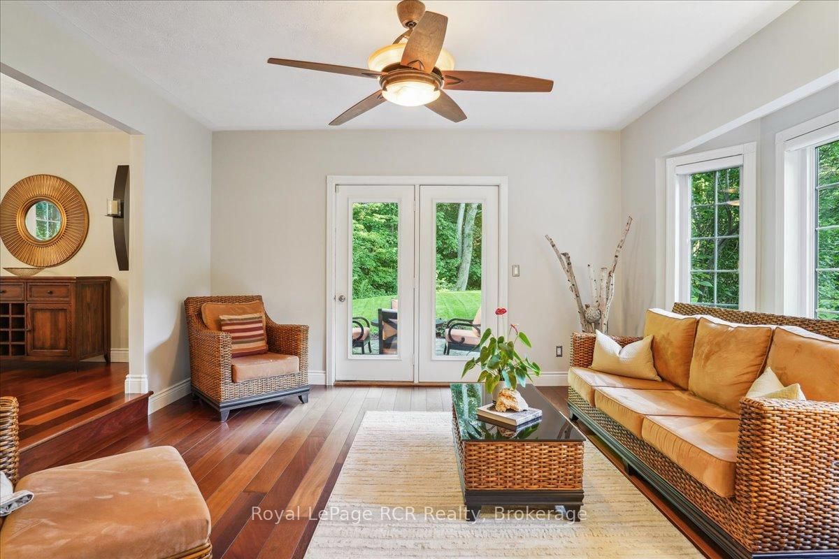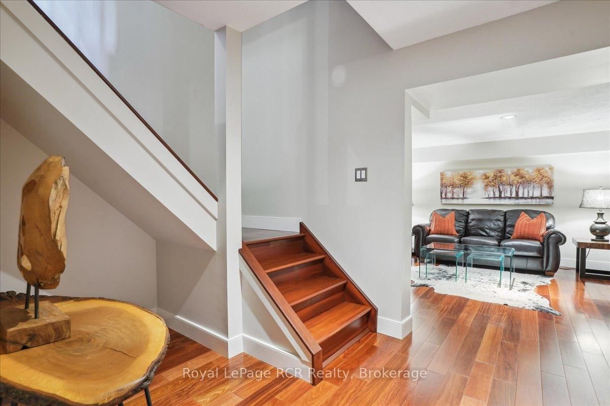 Discover a sophisticated retreat in the heart of Pottawatomi Village, just minutes from Owen Sound. The 2-Storey on 123 Atkins Street has 3 bedrooms, 3 bathrooms, and is located on a 177.15 x 353.66 ft lot in the community of Georgian Bluffs . This stunning two-storey brick home is a true labour of love, meticulously updated by owners who have infused every corner with warmth and high-end style. The main floor balances productivity and play, featuring a bright, dedicated office alongside a showstopping Brubacher designed kitchen. With sleek quartz countertops and premium stainless steel appliances, the kitchen flows naturally into a fireside sitting room, the ultimate spot for slow mornings and cozy evenings. The luxury continues upstairs in the primary suite, a private sanctuary boasting a walk-in closet and a spa-like ensuite with a classic clawfoot tub. Two additional bedrooms and a finished basement, that's ready for movie marathons, a home gym, or even a fourth bedroom, there's plenty of room for your life to grow. Throughout the home, gleaming cherry hardwoods and slate tiles are bathed in natural light, creating an atmosphere that is both polished and incredibly inviting. The backyard is a private, ravine-backed resort designed for effortless entertaining. Spend your summers lounging by the heated inground pool or hosting alfresco dinners on the patio. As the sun sets, the pool's integrated lighting and the crackling firepit transform the yard into a chic, starlit lounge. Blending sophisticated design with a heartfelt touch, this rare gem offers an unparalleled lifestyle in one of the region's most sought-after communities.
