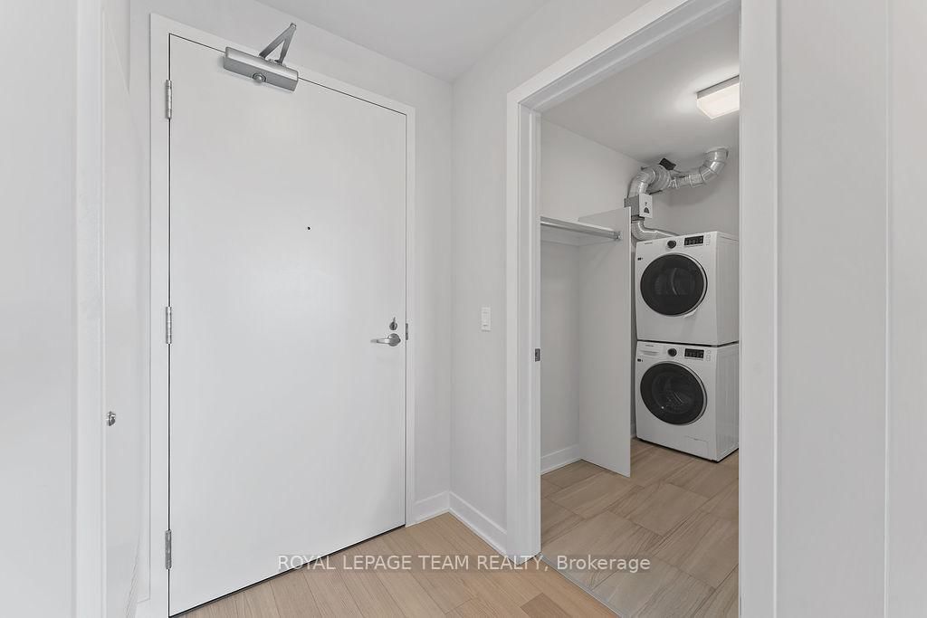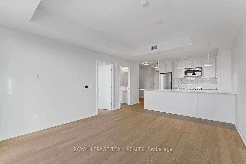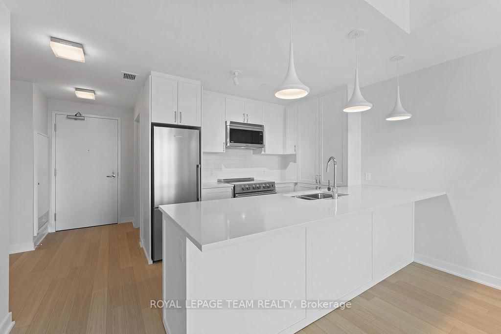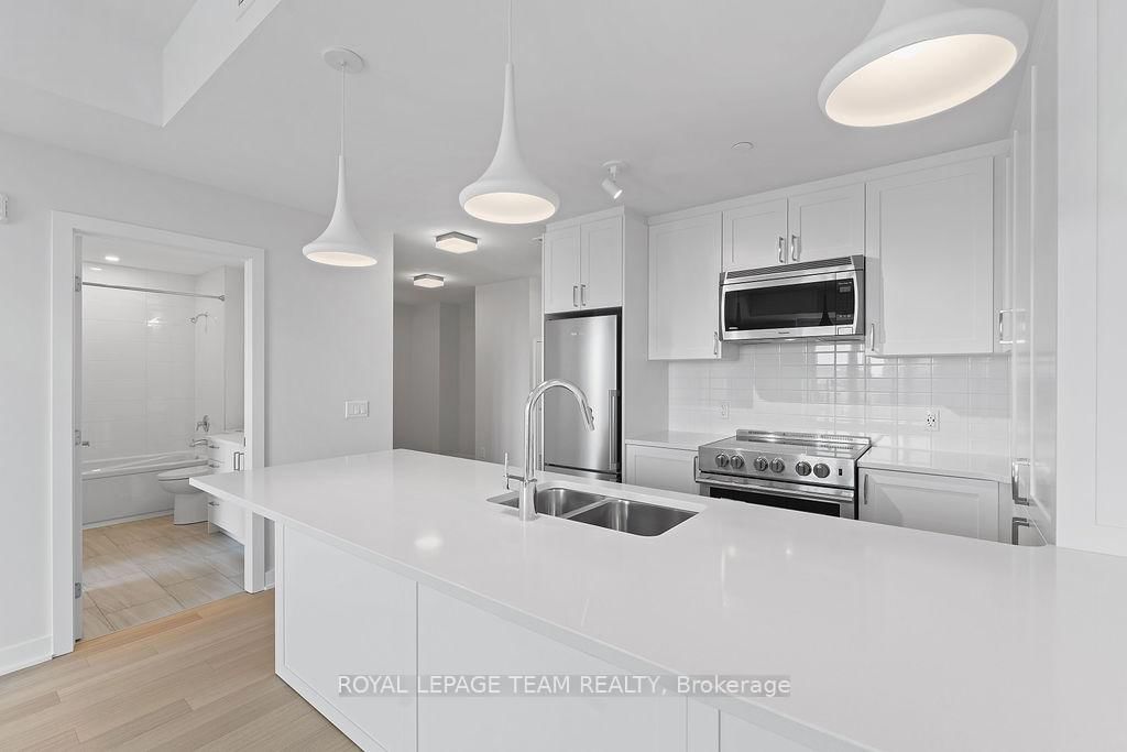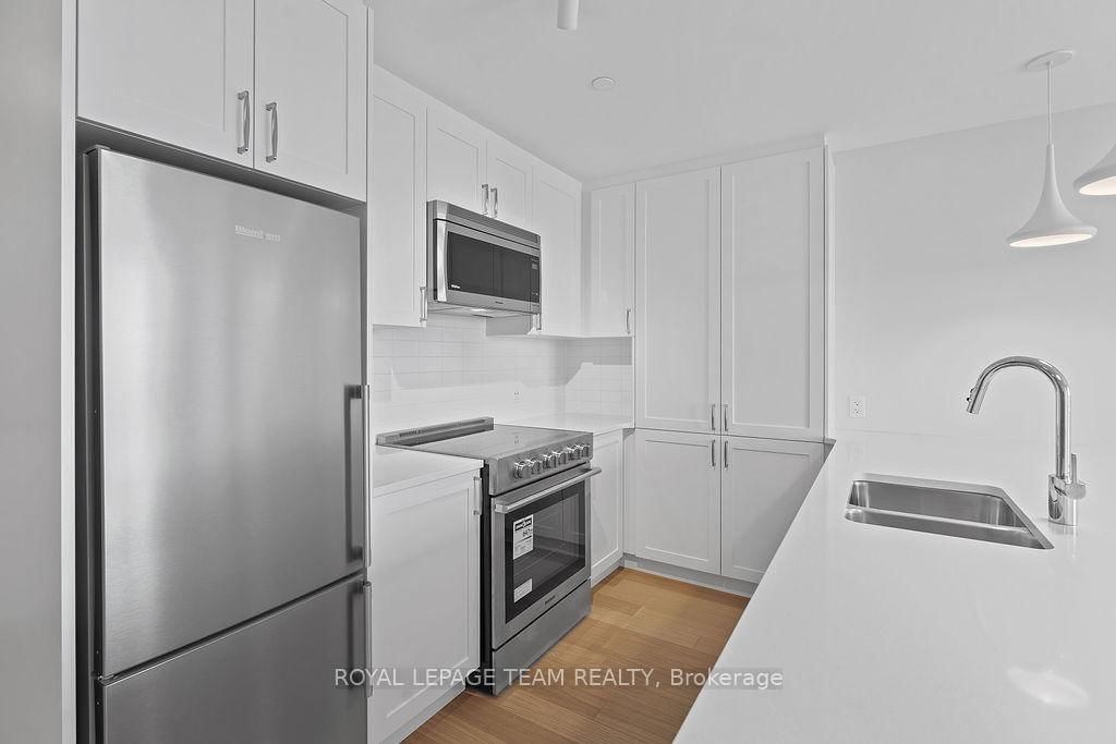 RARE 1 BEDROOM + DEN AT THE SPENCER - GREYSTONE VILLAGE. The Apartment on 503-360 Deschatelets Avenue has 1 bedrooms, 1 bathrooms, and is located in the community of Ottawa East . Experience the perfect blend of nature and urban living at The Spencer in Greystone Village, where contemporary design meets vibrant community charm. This beautifully designed 753 sq. ft. condo features a bright open-concept layout seamlessly connecting the kitchen and living areas. The stylish kitchen offers sleek quartz countertops, ample cabinetry, stainless steel appliances, and a convenient breakfast counter, perfect for both everyday living and entertaining. The spacious bedroom includes direct access to a cheater ensuite bathroom, while the versatile den provides the ideal space for a home office, study area, or cozy reading nook. Step out onto the west-facing balcony to enjoy fresh air and beautiful sunsets. Added conveniences include in-unit laundry and one underground parking space. Located in the heart of Greystone Village, residents enjoy direct access to scenic walking and cycling paths along the Rideau River. The building features outstanding amenities including a rooftop terrace with city views, lounge areas, gas fireplaces, and dining space, as well as a fitness studio, guest suite, bike storage, pet spa, and car & bike wash station. Just steps from vibrant arts, dining, shops, and convenient transit to downtown Ottawa, this is urban living at its finest. Tenant pays heat, hydro, water, internet, cable, phone, and tenant insurance. **Pictures were taken prior to current occupancy