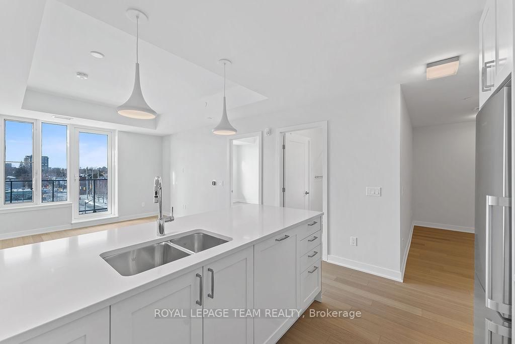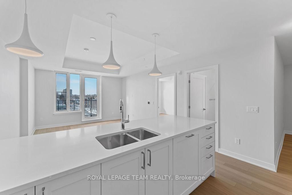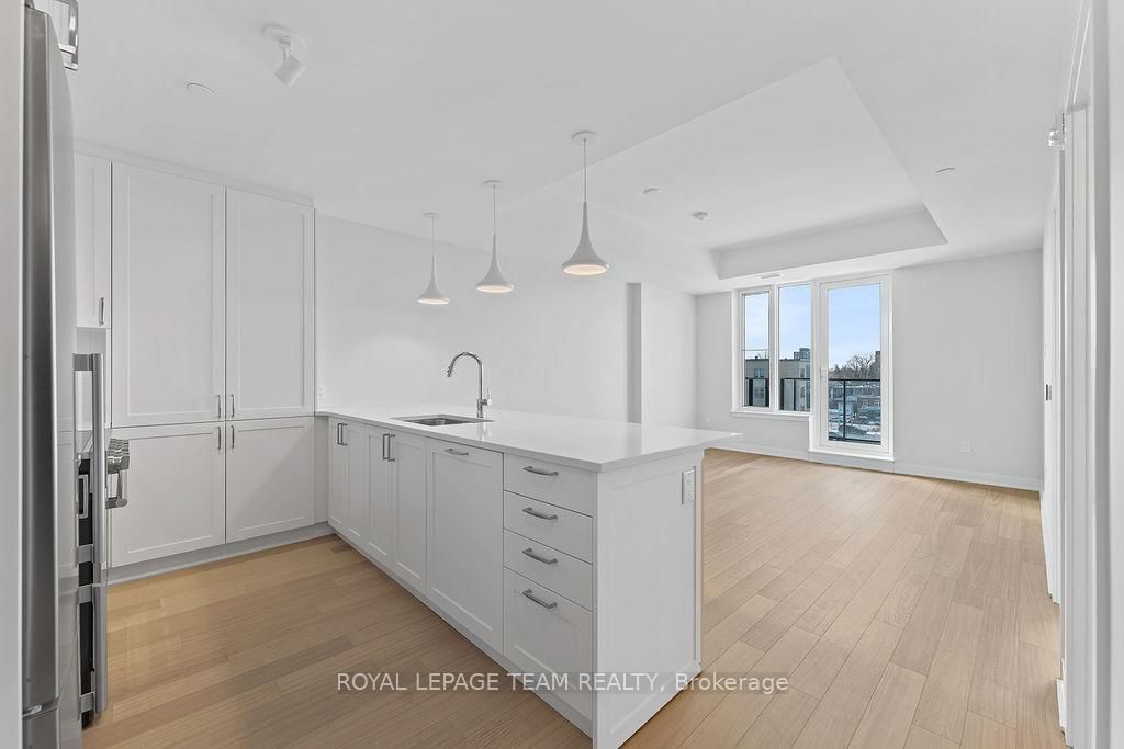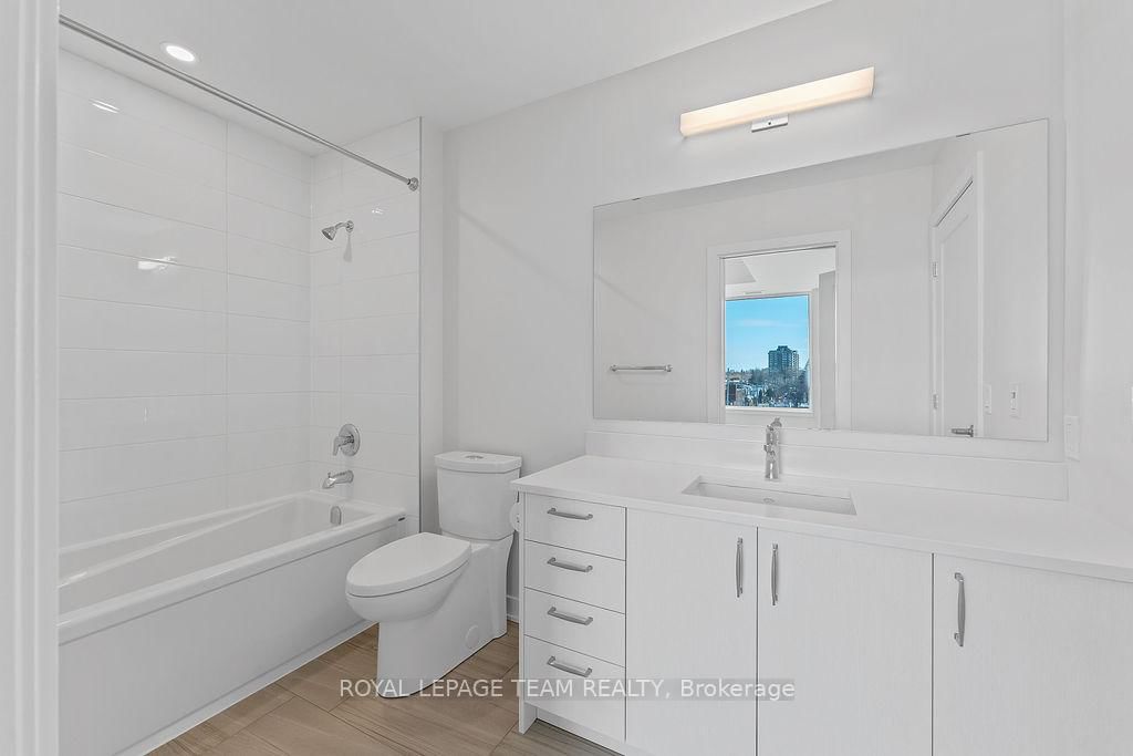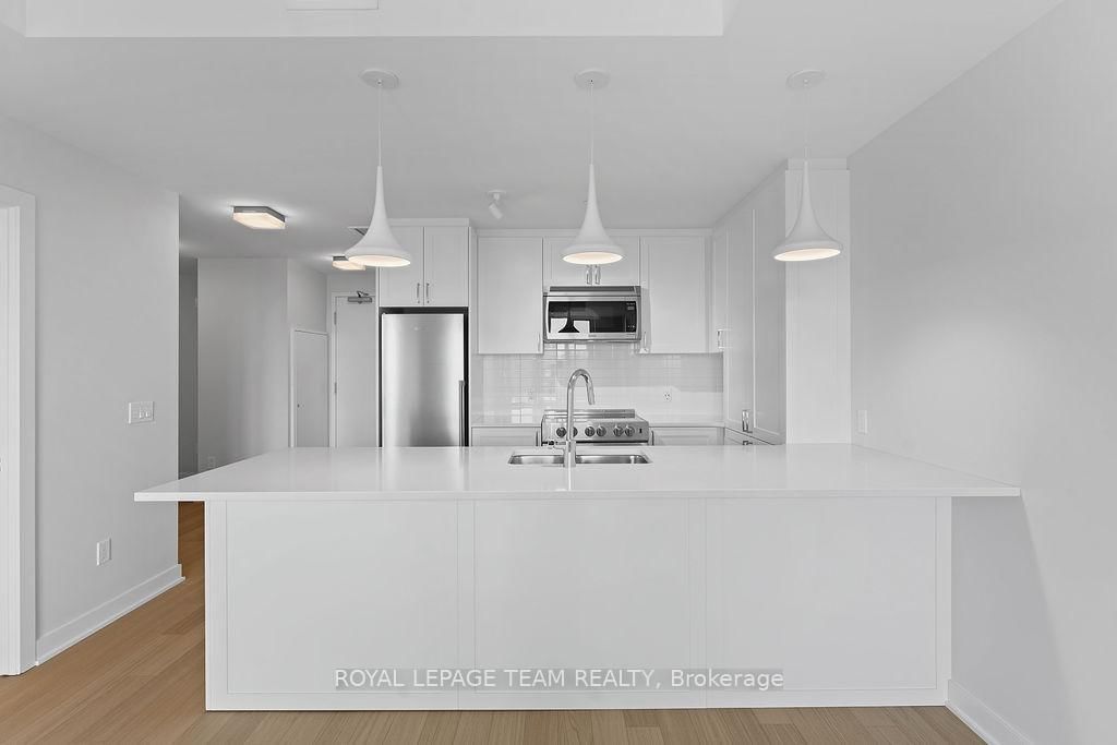 RARE 1 BEDROOM + DEN AT THE SPENCER - GREYSTONE VILLAGE. The Apartment on 503-360 Deschatelets Avenue has 1 bedrooms, 1 bathrooms, and is located in the community of Ottawa East . Experience the perfect blend of nature and urban living at The Spencer in Greystone Village, where contemporary design meets vibrant community charm. This beautifully designed 753 sq. ft. condo features a bright open-concept layout seamlessly connecting the kitchen and living areas. The stylish kitchen offers sleek quartz countertops, ample cabinetry, stainless steel appliances, and a convenient breakfast counter, perfect for both everyday living and entertaining. The spacious bedroom includes direct access to a cheater ensuite bathroom, while the versatile den provides the ideal space for a home office, study area, or cozy reading nook. Step out onto the west-facing balcony to enjoy fresh air and beautiful sunsets. Added conveniences include in-unit laundry and one underground parking space. Located in the heart of Greystone Village, residents enjoy direct access to scenic walking and cycling paths along the Rideau River. The building features outstanding amenities including a rooftop terrace with city views, lounge areas, gas fireplaces, and dining space, as well as a fitness studio, guest suite, bike storage, pet spa, and car & bike wash station. Just steps from vibrant arts, dining, shops, and convenient transit to downtown Ottawa, this is urban living at its finest. Tenant pays heat, hydro, water, internet, cable, phone, and tenant insurance. **Pictures were taken prior to current occupancy