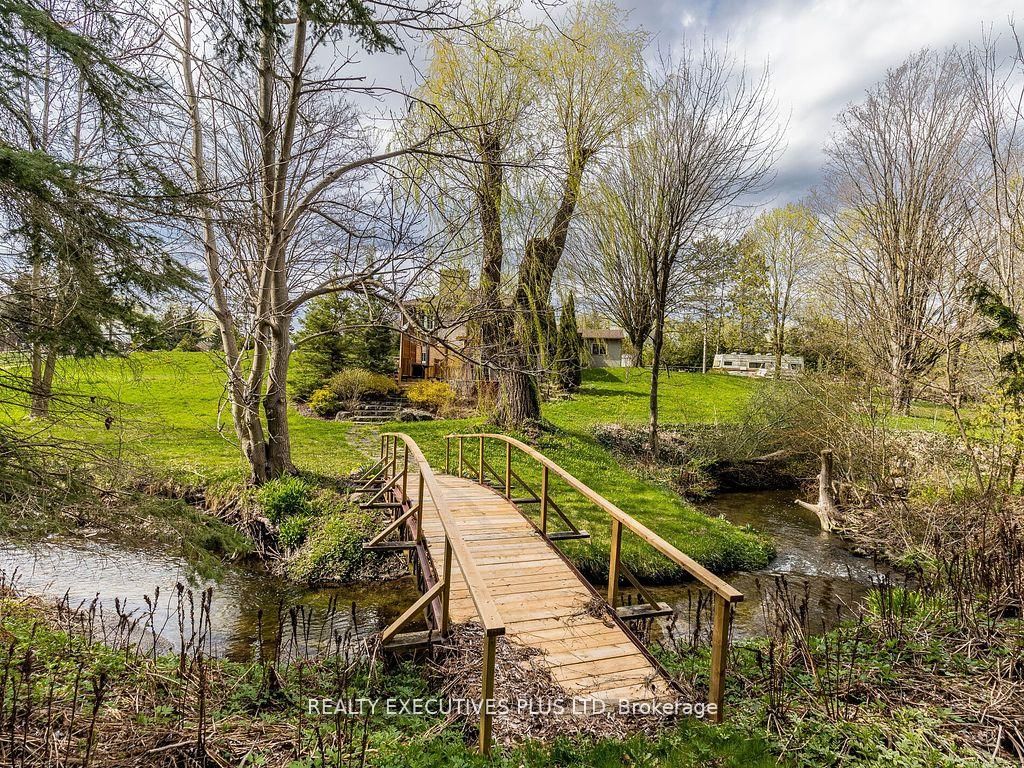 Location! Location! 1. The Bungalow on 936125 Airport Road N has 2 bedrooms, 2 bathrooms, and is located on a 200.1 x 262.13 ft loton .50-1.99 acres in the community of Rural Mulmur .20 Acres. Park like setting with stream running through South end. 2 mins North of 89. Idyllic Lot with mature trees and perennial gardens. Country yet located minutes to Shelburne or Alliston. Ski hills North. Lower level offers approx 800 square feet of living area with walkout to cedar deck and pergola. Walk down the stairs and cross over the bridge to a separate private area that has lots of possibilitites. 2 staircases lead to the front and back area. Laundry room on main could be turned back into 3rd bedroom if needed. Single car garage (or workshop) located behind the attached garage. New bathroom in basement (2024) with heated floors. Updated windows, roofing approx 4 years. Heating for 2025-2026, $3,002.07 Includes services. This home has lots to offer and has been lovingly maintained. Make your appointment today!
