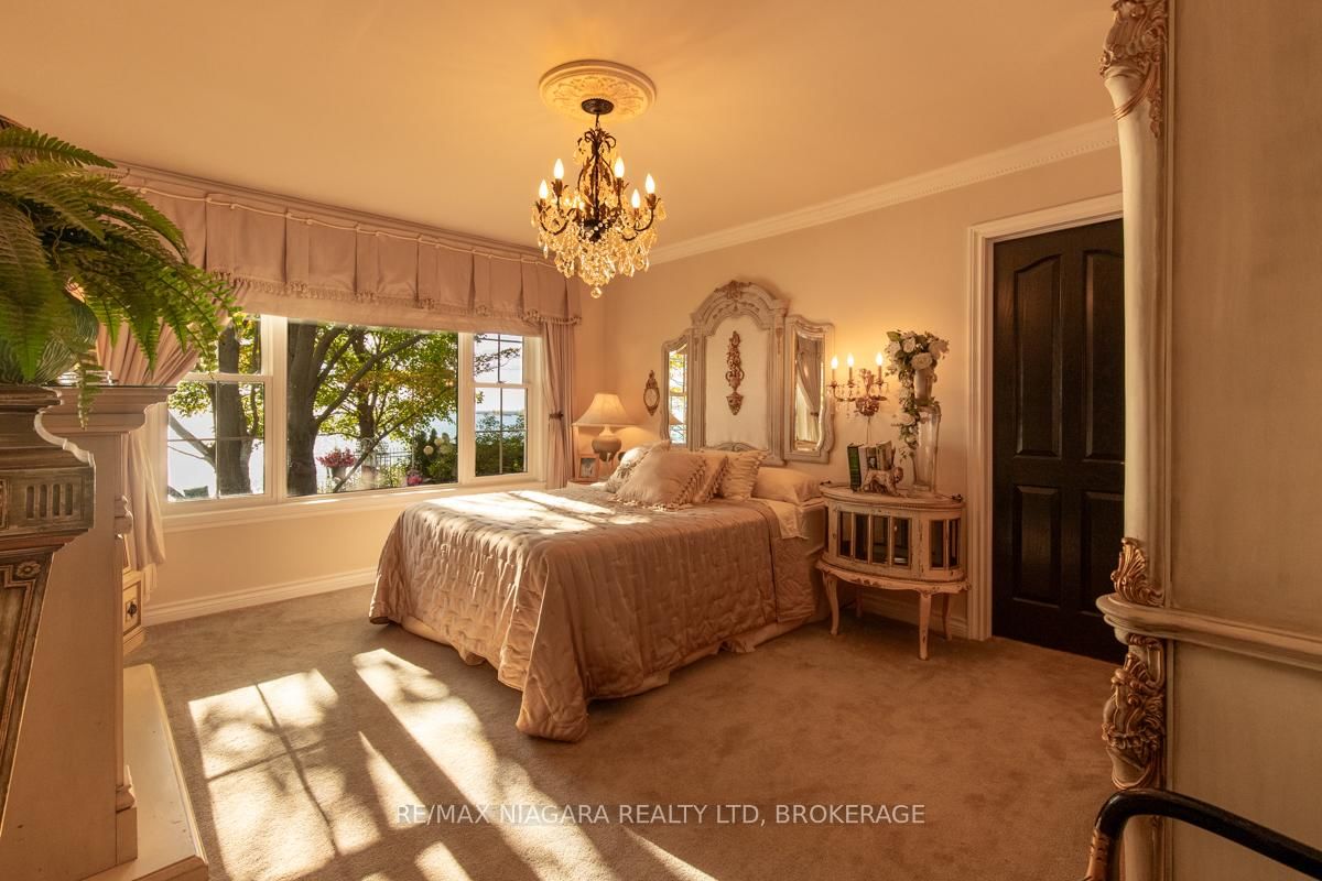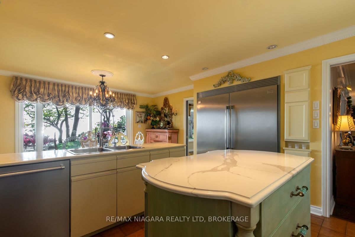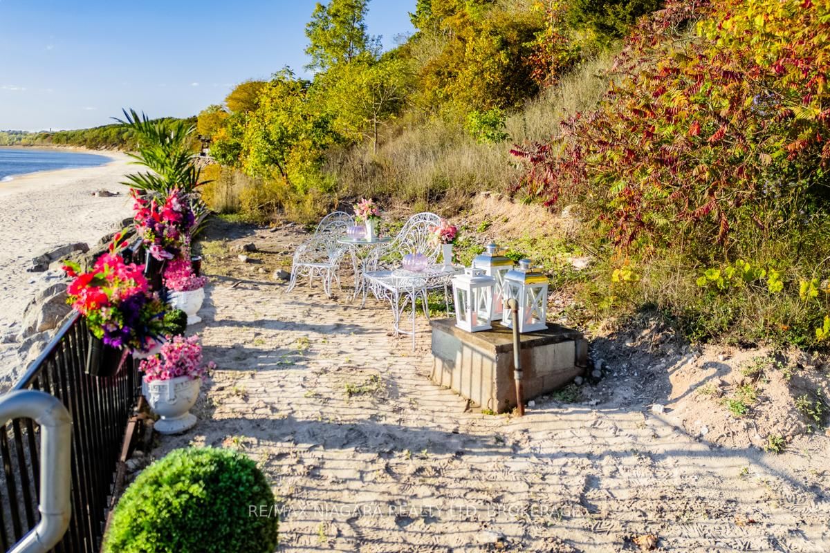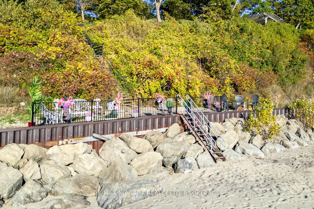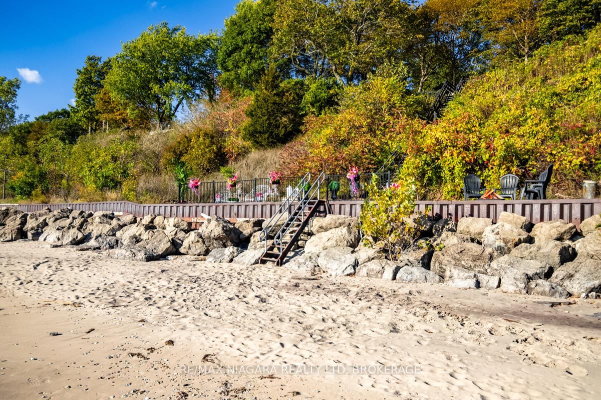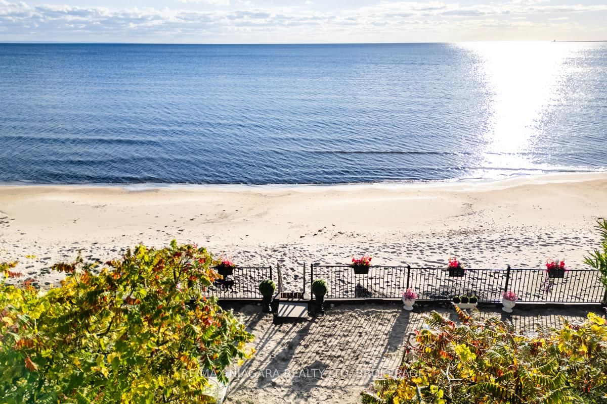 Welcome to 735 Lakeshore Road in Port Colborne, a rare and elegant waterfront estate with 101 feet of private beach on Lake Erie with In-law potential. The 2-Storey on 735 Lakeshore Road E has 5 bedrooms, 3 bathrooms, and is located on a 535.9 x 101.93 ft lot in the community of Sherkston . This French inspired home, principal residence of a prominent interior designer, sits atop a cliff in a lush, professionally landscaped setting, offering privacy, serenity, and breathtaking views. The exterior features full granite stone construction, fluted pilasters, decorative columns & keystones that speak to timeless European craftsmanship. A large balcony with ornate French metal scrollwork adds charm and visual interest. Inside, six skylights and oversized panoramic windows on both levels flood the home with light and frame spectacular lake views, creating a seamless connection with nature. Two custom fireplaces offer warmth and distinction, one with old-world open hearth detailing, the other the largest residential model, visible from anywhere in the room. Granite-raised garden beds, flagstone stairs, and winding pathways guide you through vibrant perennial gardens, creating a park-like atmosphere. Two decks perched on the cliff offer sweeping views of ships passing through the canal and star-filled skies at night. Your exclusive white sand beach features shallow sandbars and warm, swimmable waters, ideal for relaxing, entertaining, or enjoying time with your pup. Gentle breezes and the sounds of the waves provide a daily backdrop of peace and solitude. Located just minutes from downtown Port Colborne and close to Niagara wine country, local festivals, and Toronto, this is more than a home, its a legacy property offering a lifestyle of elegance and natural beauty. **See additional attachments for detailed upgrade and feature list. Property also has a HEPA Filtration system: cleans and recirculates the existing air in a room, removing 99.97% of particles that are 0.3 microns or larger, including dust, pollen, bacteria, and viruses. Luxury Certified.