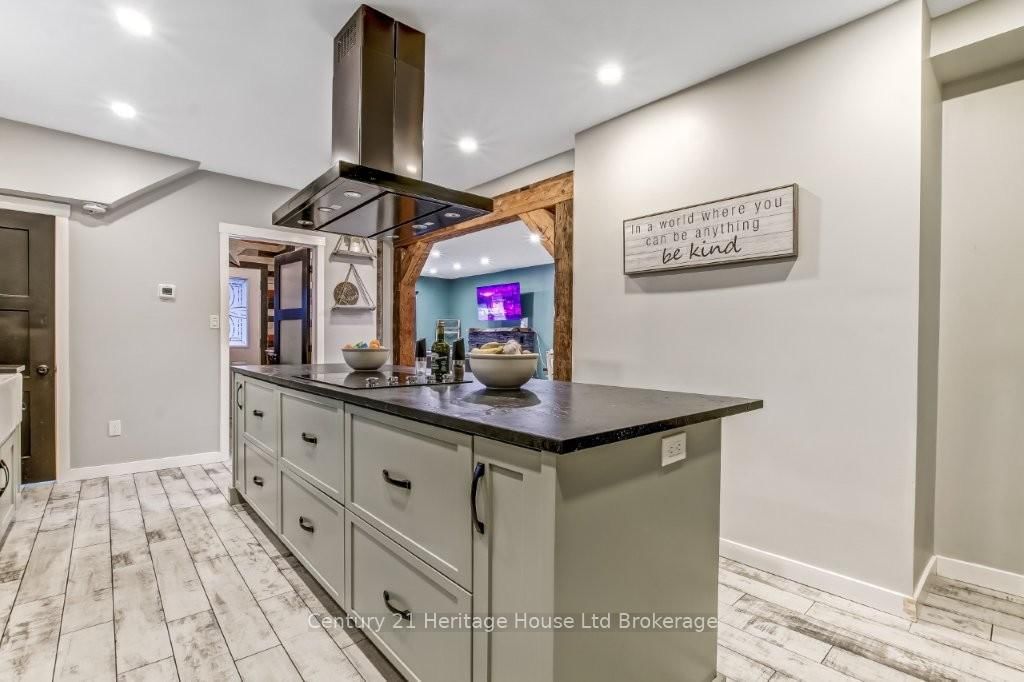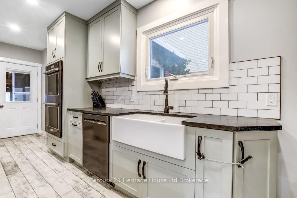 Beautifully renovated home, completed 2021-2023, with some incredible upgrades. The 2 1/2 Storey on 87 Bay Street has 4 bedrooms, 3 bathrooms, and is located on a 179.4 x 66.03 ft loton < .50 acres in the community of South . 2023 kitchen fully gutted to studs with reconfigured layout, reclaimed barn wood beam (engineered/permits), spray foam insulation, updated electrical & plumbing, stage 6 leathered granite counters (high quality, exceptionally rare, luxury-grade granite), barn-style ceramic flooring, double built-in oven, and high-end appliances. Entire home re-plumbed (excluding main floor bath). Living room features new ceiling and barn-style ceramic flooring. Backyard completely transformed in 2021-2022 with retaining wall & drainage, large stone stairs, inviting stone firepit area, deck, fencing, full sodding, 33'x19' pool with French drain and flower gardens front and back. Steel roof, gutters, and eaves installed 2022. New furnace and central air 2021. Finished basement 2021 with 2 rooms, a rec room and a 2-pc bath. 2 garages and 2 driveways; one is a single attached with separate, outside access to the basement, one is a single, double deep, detached with its own newly installed electrical panel. Plus one single and one double driveway offers parking for 8. Main and 2nd levels have 4 bedrooms and 2 baths; the 3rd level offers 2 Bonus rooms, Kitchen cupboards for a potential kitchenette, and plumbing was updated in 2023 for bathroom potential. The ample space throughout and R2 Zoning makes this home an excellent option for in-law, multigenerational living or potential rental income. Huge city lot, 66ft X 179ft, provides plenty of space for entertaining, gardening, and play or the possibility of adding an ARU (additional residential unit). Perfect for a growing family, those seeking rental income or for those seeking luxury upgrades and functional space throughout. Full list of detailed updates available.