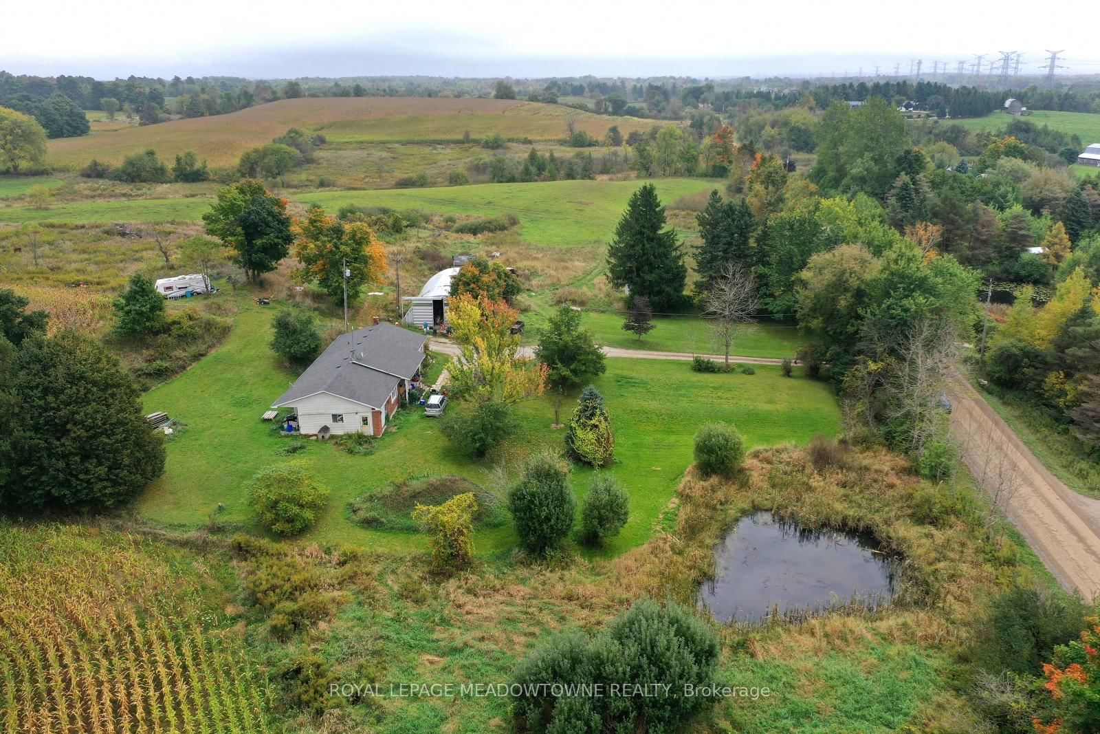This is one of the most stunning stretches of 99. The Bungalow on 5167 Fifth Line has 3 bedrooms, 3 bathrooms, and is located on a 2236 x 1751 ft loton 50-99.99 acres in the community of Rural Erin .5 acres of countryside I've ever explored on foot featuring gentle rolling hills and quiet ponds with clusters of trees dotting the landscape. This family bungalow was erected in 1991 and is a custom modular pre-fab home built by Quality Homes.The main floor features 3 good size bedrooms, 2.5 baths, primary ensuite, huge eat in kitchen, family room, dining room and main floor laundry. This spacious layout-1,826 sq ft on the main floor and 1,850 sq ft in the unfinished basement is waiting your personal touch and in need of TLC. Welcome to 5167 Fifth Line located in the south central rural portion of Erin Township on a gravel road. The property is located just north of paved Wellington Road 50 with easy access to Trafalgar Road. Close to Guelph, Georgetown and the 401. Whether you're envisioning a private retreat or an entrepreneurial venture, this location offers endless possibilities. The property features 55 workable/farmed acres currently planted in corn. With an attached single-car garage, there is room to create something special here. The essentials are in place-forced air gas furnace (2011), well, septic pumped and inspected in 2024, 200-amp breaker panel plus a pony panel to service the steel Quonset outbuilding measuring 55'x38' sitting on a concrete pad. This building adds to the functionality of the property, perfect for storage or a workshop. Raise your family in the country with a slower pace of life and school bus pick up at your driveway. Located in a serene rural setting, yet close enough to town, this property is a rare find. With some land clearing and tile drainage, there's potential to expand the workable land by another 15 acres. Spend time by the pond and enjoy the sounds of Sandhill Cranes, Deer, Turkey, Ducks and Geese. If you're seeking a peaceful lifestyle with room to grow, this could be your perfect match.