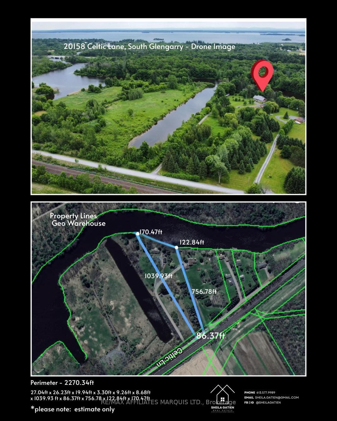 Welcome to this hidden gem situated on the Raisin River in Lancaster. The 1 1/2 Storey on 20158 Celtic Lane W has 3 bedrooms, 2 bathrooms, and is located on a 855 x 127 ft lot in the community of South Glengarry (Charlottenburgh) Twp ....5 acres of a perfect getaway! This home is only 14 years old and features 3 bedrooms, 2 baths, open concept living-dining-kitchen. on a slab. There is a screened in porch overlooking the river, and an above ground pool. Out door sheds for toys and storage. Fish, Kayak, Water Board and boat right from your back door..... This property has a 5-10 minute river ride to access Lake St Francis via the Raisin River Bridge.Very unique must be seen!