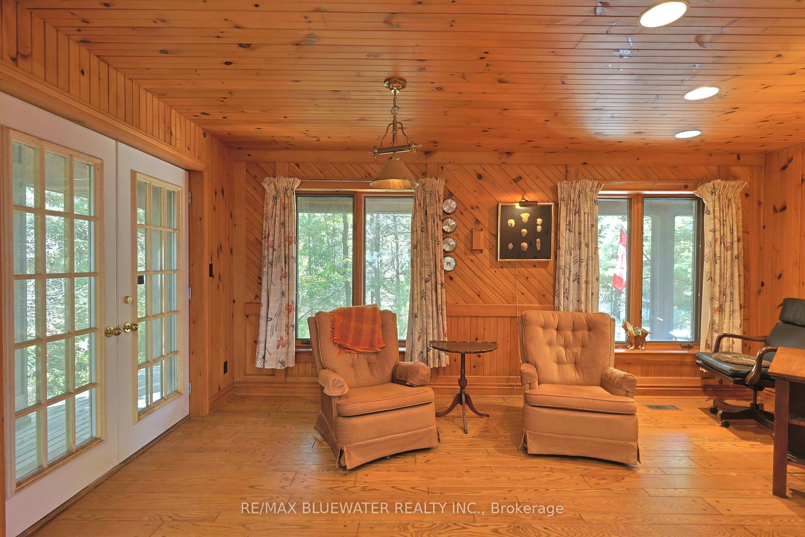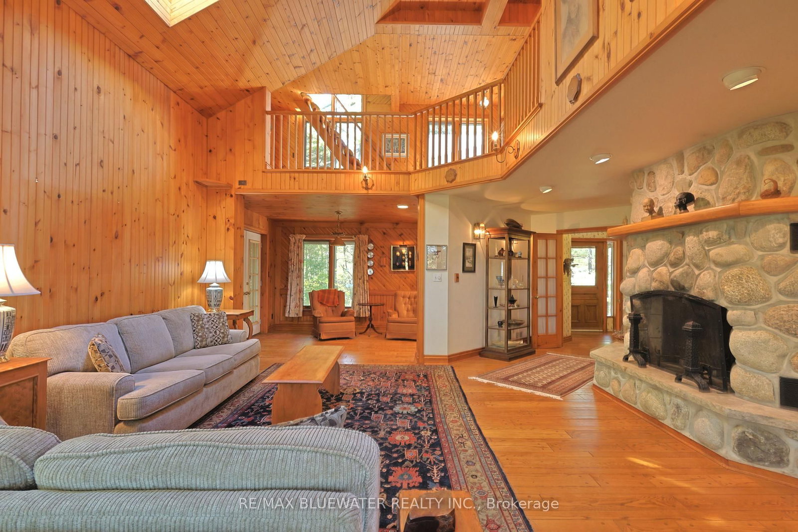 Discover your private lakefront retreat at 9864 Huron Place - situated in the exclusive Beach O'Pines gated community offering 105. The 2-Storey on 9864 Huron Place has 4 bedrooms, 3 bathrooms, and is located on a 320 x 105.51 ft lot in the community of Grand Bend .51 feet of frontage along the sandy beaches of Lake Huron. Nestled among mature trees and natural landscaping, this residence blends seamlessly with its surroundings while providing breathtaking views of Lake Huron and a spacious floor plan designed for comfort and style. A private setting with a driveway through the trees leading to the custom built Oak Woodsmith design featuring a brick and wood sided exterior, flag stone steps to your covered front entrance and attached single car garage. Along the lakeside the home provides space to relax on the partially covered deck with lake views and private stairs down to the beach. Inside, you'll find warm wood accents to compliment the hardwood floors, large windows that flood the home with light, and a layout that emphasizes both privacy and connection. The living room features knotty pine walls and vaulted ceiling open to the second-floor library above, a wood fireplace with large stone surround, lake views and a study off the front side of the floor plan. The galley style kitchen opens to the lakeview dining room with a sitting room off to the side, perfect for enjoying the sunset. The main floor includes the first of four total bedrooms and a full bath with slate floors and walk in shower. Upstairs, you have the primary bedroom suite with natural fireplace and private patio plus large windows overlooking the beauty of Lake Huron. Two guest rooms on the upper level with one that can be divided into a third sleeping area. Find serenity in the lookout loft above the library. Full basement includes laundry, full bathroom and 8 person sauna plus large unfinished space for future designs. Close to downtown Grand Bend yet tucked away in a quiet gated community. Whether you're seeking a full-time residence or a retreat from the city, this property captures the very essence of lakefront living