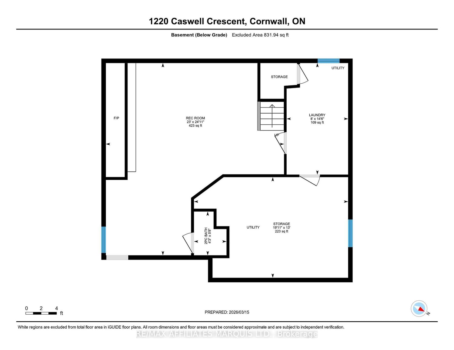 Charming bungalow on a quiet crescent, just steps from St. The Bungalow on 1220 Caswell Crescent has 3 bedrooms, 2 bathrooms, and is located on a 135.4 x 49.75 ft lot in the community of Cornwall . Therese Park with splash pad. Built in 1959 and thoughtfully updated, the main floor features three bedrooms, a full bath, an updated kitchen, and a bright, cheerful sunroom. The finished basement offers a spacious family room anchored by a striking gas fireplace with stone feature wall, a 2-piece bath, laundry with storage, and a functional workshop area. Numerous updates include roof, furnace, appliances, paint, and flooring. Outside, enjoy a welcoming flagstone walkway, private rear deck, and a beautifully maintained lot with cherry and pear trees, plus a natural wildflower garden. Two storage sheds (one with electricity) add extra convenience. A well-cared-for home in a family-friendly location - move in and enjoy!