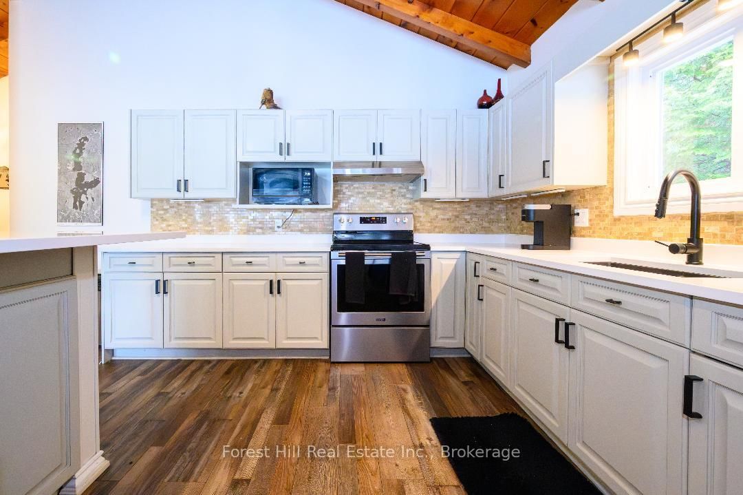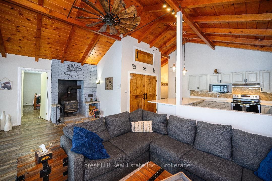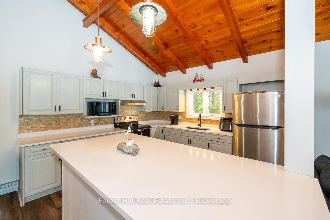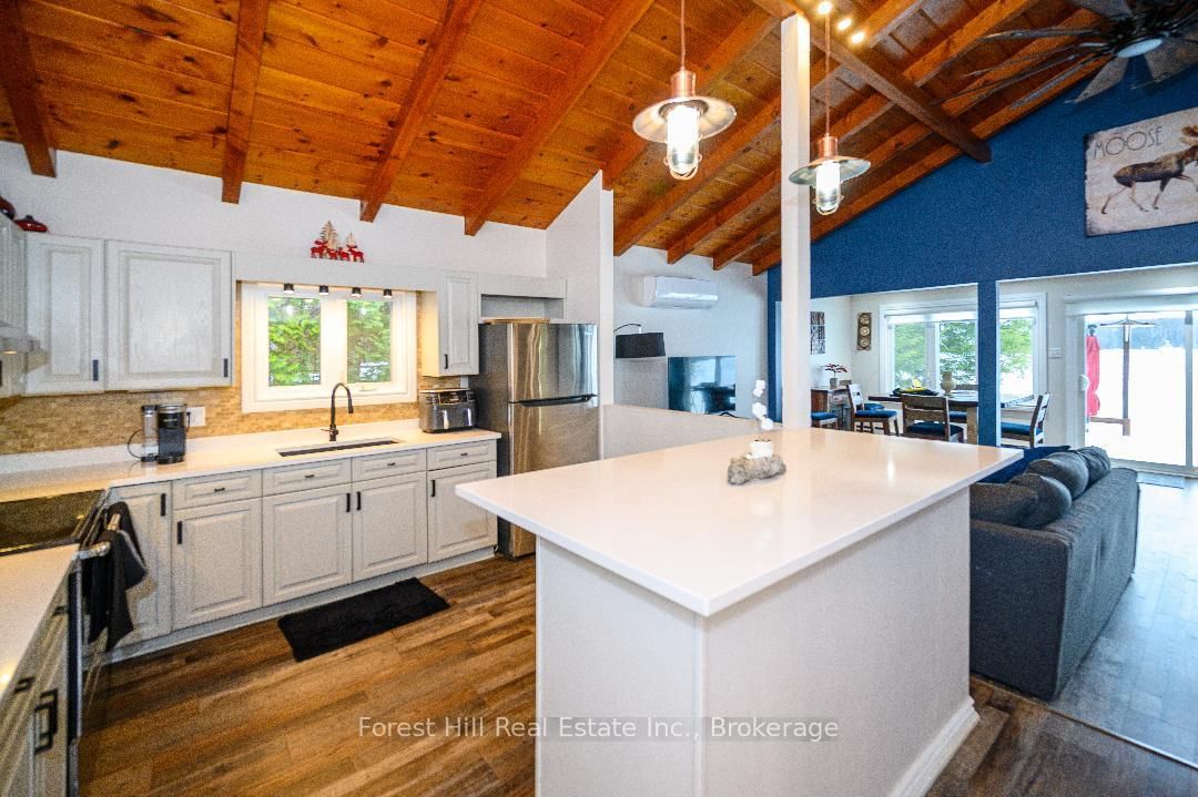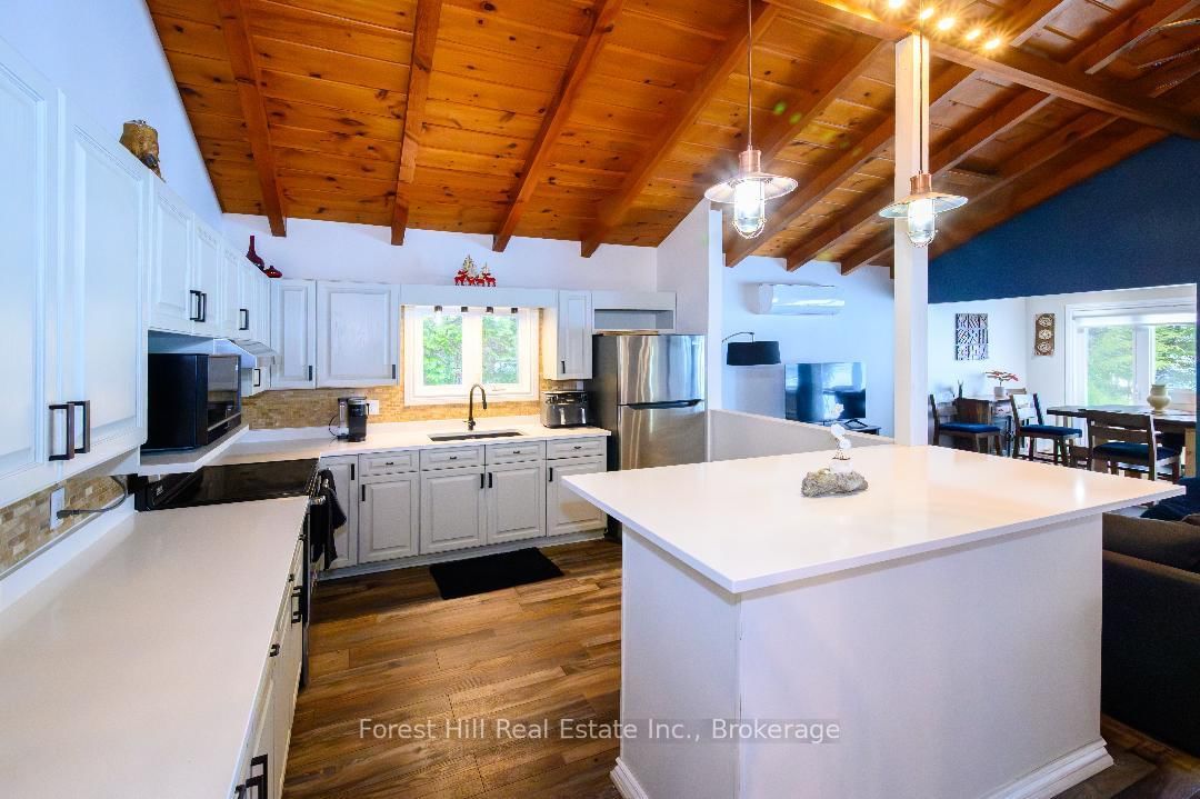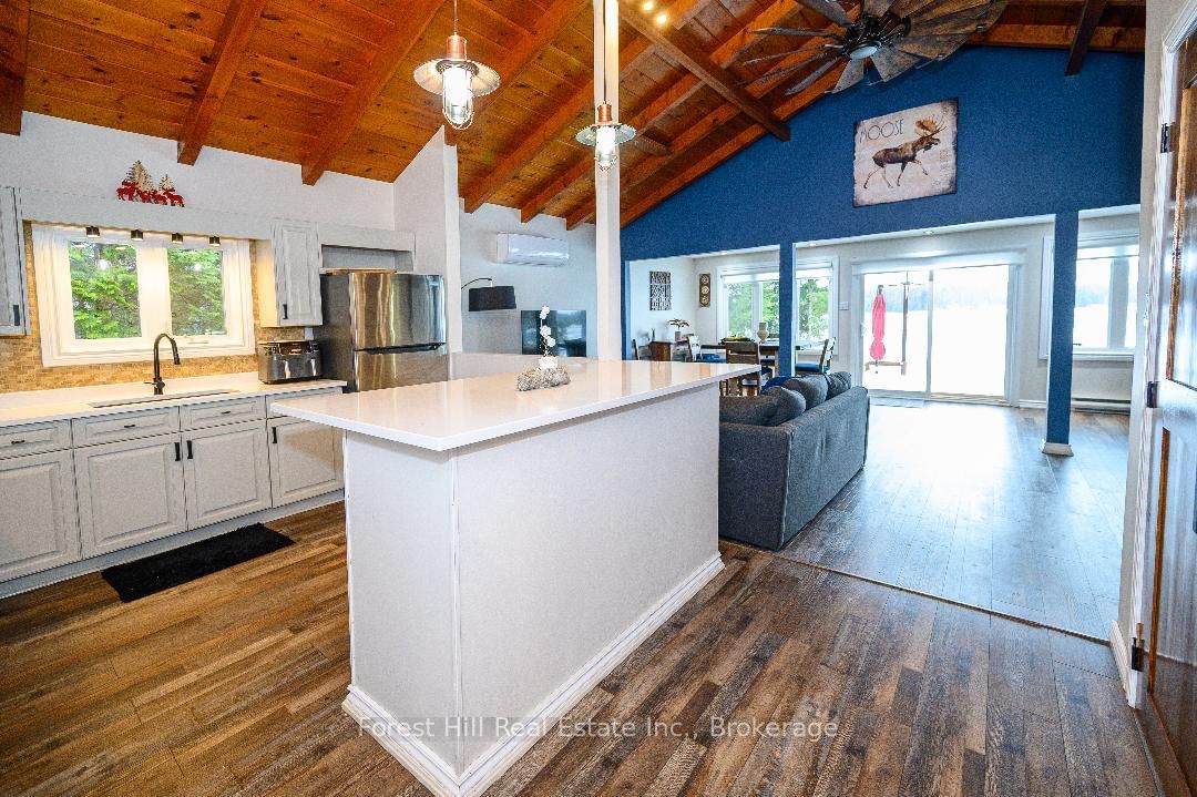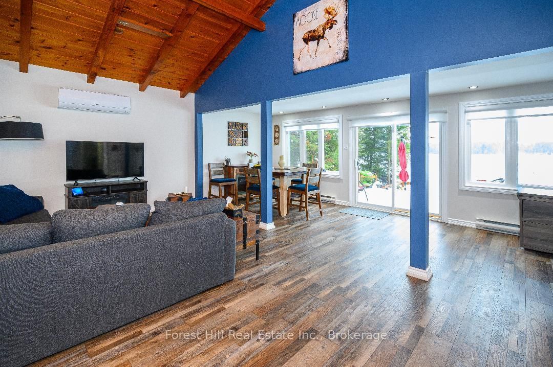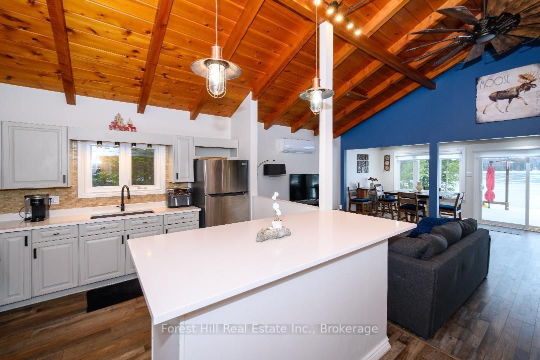 An amazing waterfront three bedroom home on Eagle Lake, facing west with that large open big view!! All this with a level easy entry sand beach just steps from the front deck. The Bungalow on 436 Jim Young Road W has 3 bedrooms, 2 bathrooms, and is located on a 153 x 96.24 ft lot in the community of Machar . Eagle Lake has clean clear water , being spring fed with great fishing! You'll love the open concept kitchen family room with cathedral Pine beam ceilings, and modernized professionally designed kitchen, you can actually be in the kitchen and see your children playing on the beach! All the bedrooms, bathrooms, laundry room, kitchen and family gives you all main floor living with no stairs. the attached garage is easily accessed through the laundry room, with your main bedroom on the lakeside with a large closet and ensuite private bathroom. The Tiki Bar on the beach is included. A golf course is also close by, with South River and Highway 11 being just 12km away, Huntsville or North Bay are just 40 minutes away. you'll love this Low maintenance brick home with a steel roof. Check it out!!