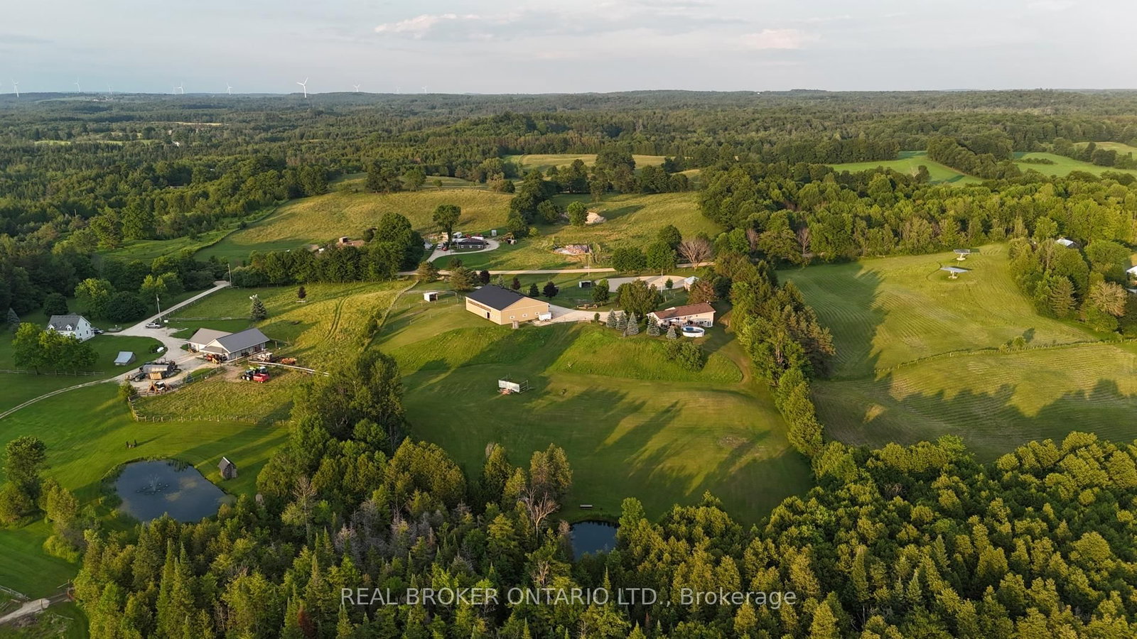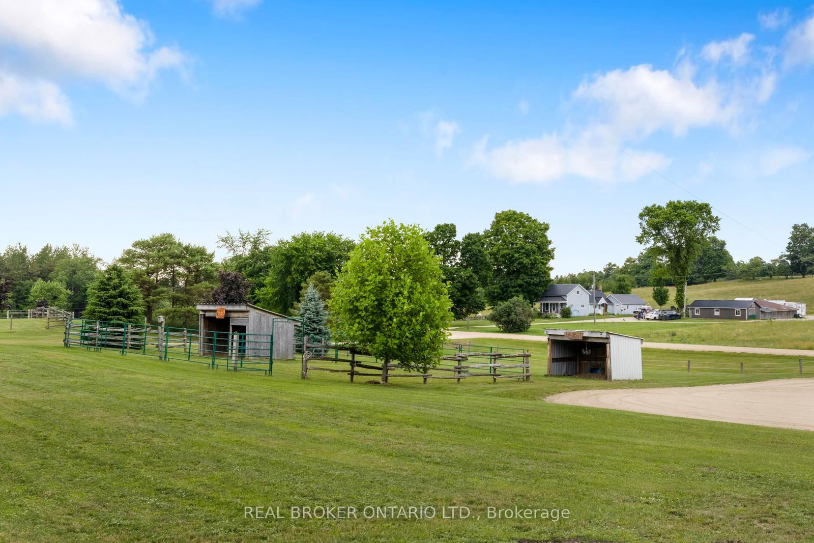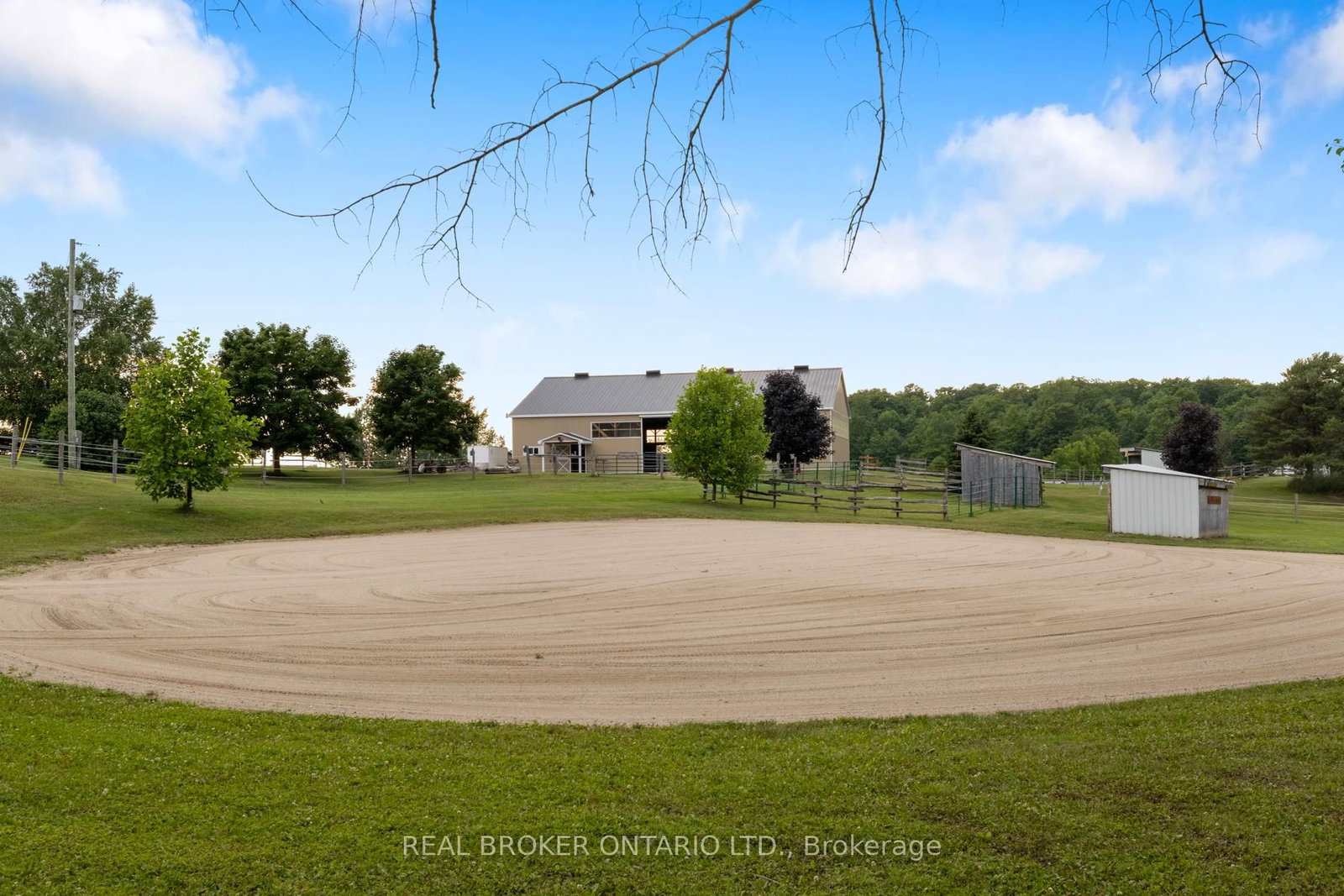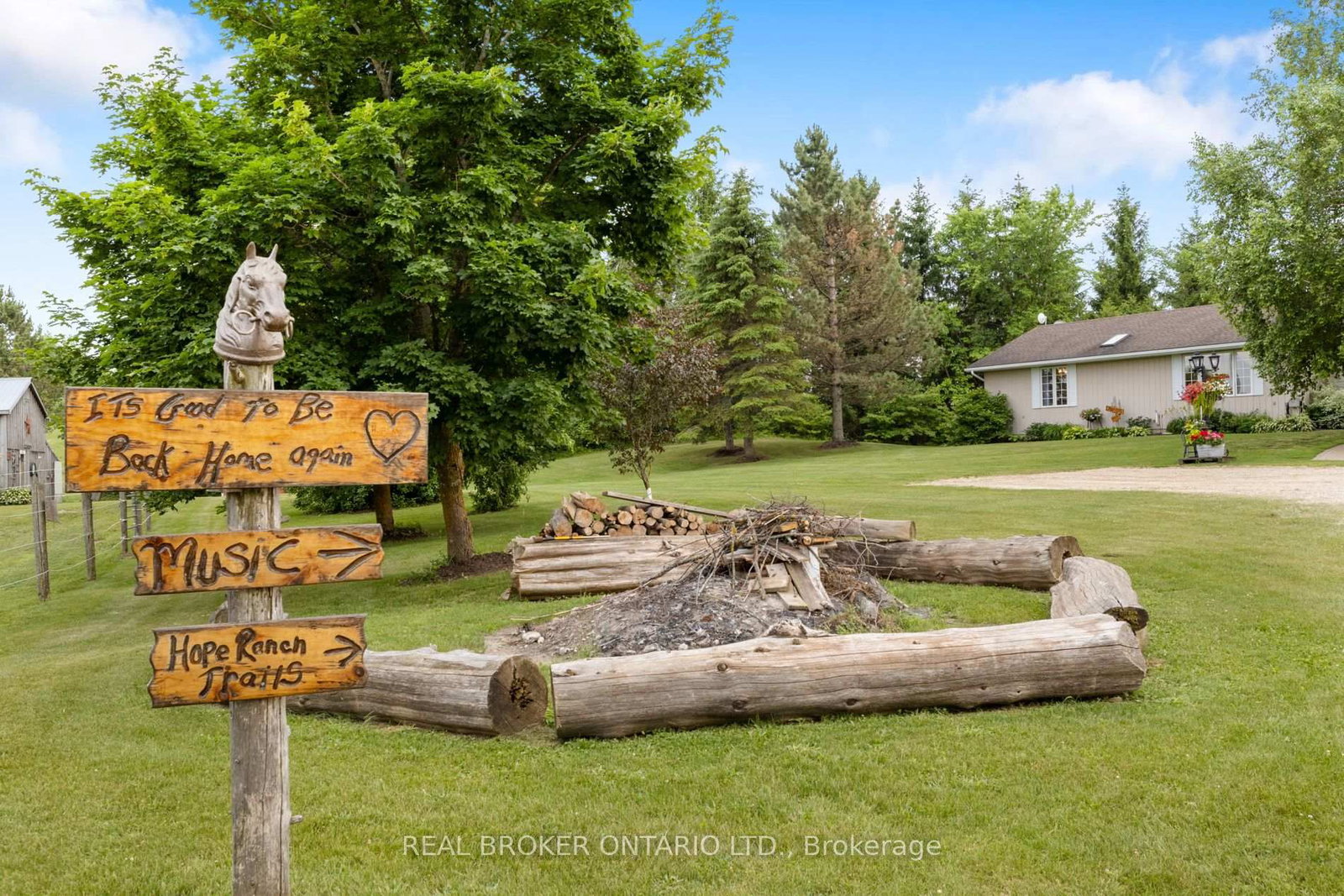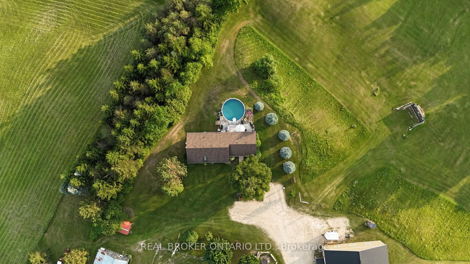 Beautiful 6. The Bungalow on 413294 Baseline Road has 2 bedrooms, 2 bathrooms, and is located on a 695.8 x 408.44 ft lot in the community of West Grey .43-acre hobby farm offering peaceful country living with excellent equestrian facilities and stunning sunrise and sunset views. The standout feature is the 50' x 80' indoor riding arena with steel siding, four hardwood stalls, tack room, rubber-matted tack-up area, hay storage above stalls, and a viewing room or office overlooking the arena. Three exit points, including an oversized sliding door with motorhome clearance, provide easy access.Outside you'll find a 100' x 150' sand riding ring and three fenced paddocks with run-in sheds and electric fencing-perfect for horses or other animals. Water access is available at the arena, paddocks, and bunkie. The bunkie and stable both have electricity, and the bunkie offers flexible space for a workshop, studio, or guest accommodation.The custom addition of 1994 (Schwindt W Building & Sons Contractors) completes this 3-bedroom, 2-bath ranch bungalow offers approx. 1,885 sq ft of finished living space including a walk-out basement. Features include a wrap-around deck, bright kitchen with walkout to the deck and above-ground pool, spacious living/dining area with large windows, main-floor laundry (potential additional bedroom), and a primary bedroom with ensuite and skylight. Recently added mudroom provides a practical space for boots and riding gear.The finished basement includes a walkout to the backyard, rec room, bedroom, and storage. Outdoor highlights include an above-ground pool with newer heater (2022), new liner and pump (2024), a small pond, and a private road providing access to the back field. Several riding trails are located just minutes away.A rare opportunity for equestrians seeking a well-equipped property in a convenient rural location.